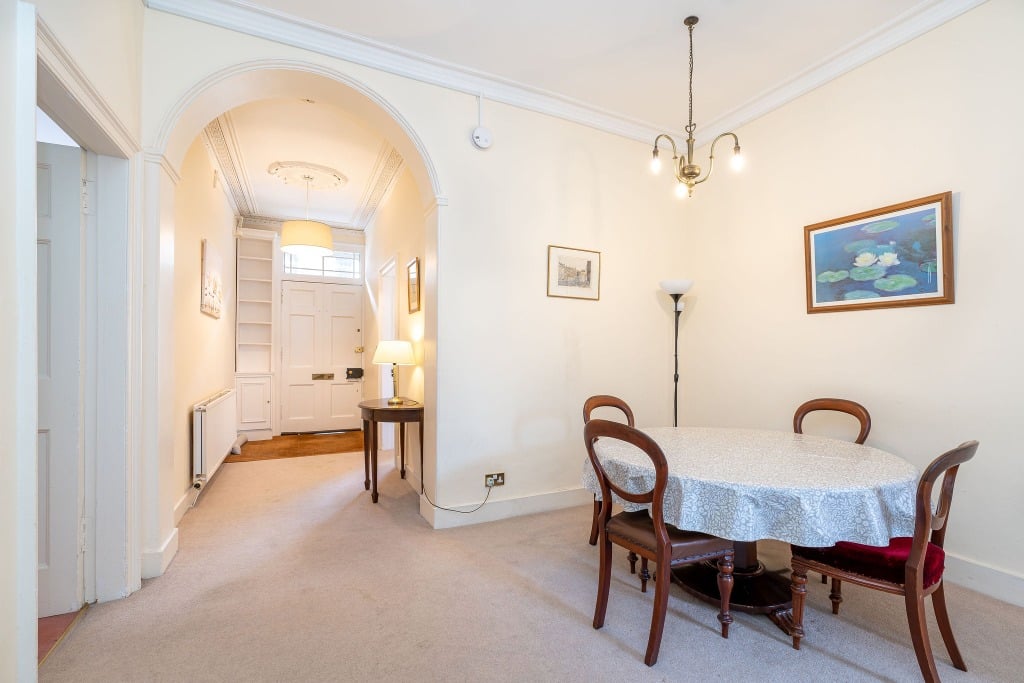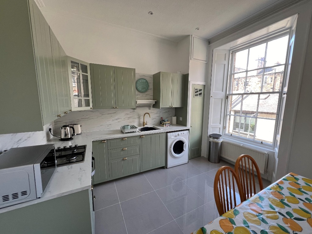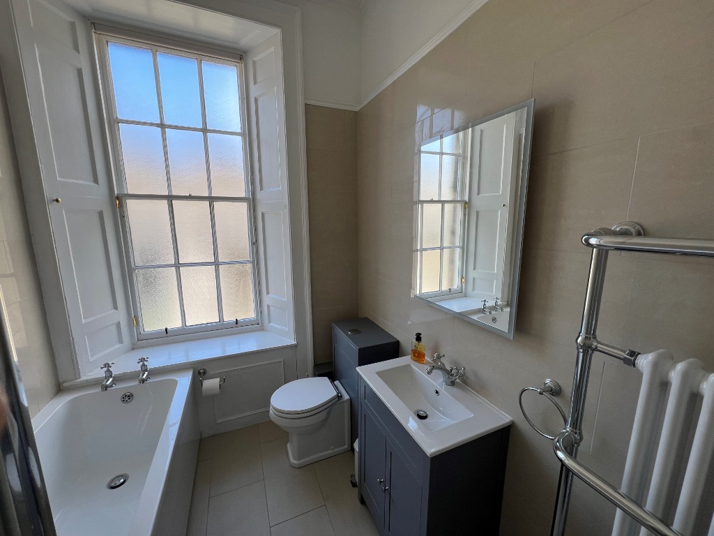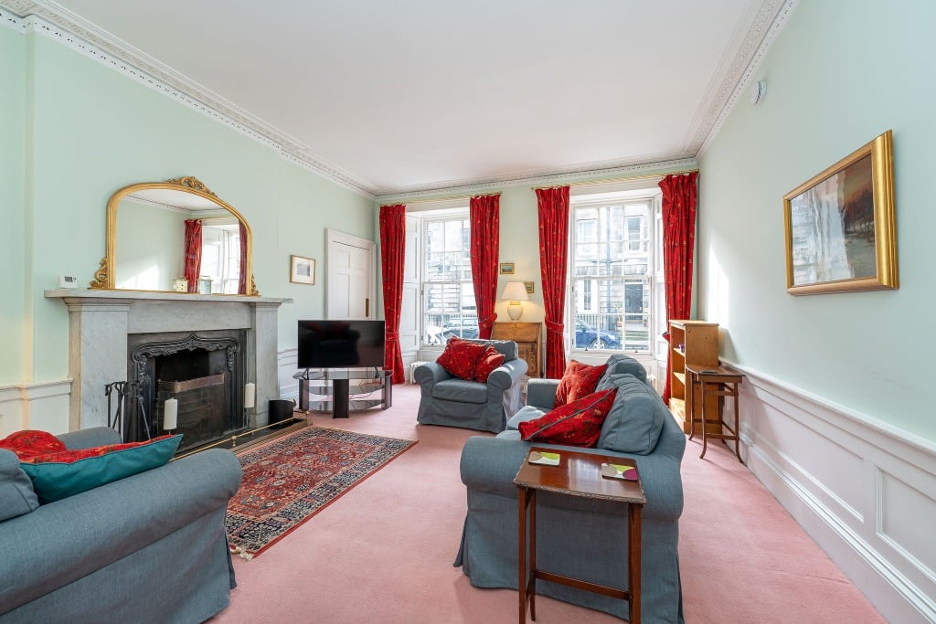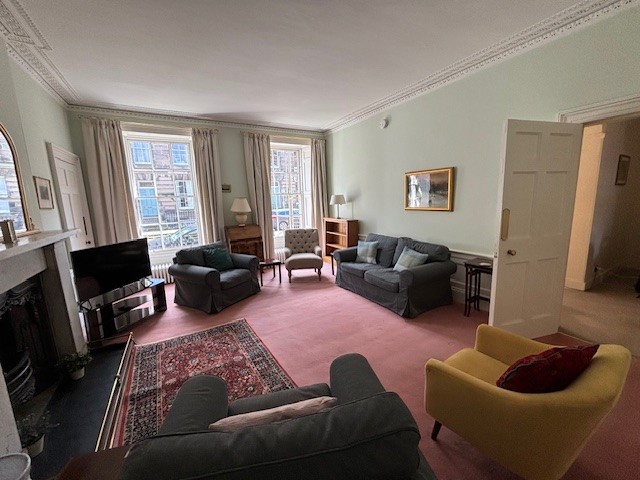 A well presented, main door, traditional New Town property, which boasts original features throughout. The well laid out accommodation comprises: dining hallway, well-proportioned sitting room with feature fireplace, modern kitchen with dining area, two double bedrooms with large wardrobes and a fully fitted bathroom. The property is fully furnished with linen and towels ready to accommodate your short stay. The bathroom and kitchen have been recently refurbished.