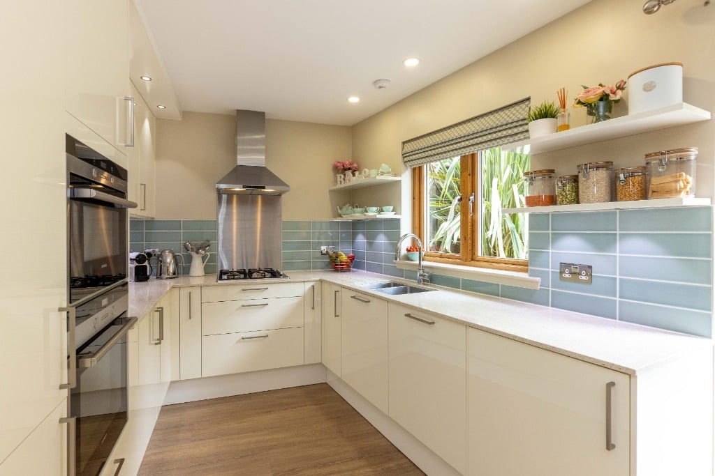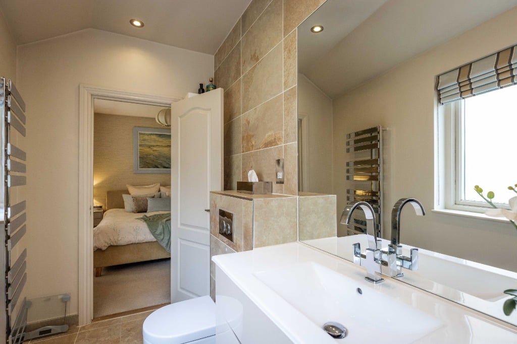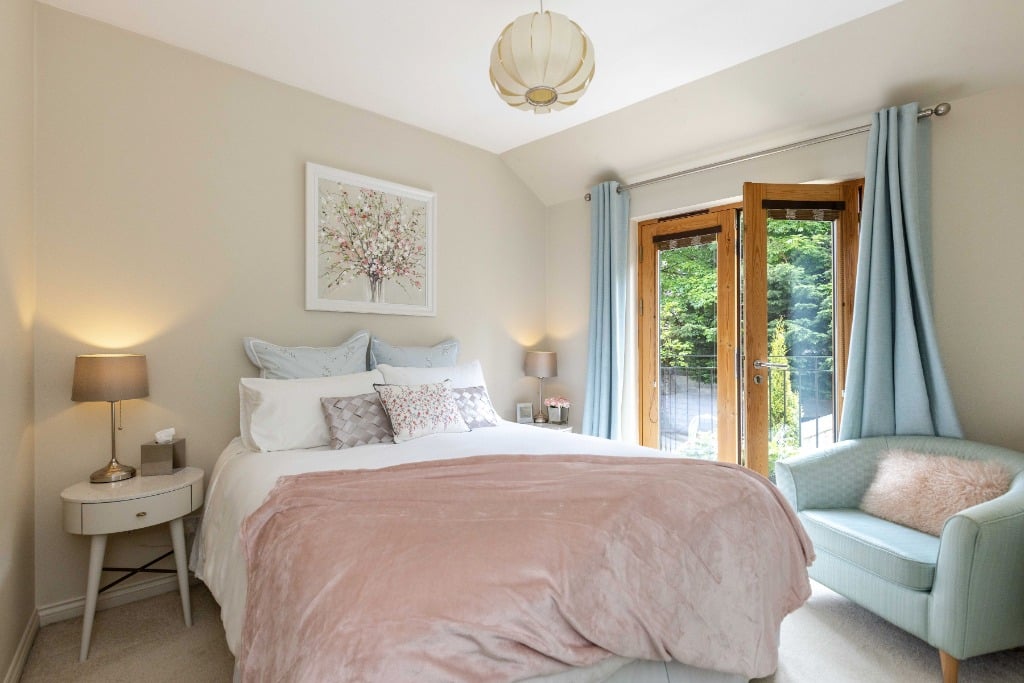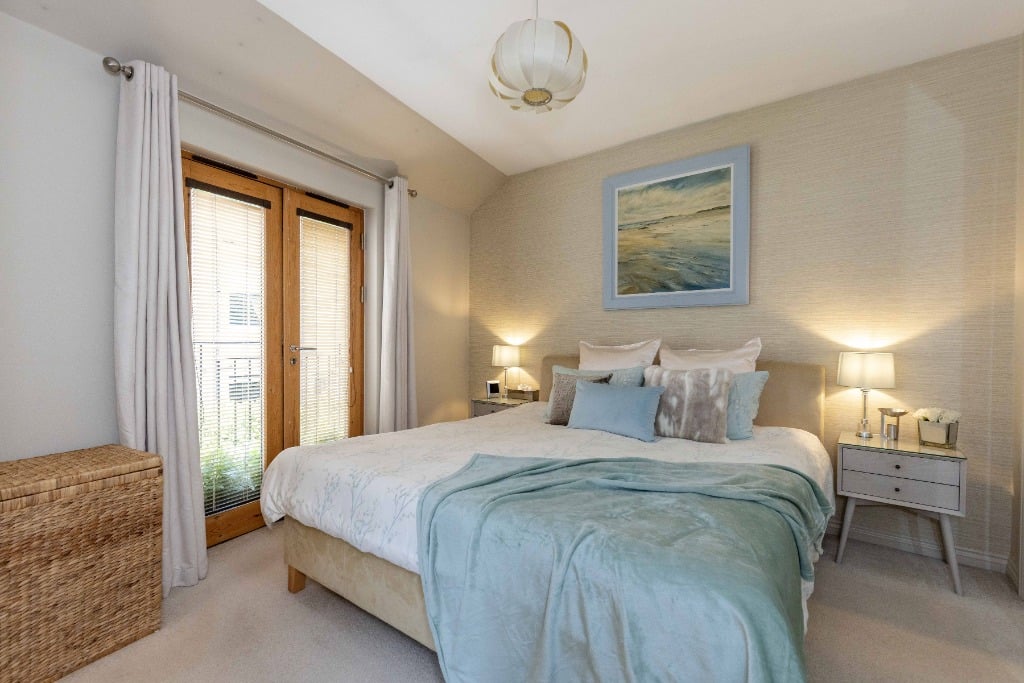 An internal staircase leads to the upstairs accommodation comprising of; a super king master bedroom with tiled ensuite shower room, a second king size bedroom, and a study. The rear bedroom and study feature French doors opening onto Juliet balconies. There is also a further bathroom with a shower over the bath.