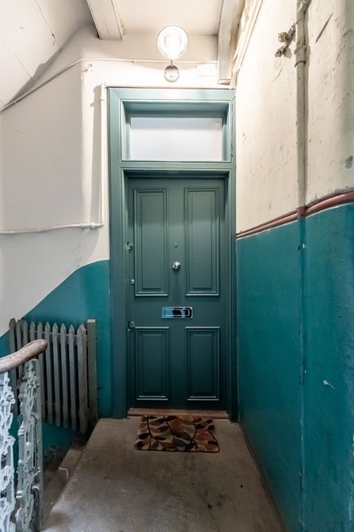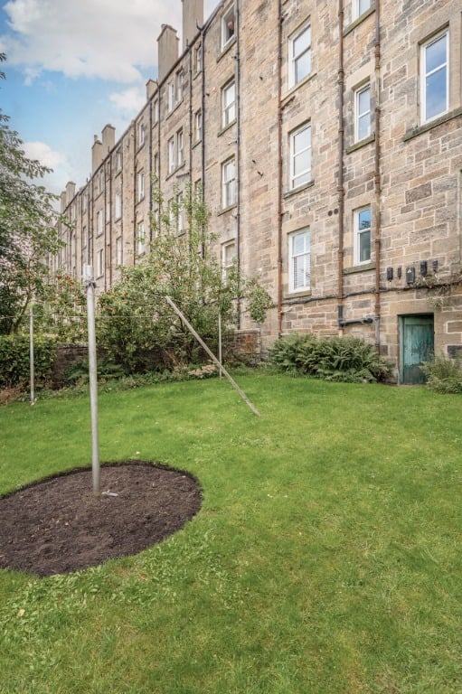 The property has a private front garden, a rare find in the city. There’s also access to a peaceful communal back garden, adding to the sense of space and greenery.