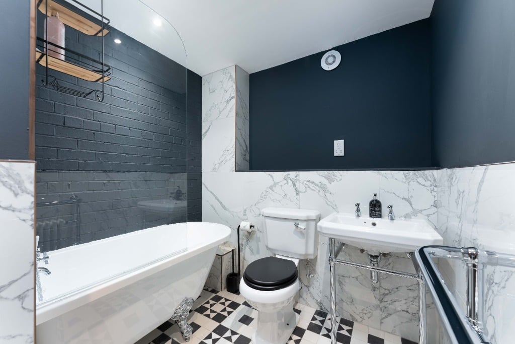 The bathroom in Flat 6 is designed to impress, featuring a beautiful Victorian tub bath and shower. Step into the elegance of the Victorian era and enjoy a luxurious soak in the tub, or indulge in a refreshing shower. With its charming and classic design, the bathroom provides a tranquil space to pamper yourself.