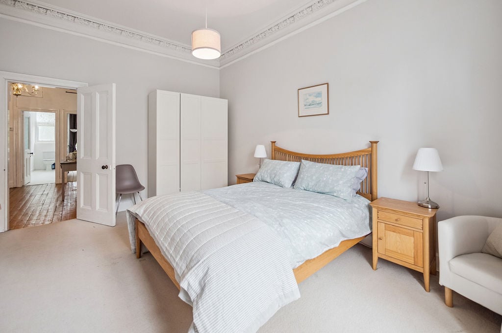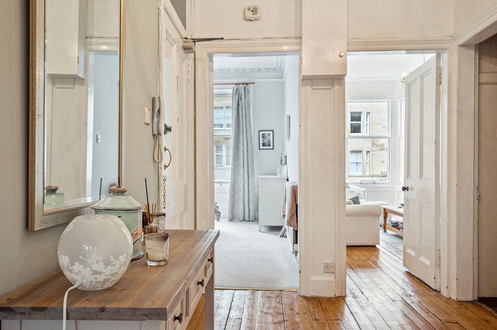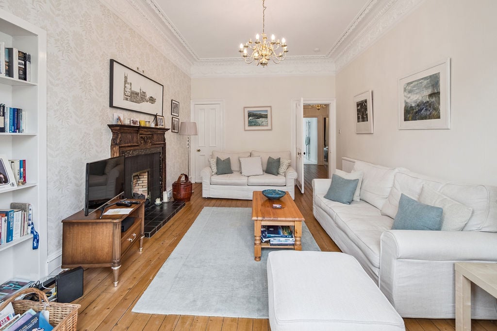 Situated on the first floor of a traditional Edinburgh tenement, this charming two-bedroom flat offers a blend of period elegance and modern comfort in one of the city’s most sought-after residential areas.