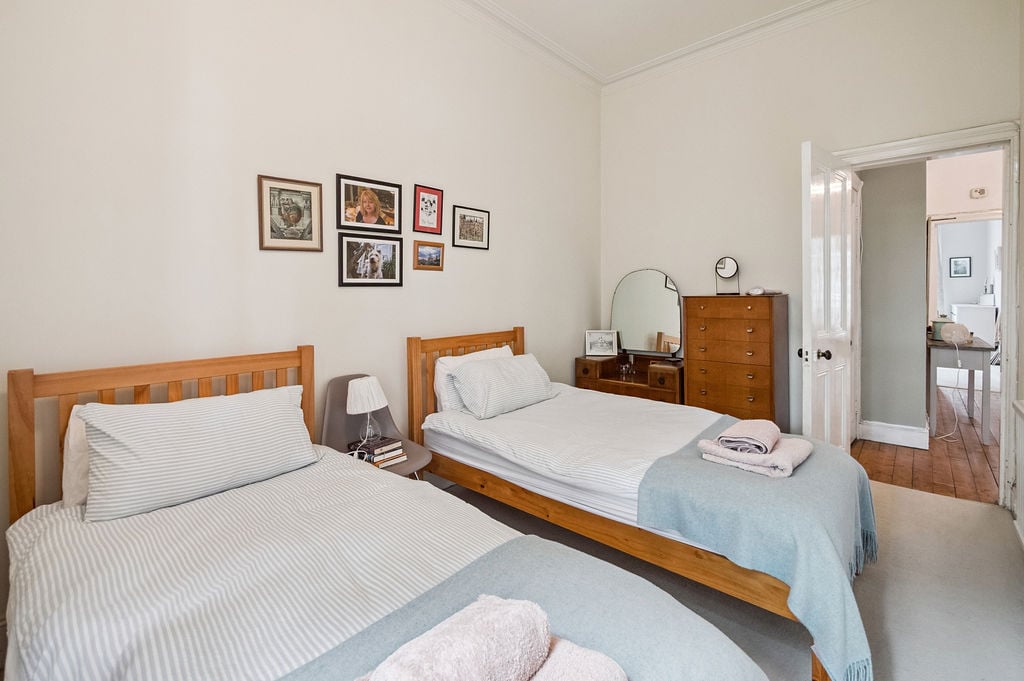 There are two well-sized bedrooms, one is a double an the other is twin; a contemporary three-piece bathroom, and excellent storage throughout. Additional highlights include gas central heating and original wood flooring in several rooms.