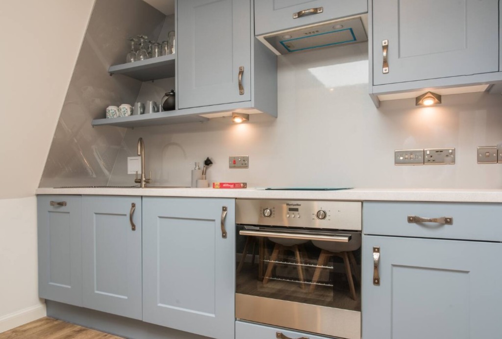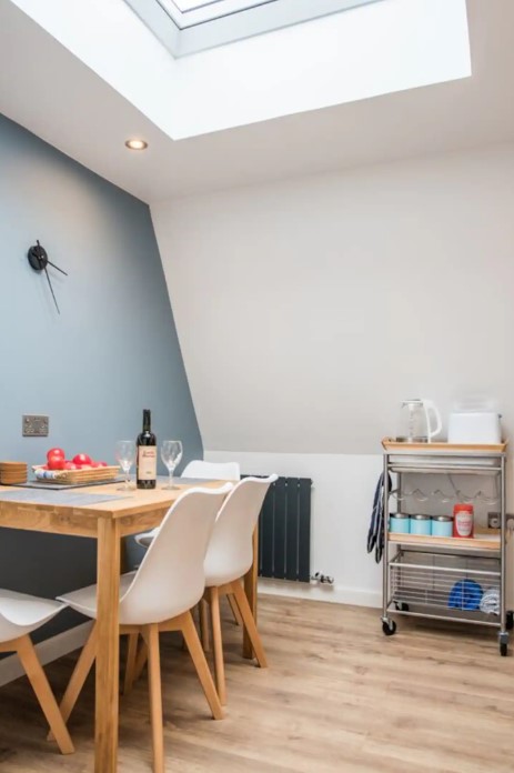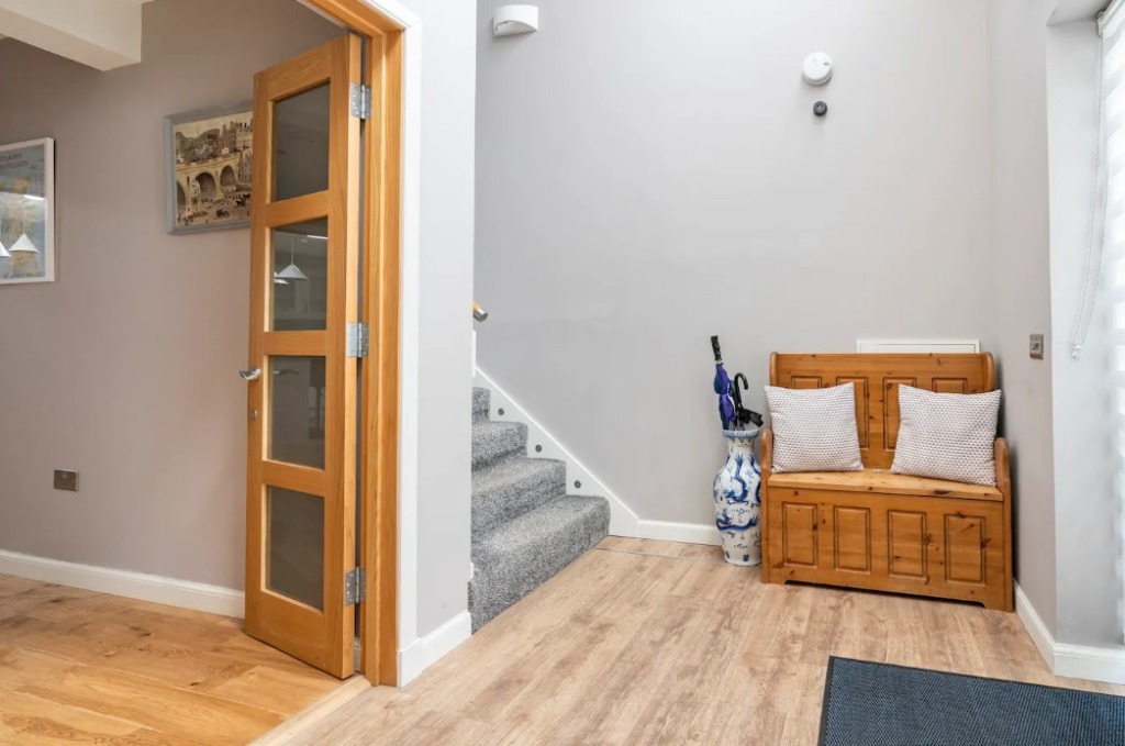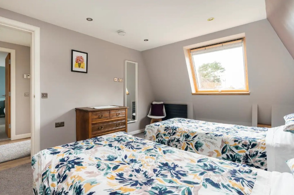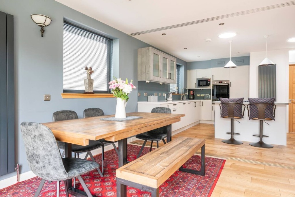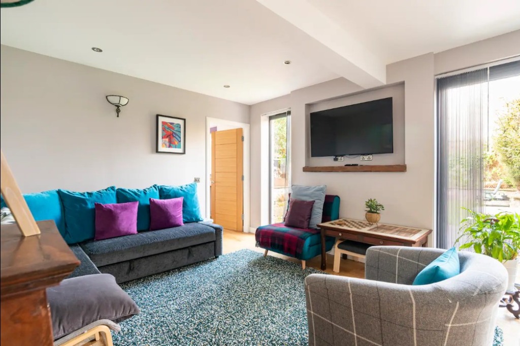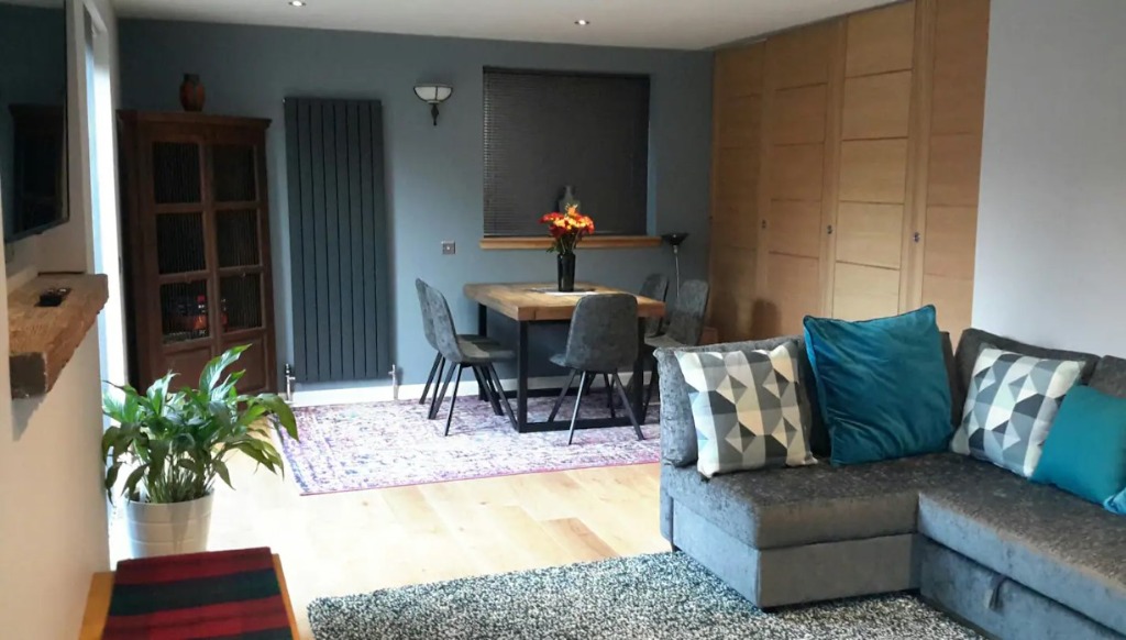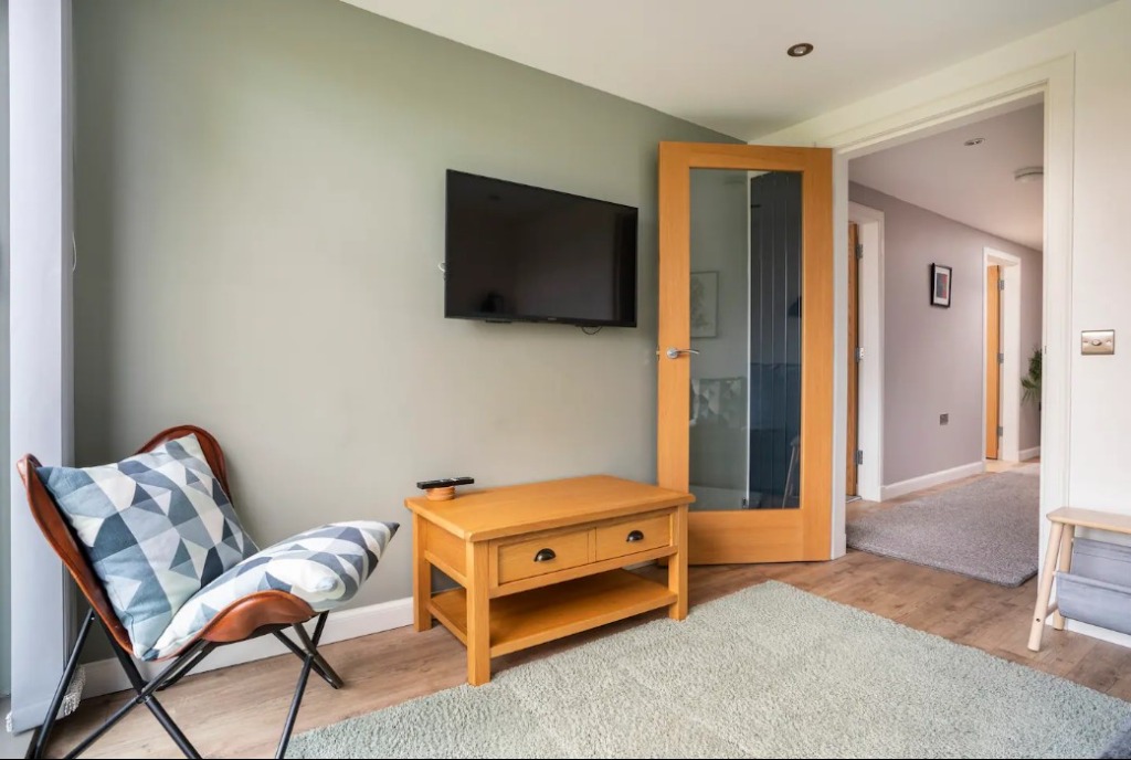 Accommodation on the ground floor comprises; a bedroom with a king sized bed, an open-plan kitchen diner with seating area, Smart TV and a walk-in shower room.