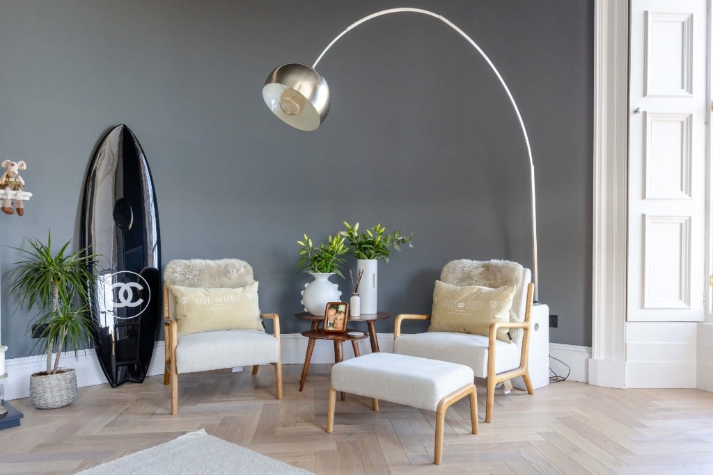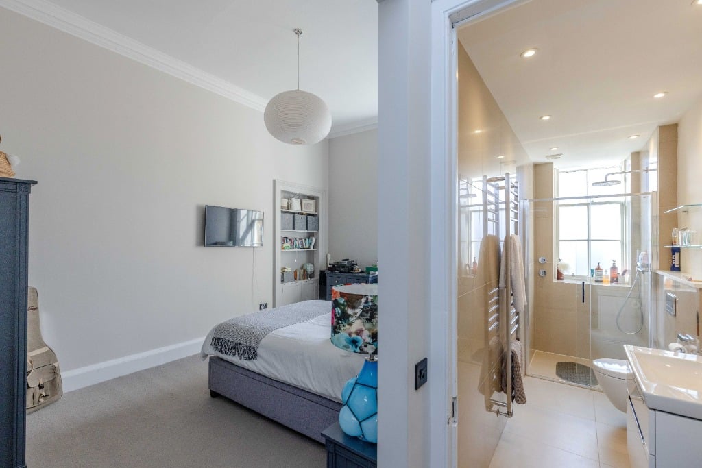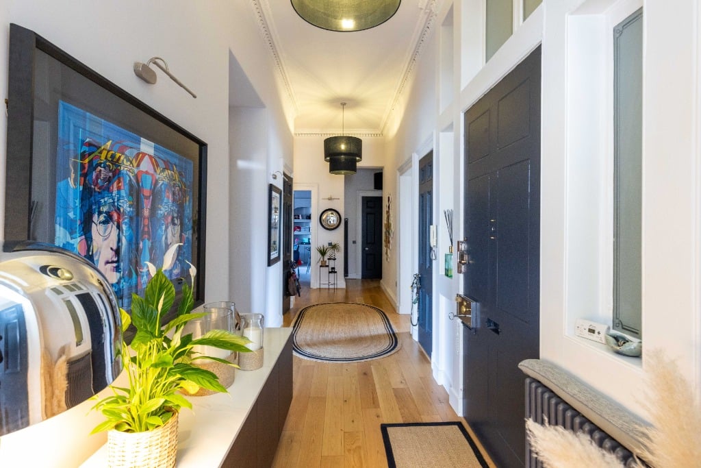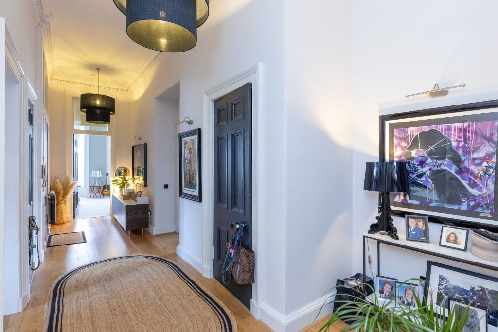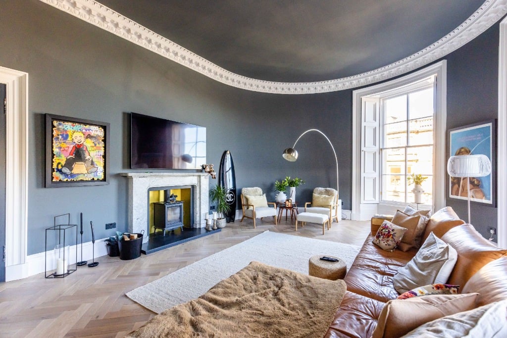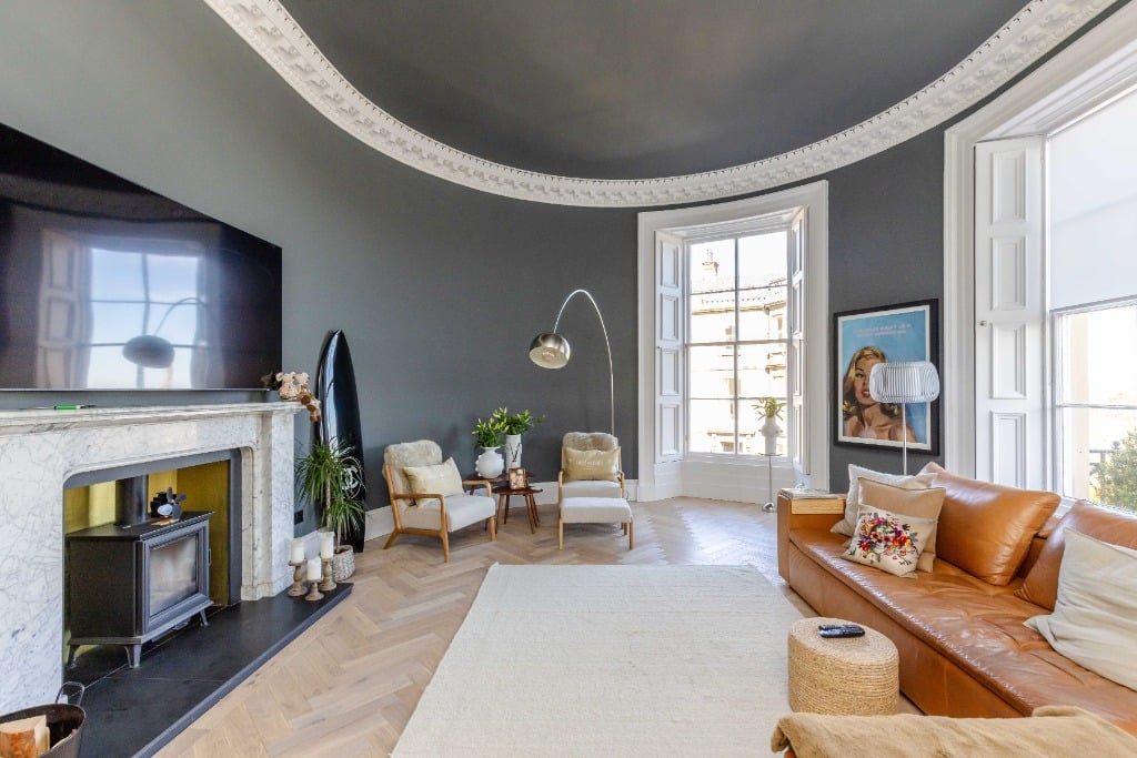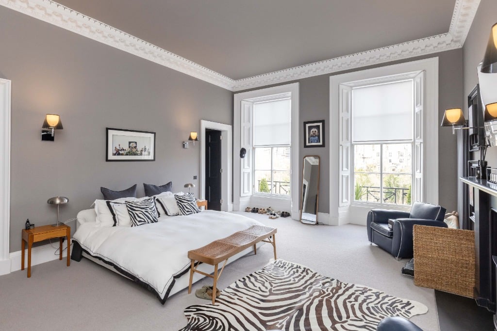 The apartment is fully equipped with everything you would expect from a property which has been meticulously styled to blend it’s traditional features and contemporary finishes. The apartment is the ideal base for providing a comfortable and stylish space to relax in after a day of festival performances, exploring Edinburgh, or enjoying the city’s iconic attractions. Stunning sitting room with three full length widows with working shutters; Kitchen/dining room with appliances; Principal double bedroom which is generously proportioned and benefits from a spacious dressing room and modern ensuite shower room and log burner; two further spacious double bedrooms (1 with ensuite shower room); modern family bathroom and WC.
