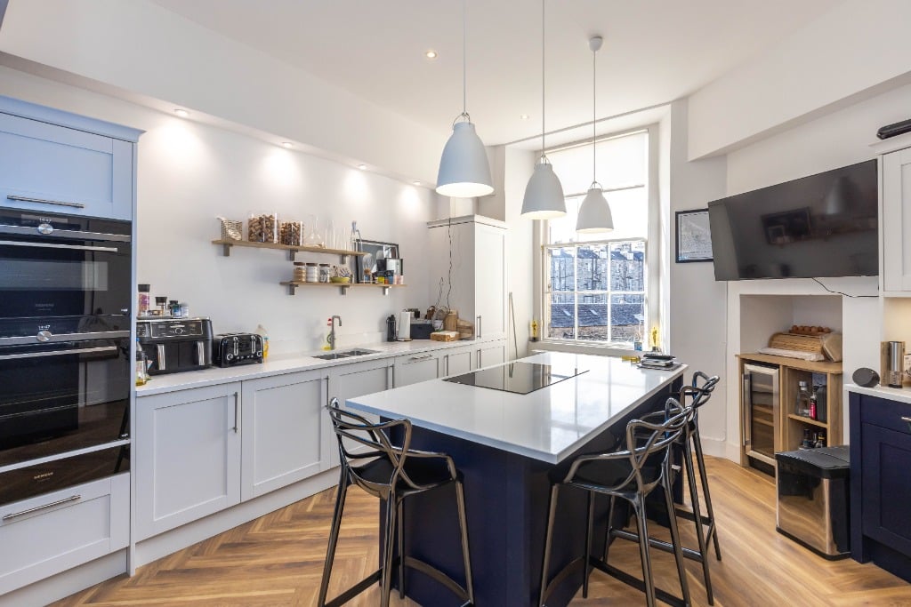 Ideally located in the heart of Edinburgh’s West End, a short walk from the city centre, you will find this stunning quietly located three bedroom corner apartment on Lennox Street. The apartment is beautifully decorated and furnished throughout. Offering best in class accommodation for those looking to immerse themselves in the excitement of the Edinburgh Fringe & Festival or the fun of exploring Scotland’s wonderful Capital City.