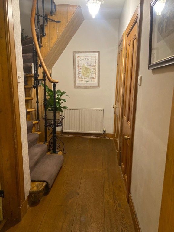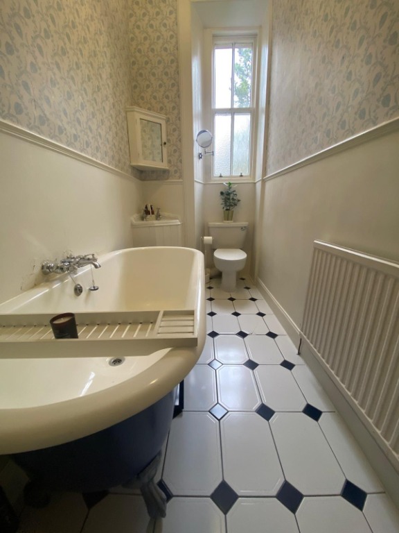 The ground floor comprises a bright and welcoming entrance hallway leading to an elegant living room with large sash windows, high ceilings, and original features. Two well-proportioned double bedrooms, and a family bathroom, with stairs leading down to the further accommodation.
