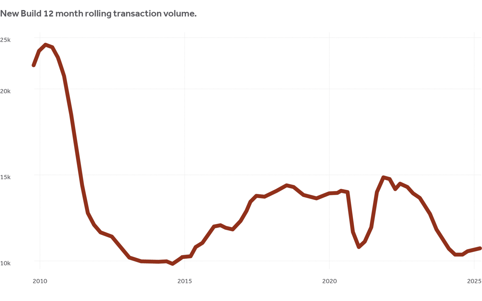 In 2025, (Jan-Aug) the number of house sales has risen by 5.5% YOY as the market continues to recover from the slump over 2022-23.
