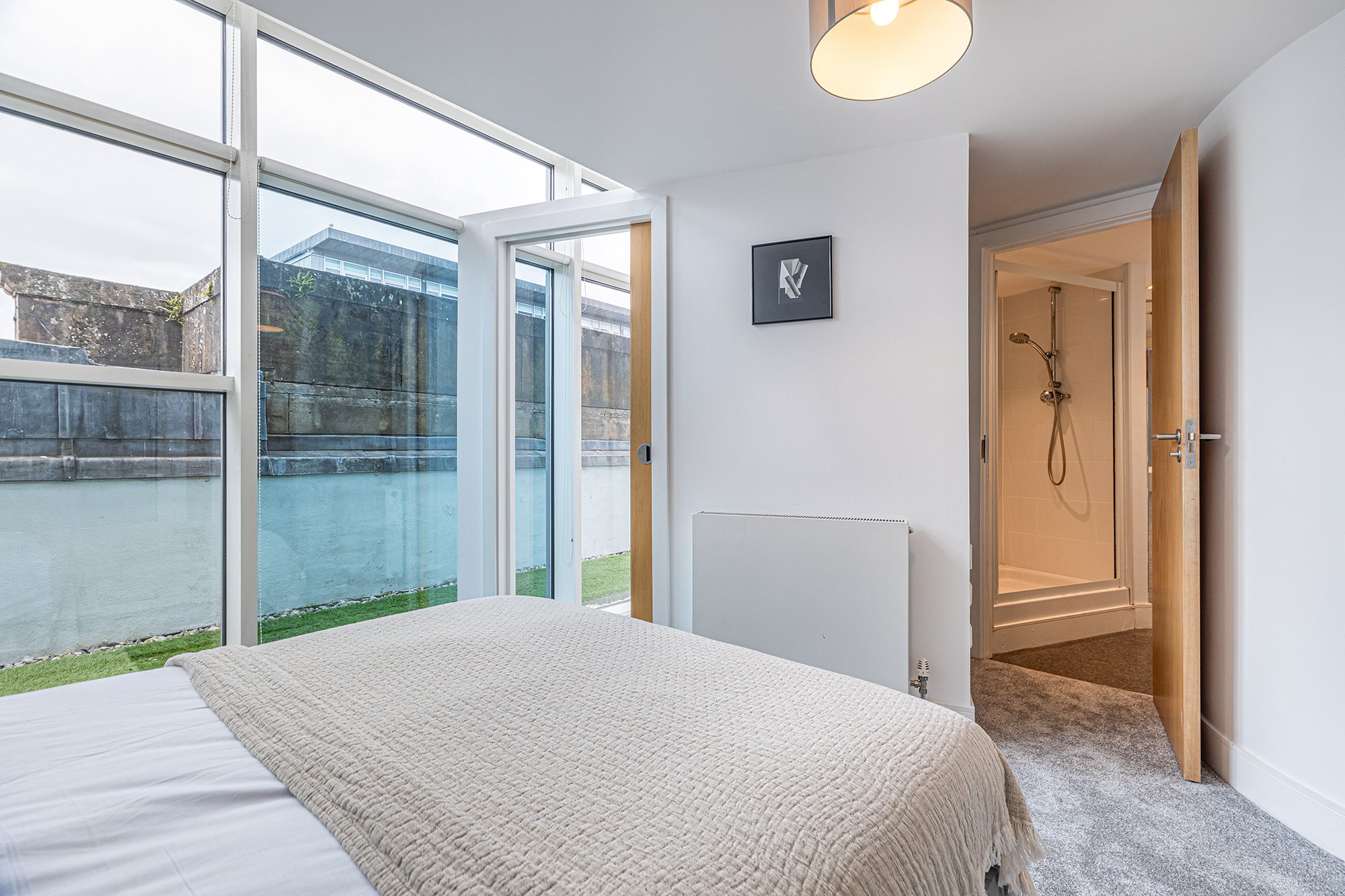 - Bedrooms one and two are accessed from the reception hallway, both with walls of glass overlooking the enclosed terrace area, fitted double mirrored wardrobes and are they are separate yet connected to both the walkway to the terrace and a generous Jack and Jill shower room with double shower cubicle.