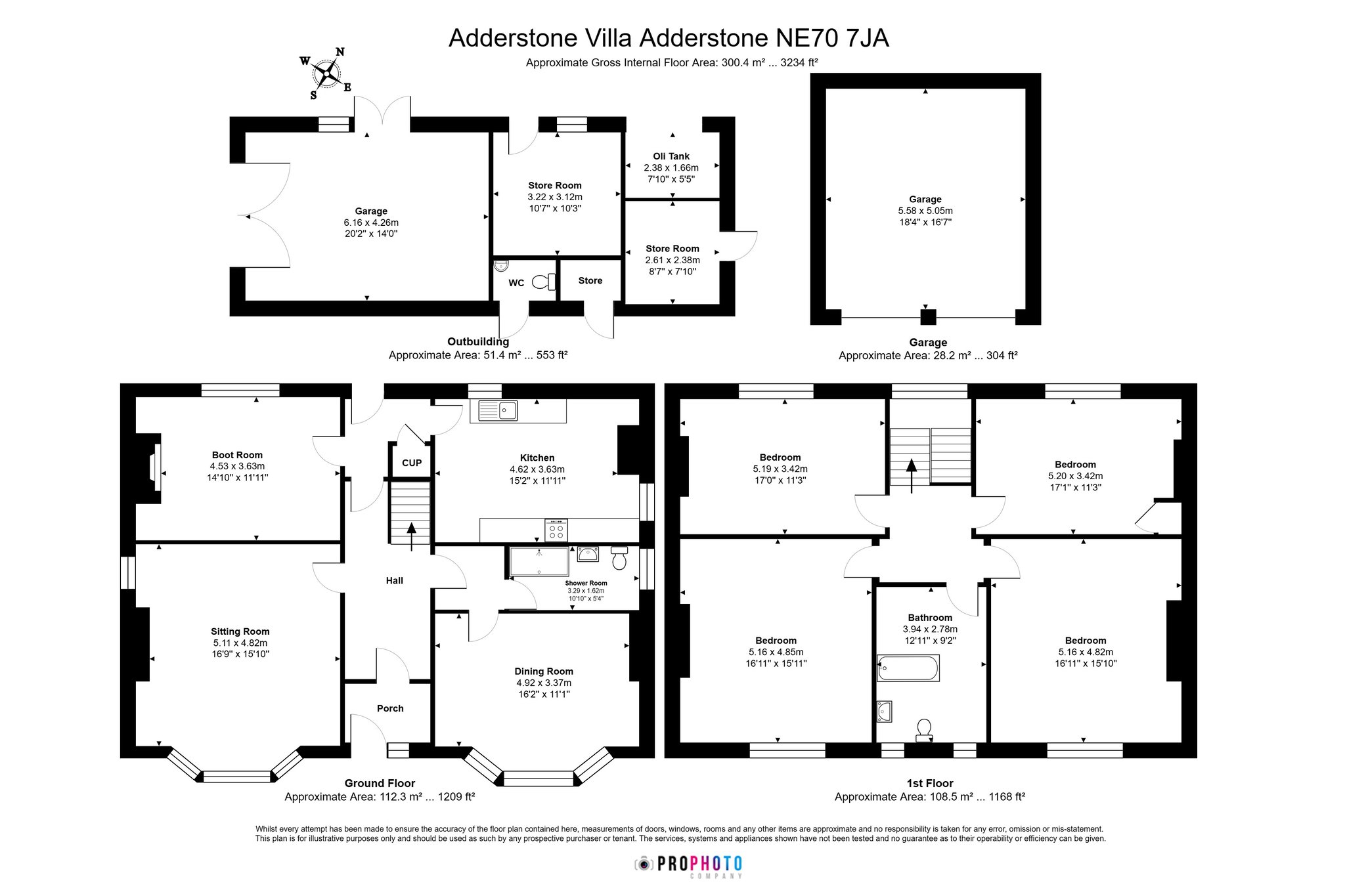 First Floor: Landing, Four Double Bedrooms, Family Bathroom.