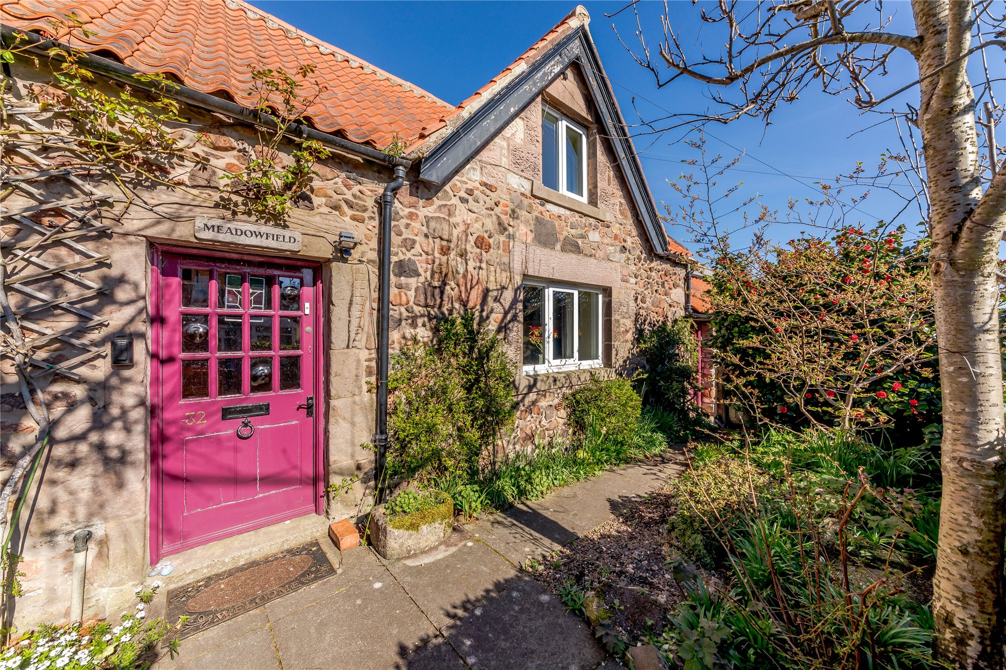 32 Ramseys Lane is a detached 125 square metre character cottage which occupies a mature and elevated position, standing in generous garden grounds, with wonderful rural views. The property is situated on the periphery of the north Northumberland market town of Wooler and is within walking distance of a National Park and the Cheviot Hills.
