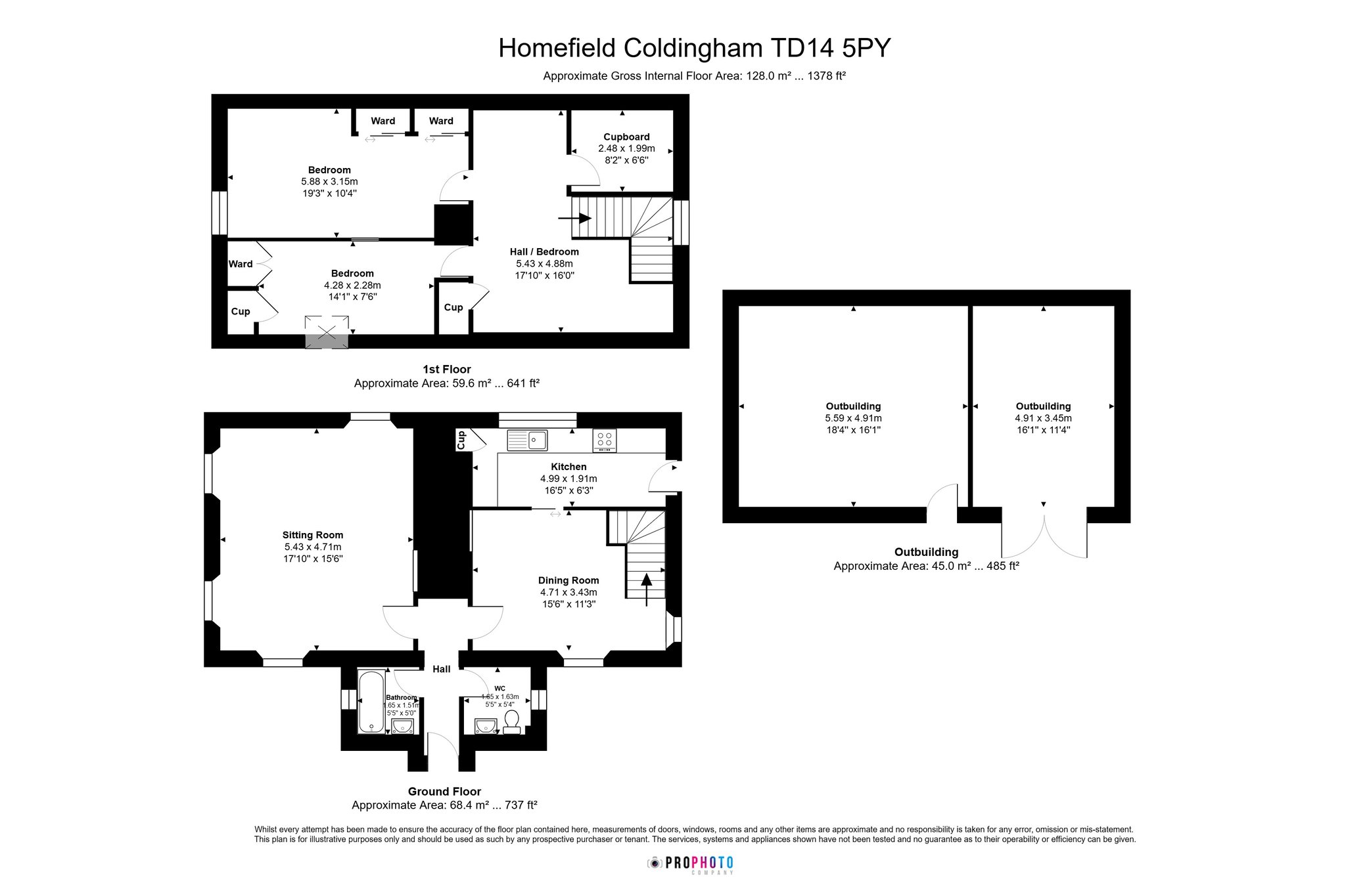 Ground Floor: Hall, Sitting Room, Dining Room, Kitchen, Bathroom, WC.