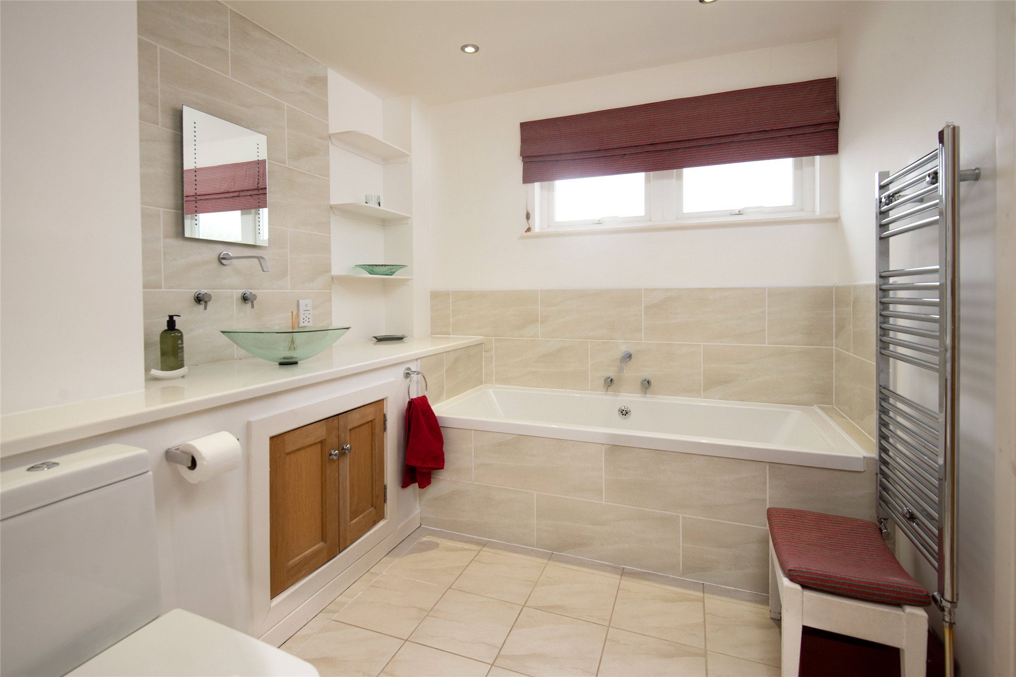 The ground floor offers another access into the house with expansive hallway and three good-sized bedrooms with the fourth being used as a study come bedroom. A family bathroom serves these bedrooms again with bathtub and shower.
