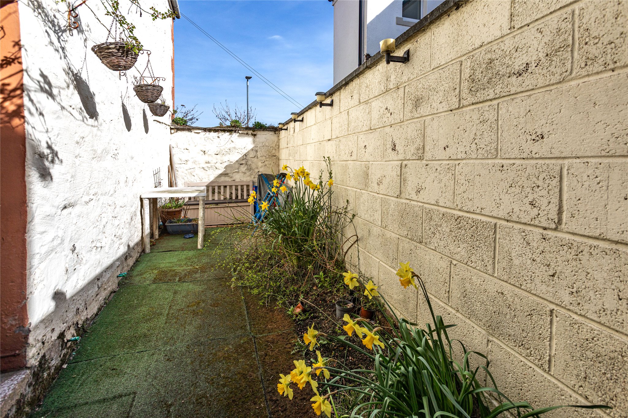 Outside: Rear courtyard, Unrestricted on-street parking.