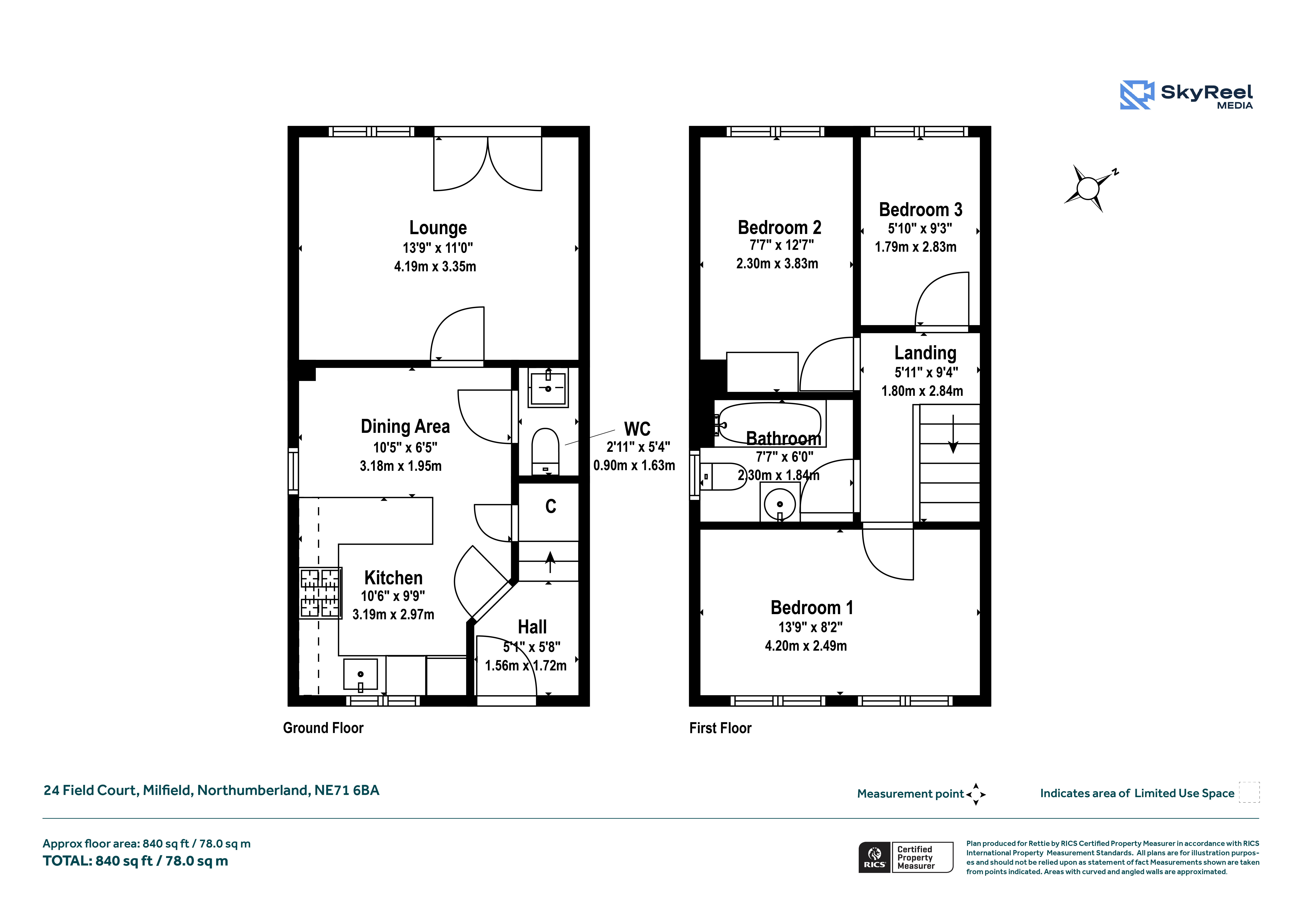 First Floor: Landing, Three Bedrooms, Family Bathroom.