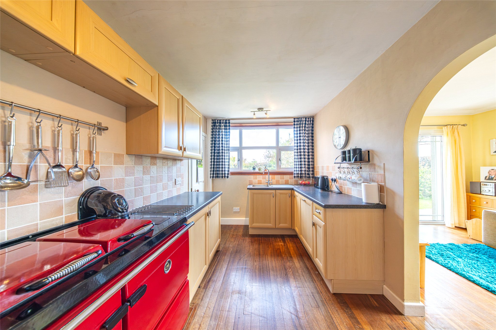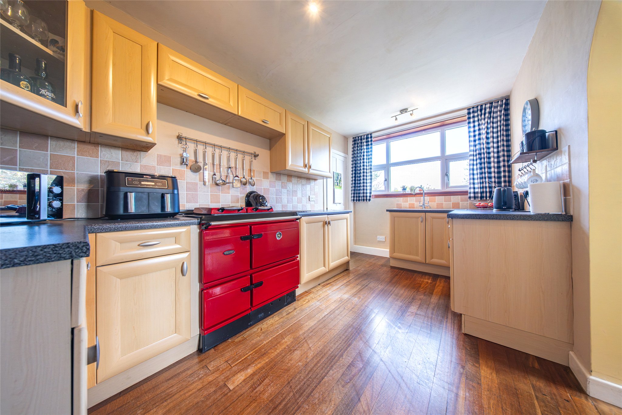 The house benefits from generous gardens, a private driveway, and a garage/workshop, along with stunning views across the surrounding countryside and the River Tweed towards the Cheviot Hills.