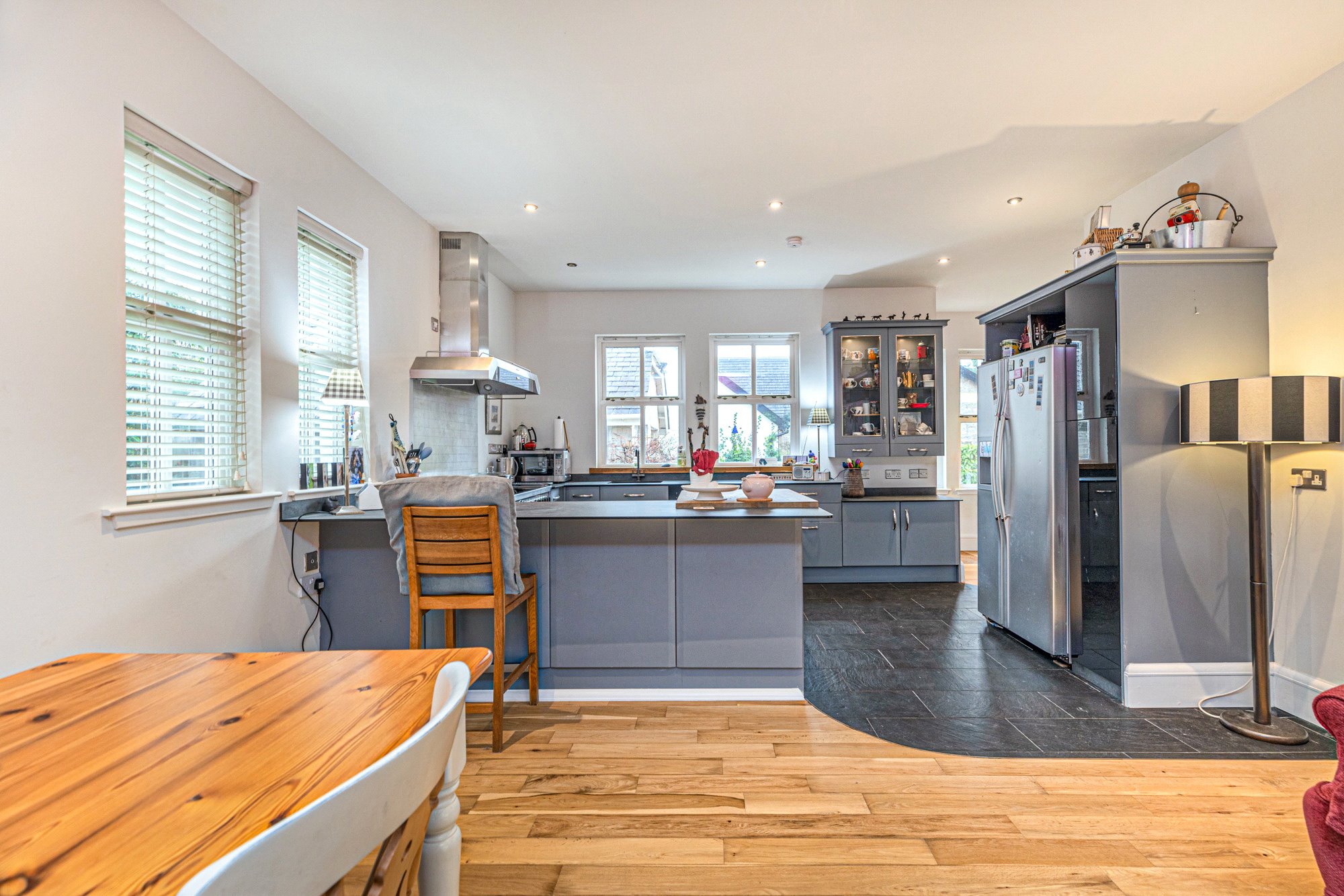 A home of a sizeable 2376 sq ft [221 sq m] (excluding garage and studio) it can be four or five bedrooms as needed, the original house brilliantly extended, both to the side (garden/family room) with a single storey and to the rear (dining kitchen, utility, shower room, principal bedroom suite) with a two-storey extension, in 2003.
