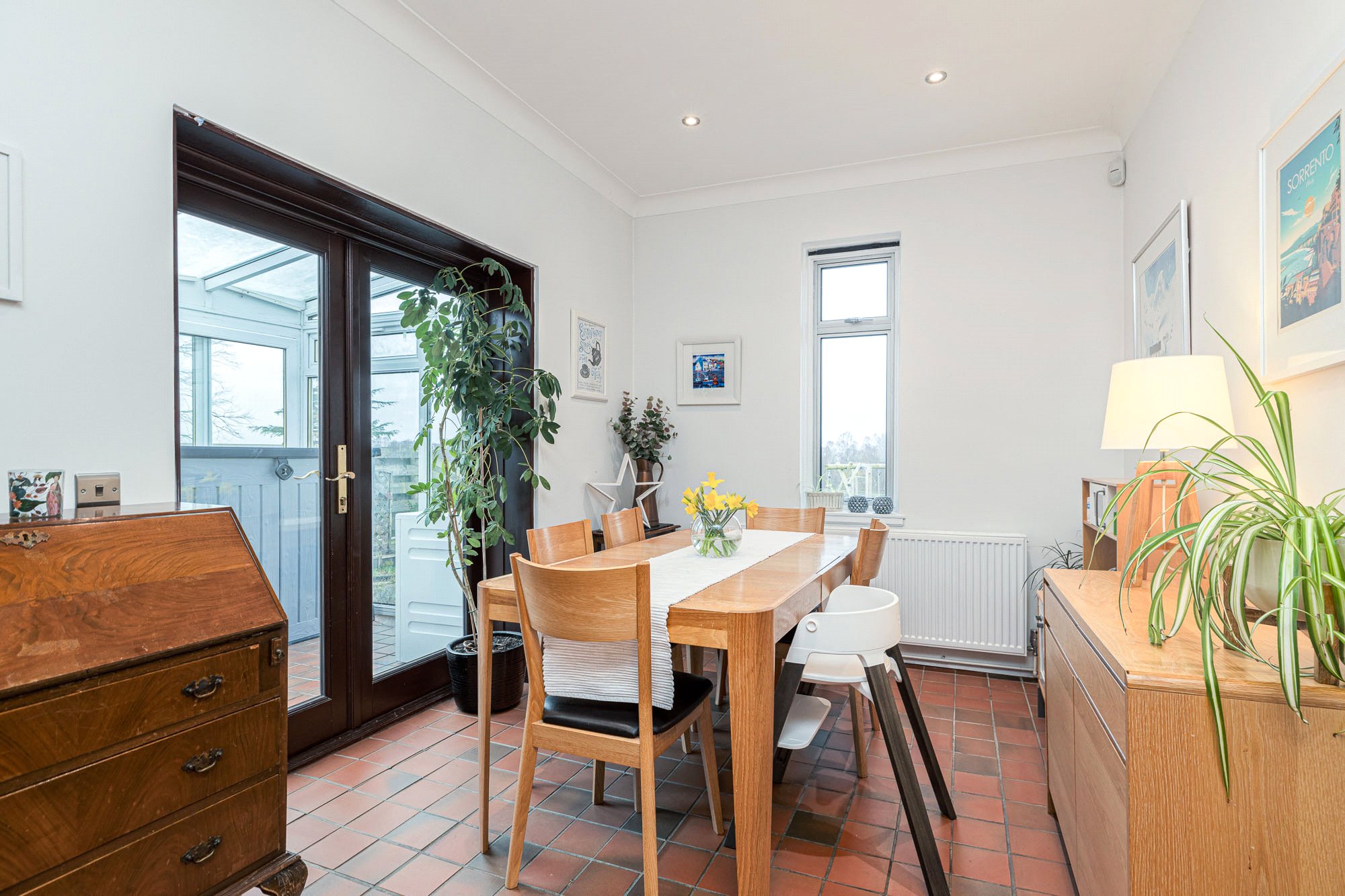 - Conservatory – uPVC framed double glazed on three sides including a set of patio doors. Quarry tiled floor. Views.