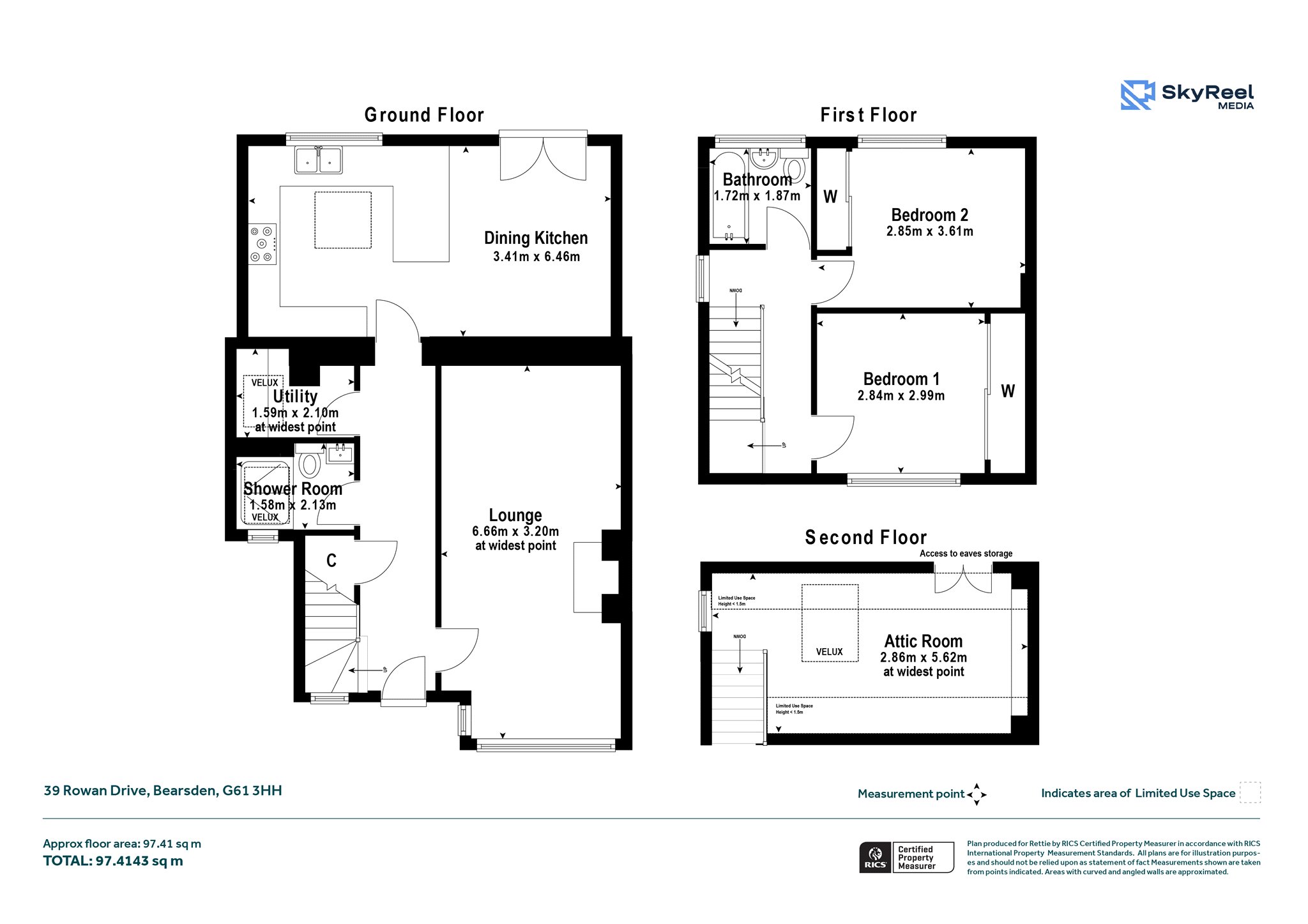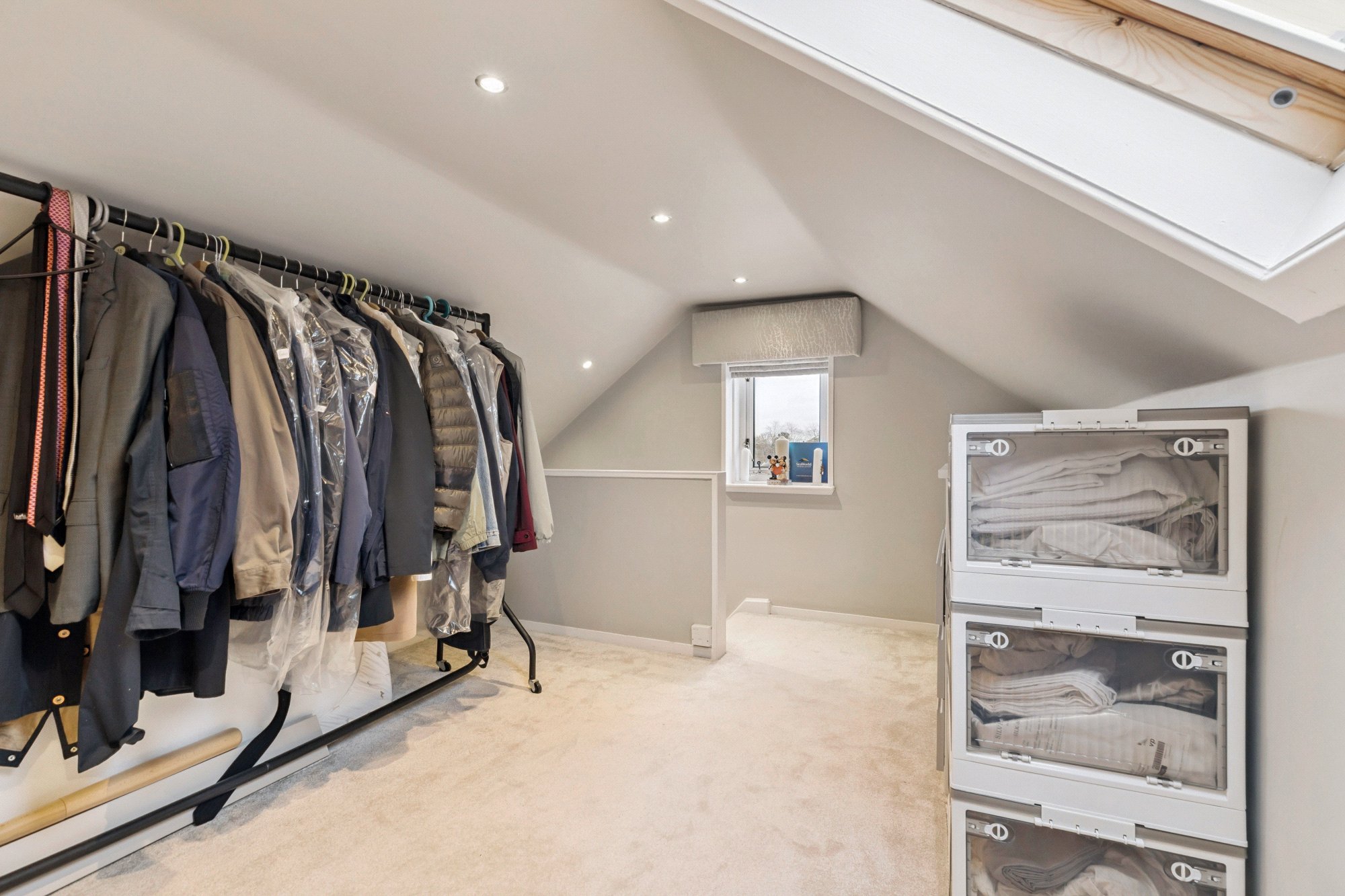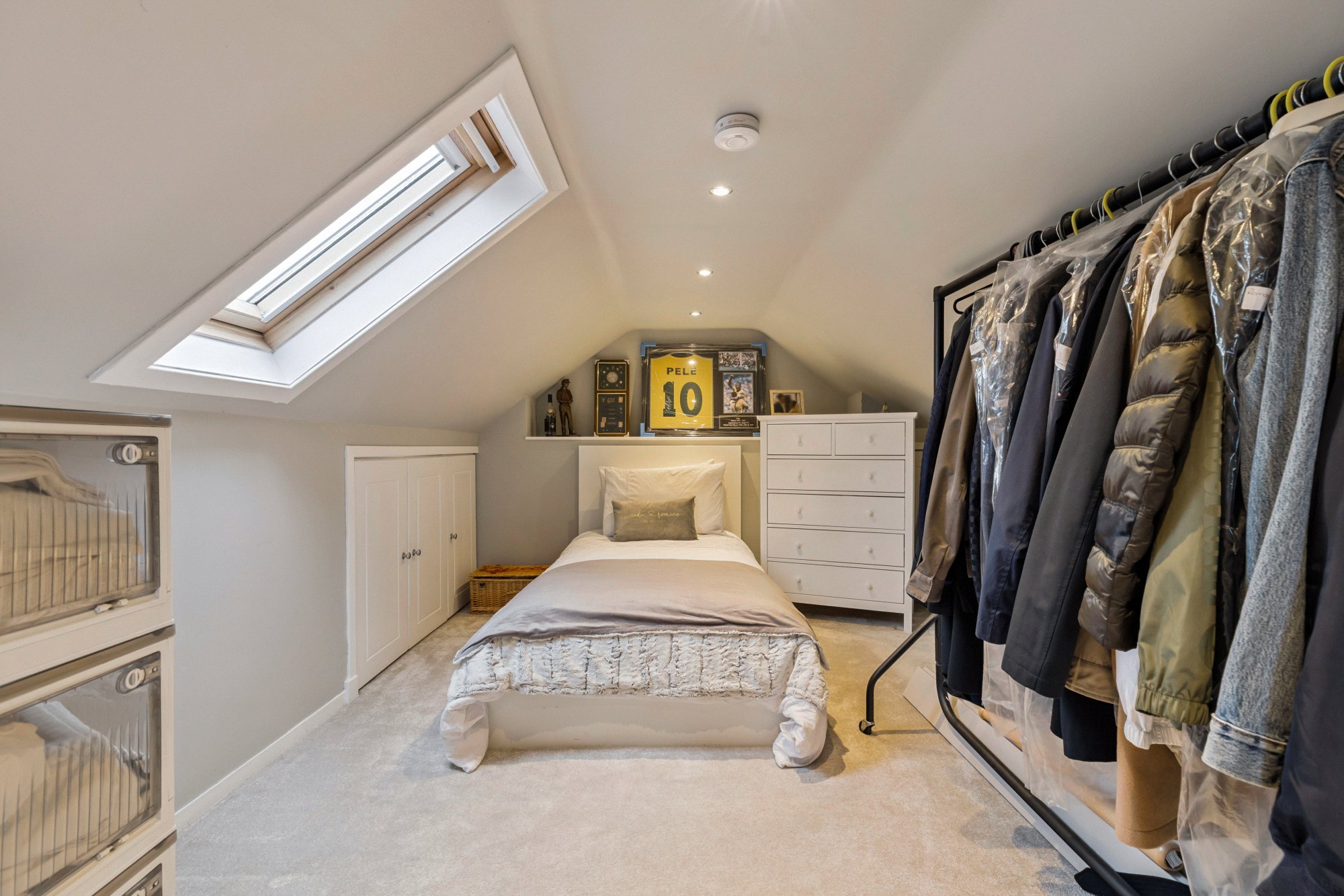- Floored and lined attic room with compliant staircase access, currently set up for ancillary use.