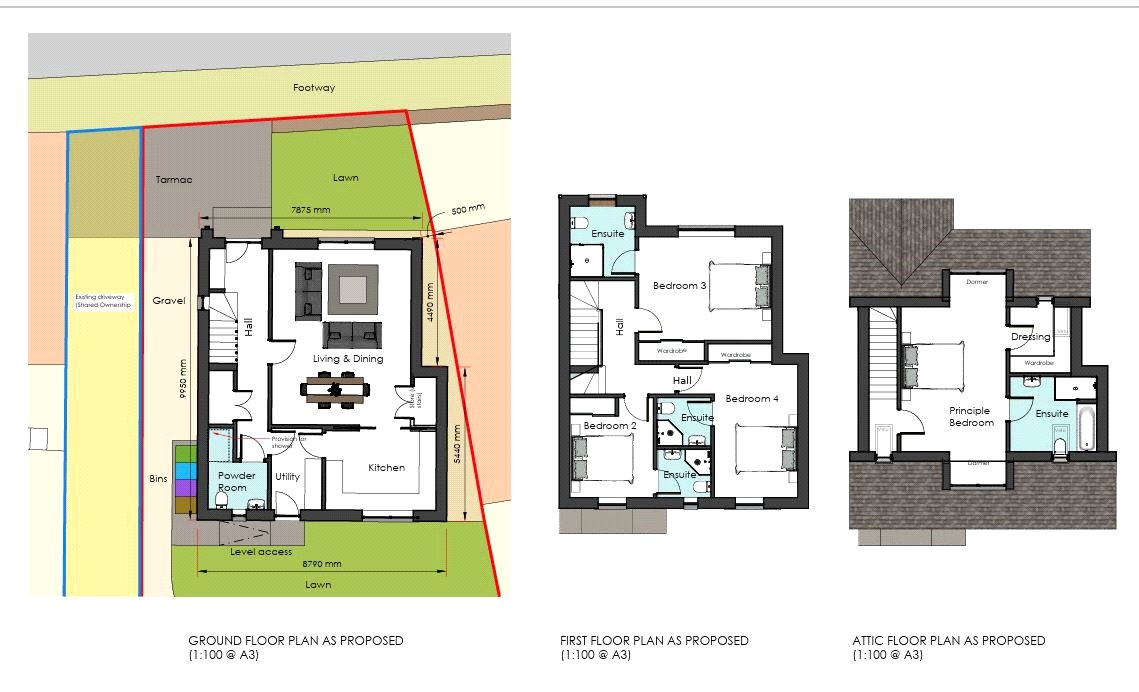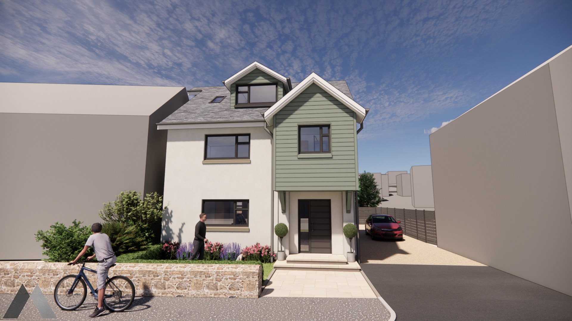 Planning Permission granted for a single, detached, house situated towards the front of the Plot, broadly in line with the building line of the neighbouring properties.