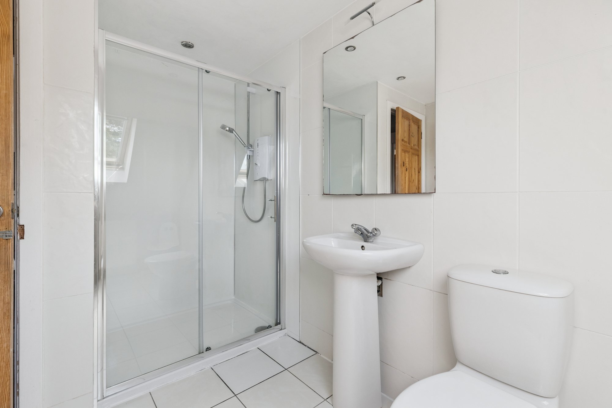 Large bathroom with four-piece suite including oversized shower enclosure with Mira Sport electric shower.