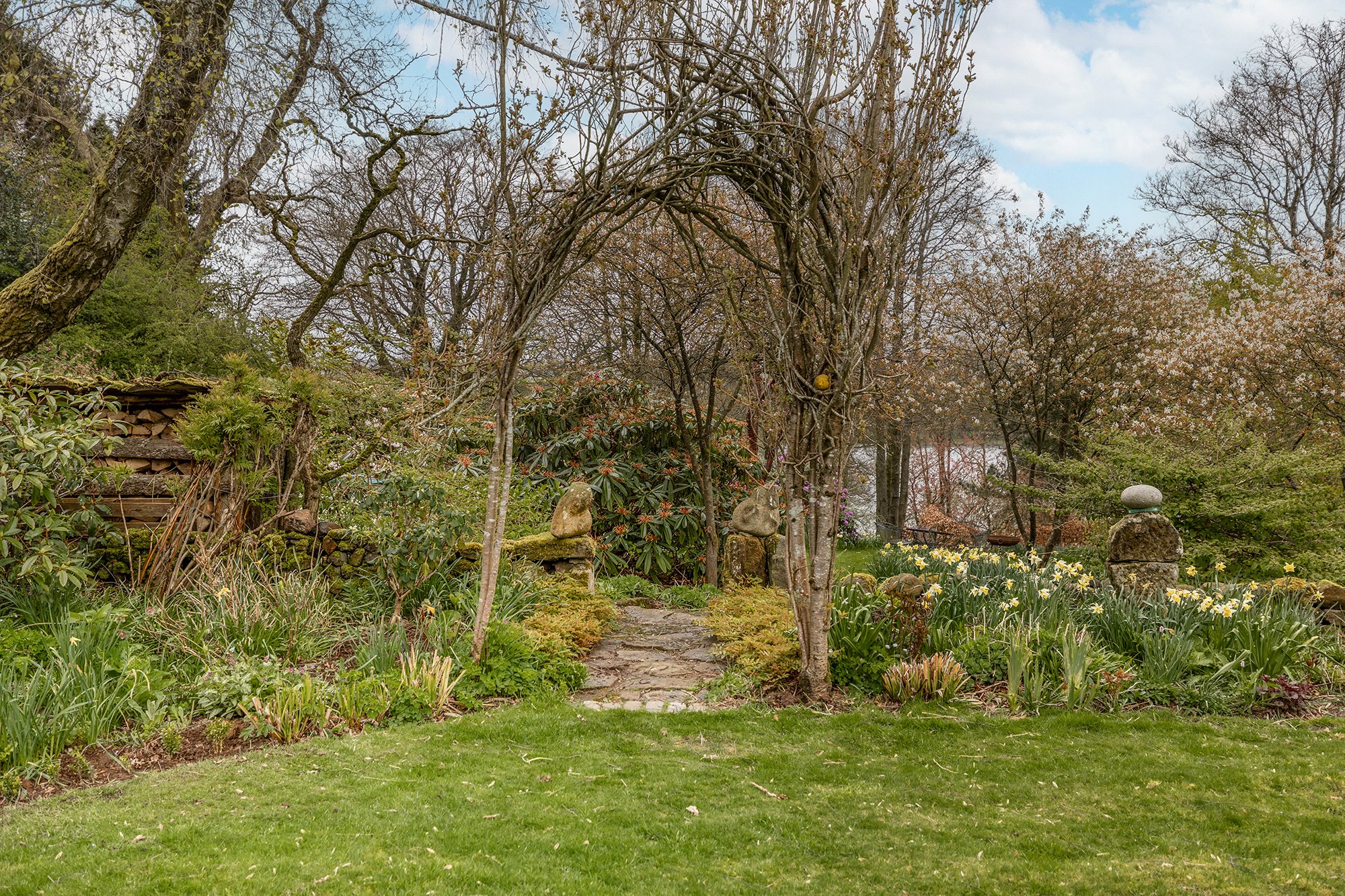 Beyond the border of the formal gardens is the most beautiful field, again decorated with a visually astounding array of foliage. This space, over which our clients have servitude rights, leads to the southerly shore of Bardowie Loch upon which residents of Robinsfield have boating rights. One could spend an afternoon taking in the unique beauty of the exterior of this special residence.