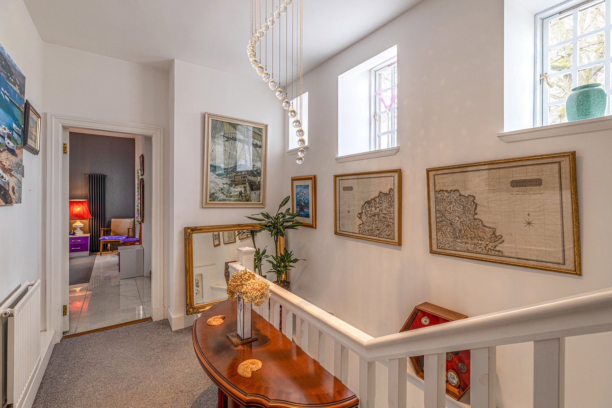 Thoroughly Scottish in style with its notable crow-stepped gables, conical roofed stair turrets and rectangular tower in the N.E corner, Robinsfield was created in the mid 1890’s through the significant extension of a modest early 19th century stone house and retains a wealth of unique period detail. The former home of renowned Glasgow painter Robert Macaulay Stevenson, the building was subdivided into a collection of five generous apartments in the mid 1980’s.