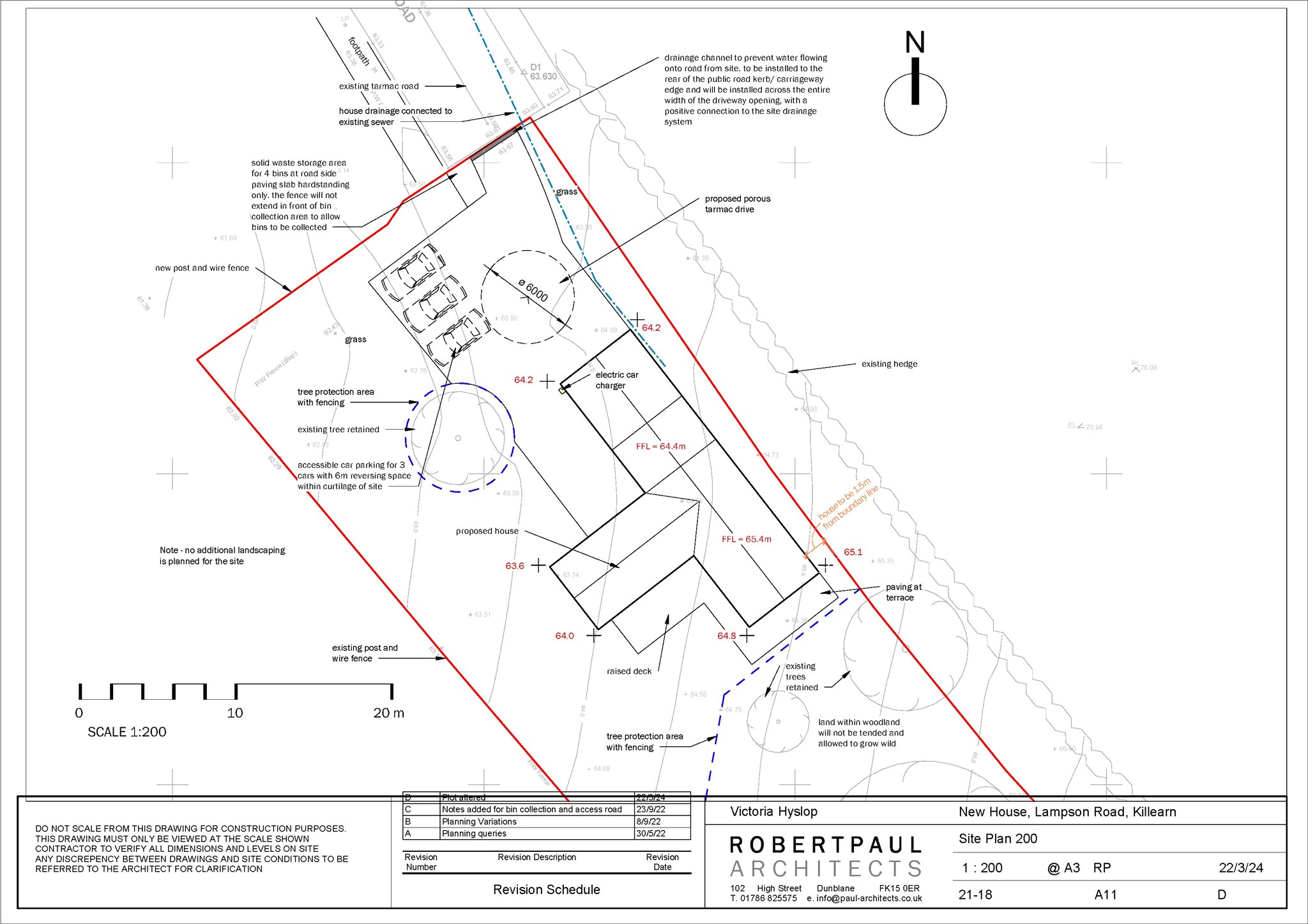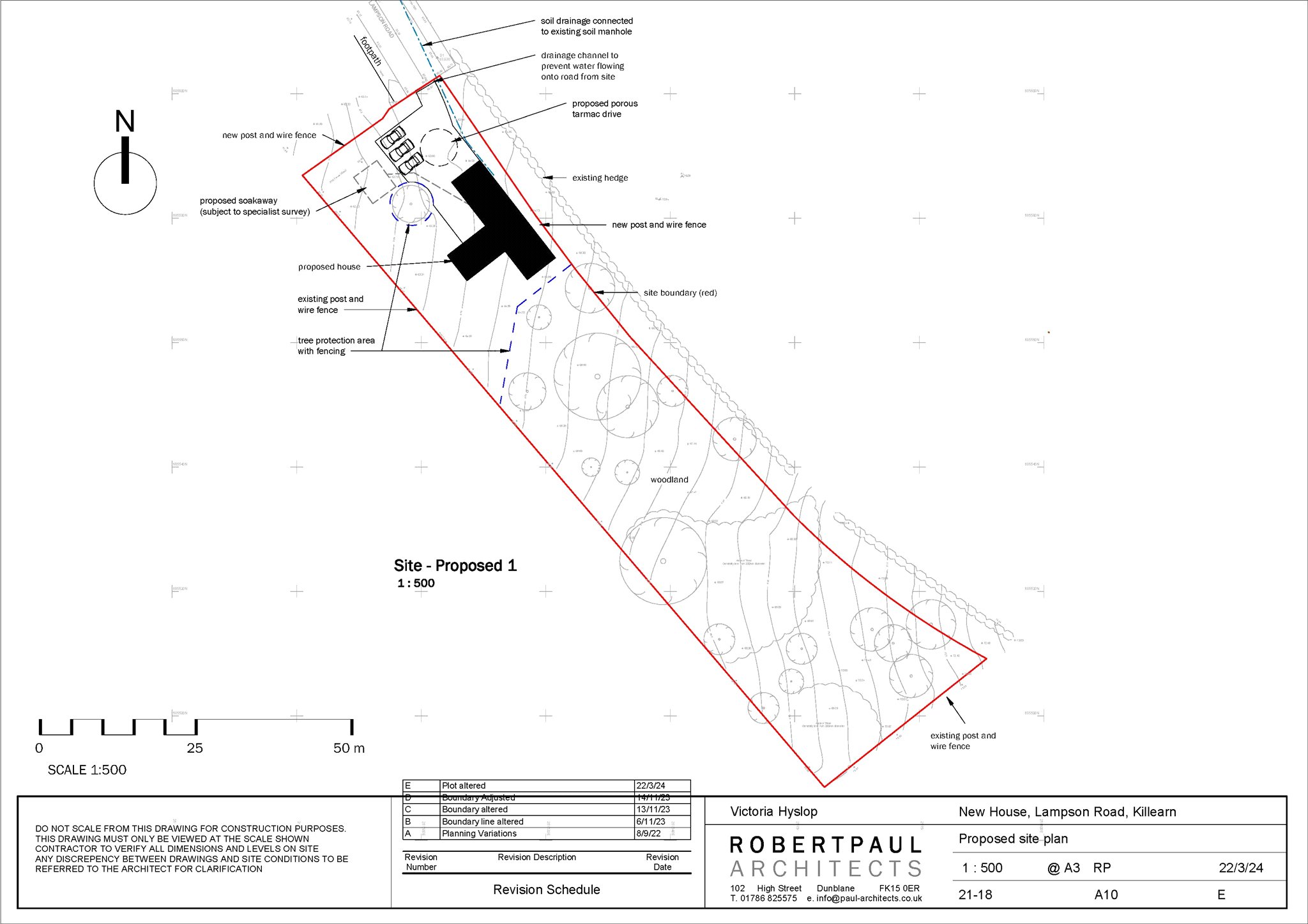 Consent was granted by Stirling Council under Planning Reference: 22/00344/MSC in September 2024, after an earlier consent in 2022. Interested parties should visit Stirling Council’s planning portal (www.stirling.gov.uk) click on ‘Planning’ and then click on ‘Planning Portal’ and then enter the above reference into the search box. We have herein site plans and drawings for the house submitted. On request to our office a copy of the title sheet, showing the extent of the plot, can be provided to interested parties. The photographs outlining the plot in red is broadly indicative of the site, for illustrative purposes only. Services (gas, water, drainage) are adjacent to the site, on Lampson Road, with electricity just beyond the southwest corner of the plot, we understand.