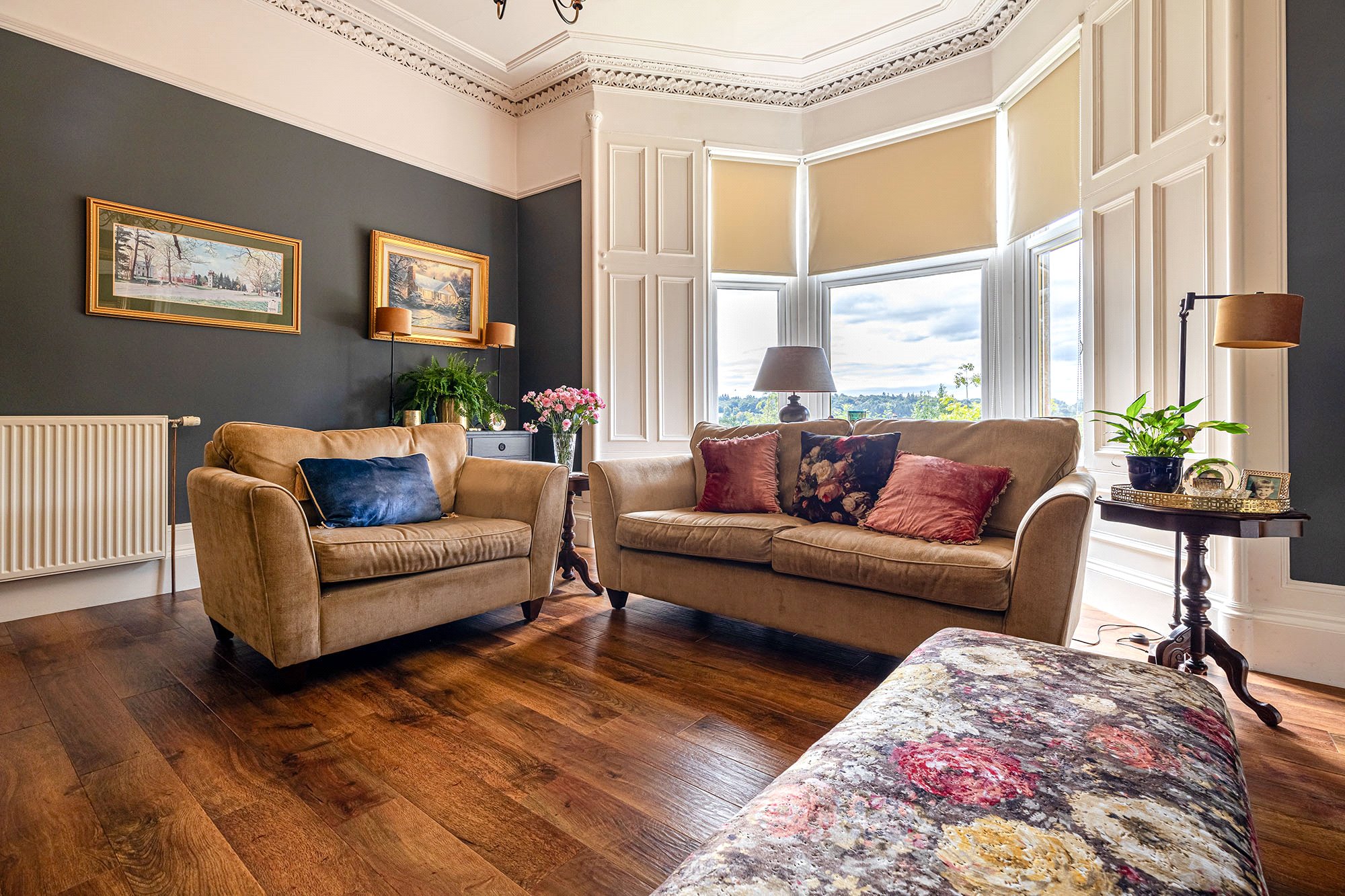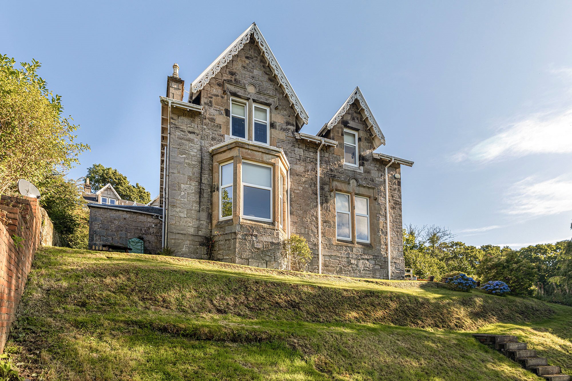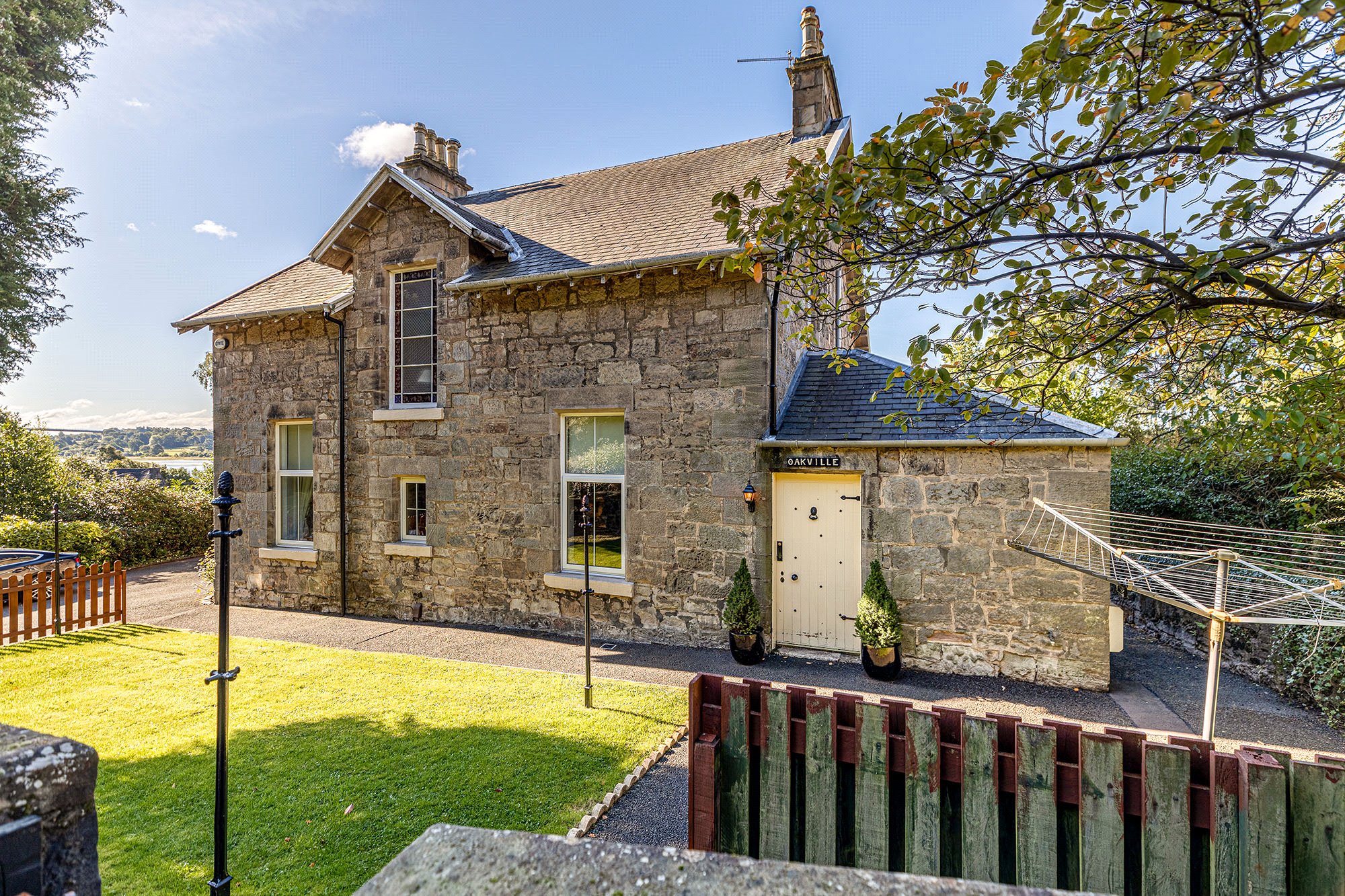 ‘Oak Ville’ is a very handsome and entirely unique detached stone villa that was originally constructed around 1880 and enjoys a fabulous position in the midst of a very quiet/peaceful road in the Village of Bowling – nestled between the towns of Old Kilpatrick & Dumbarton and very handy indeed for access to Glasgow City Centre.