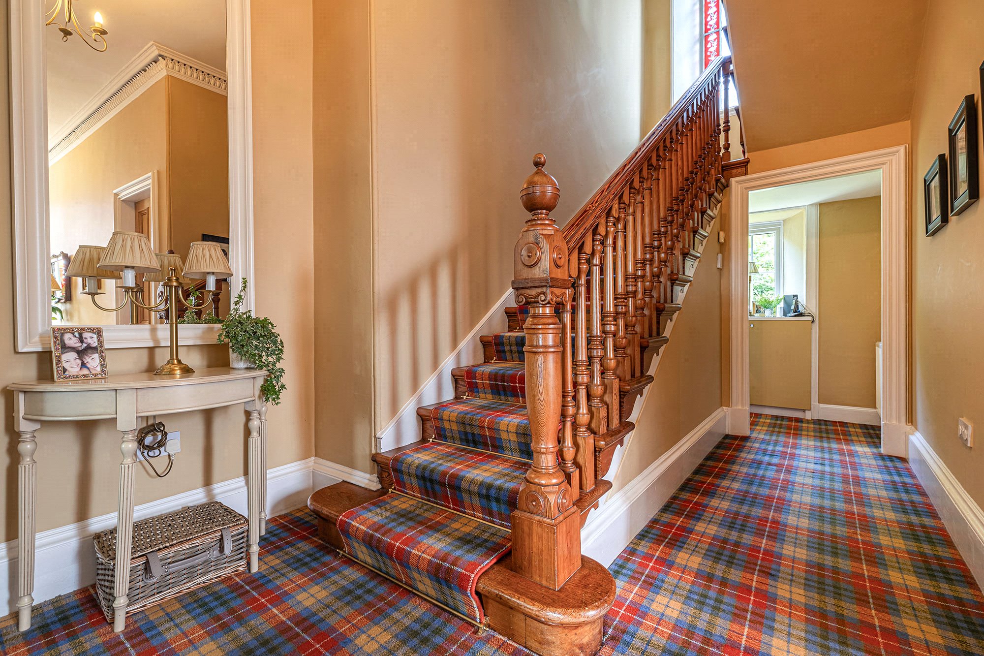 - Reception hallway with feature staircase (stained glass window at half landing)