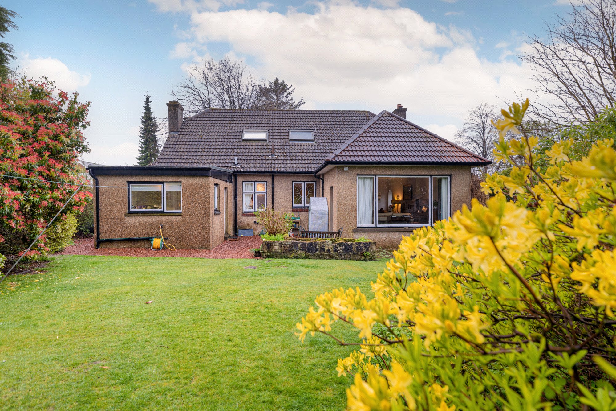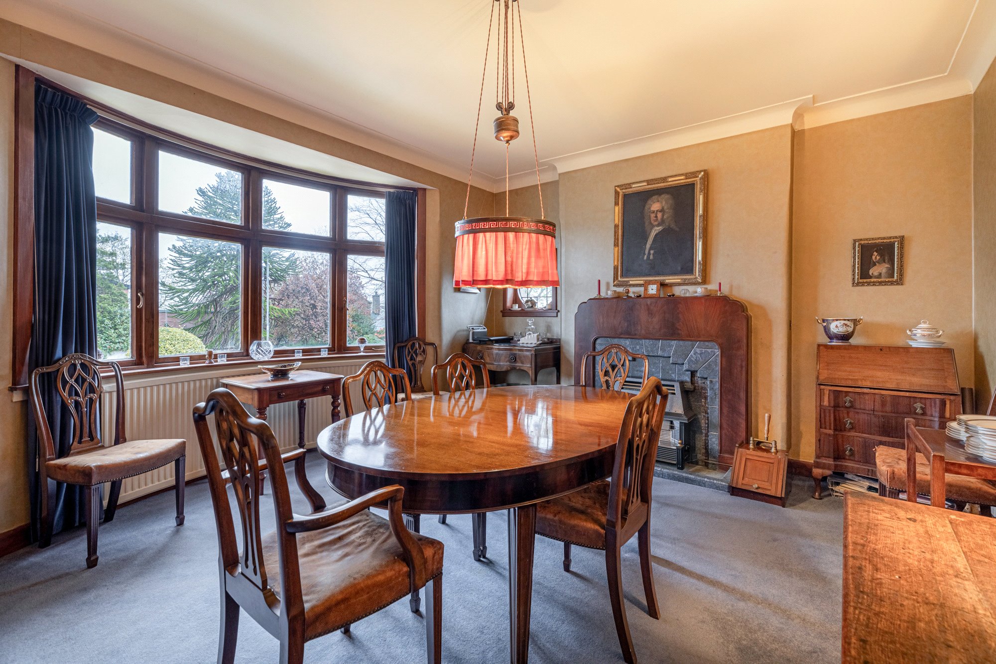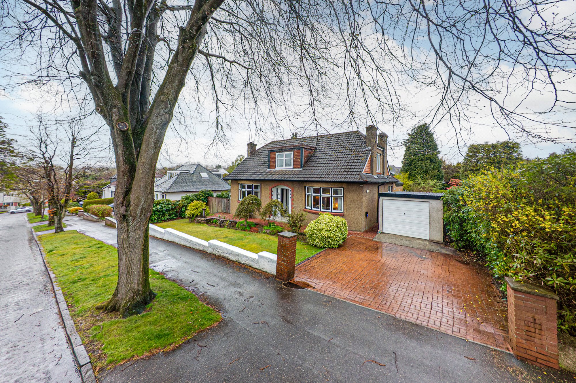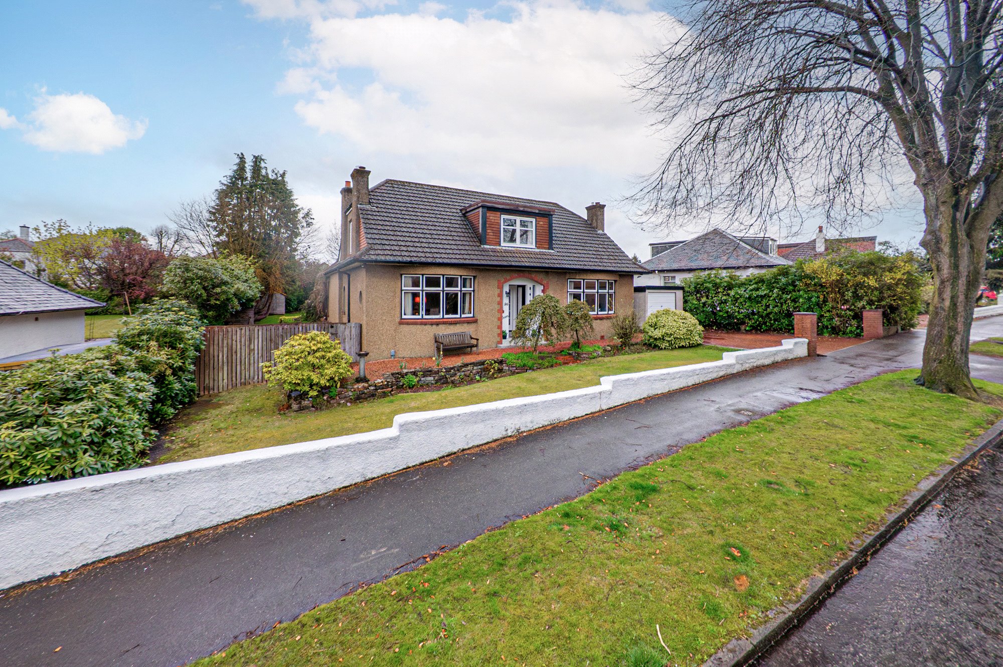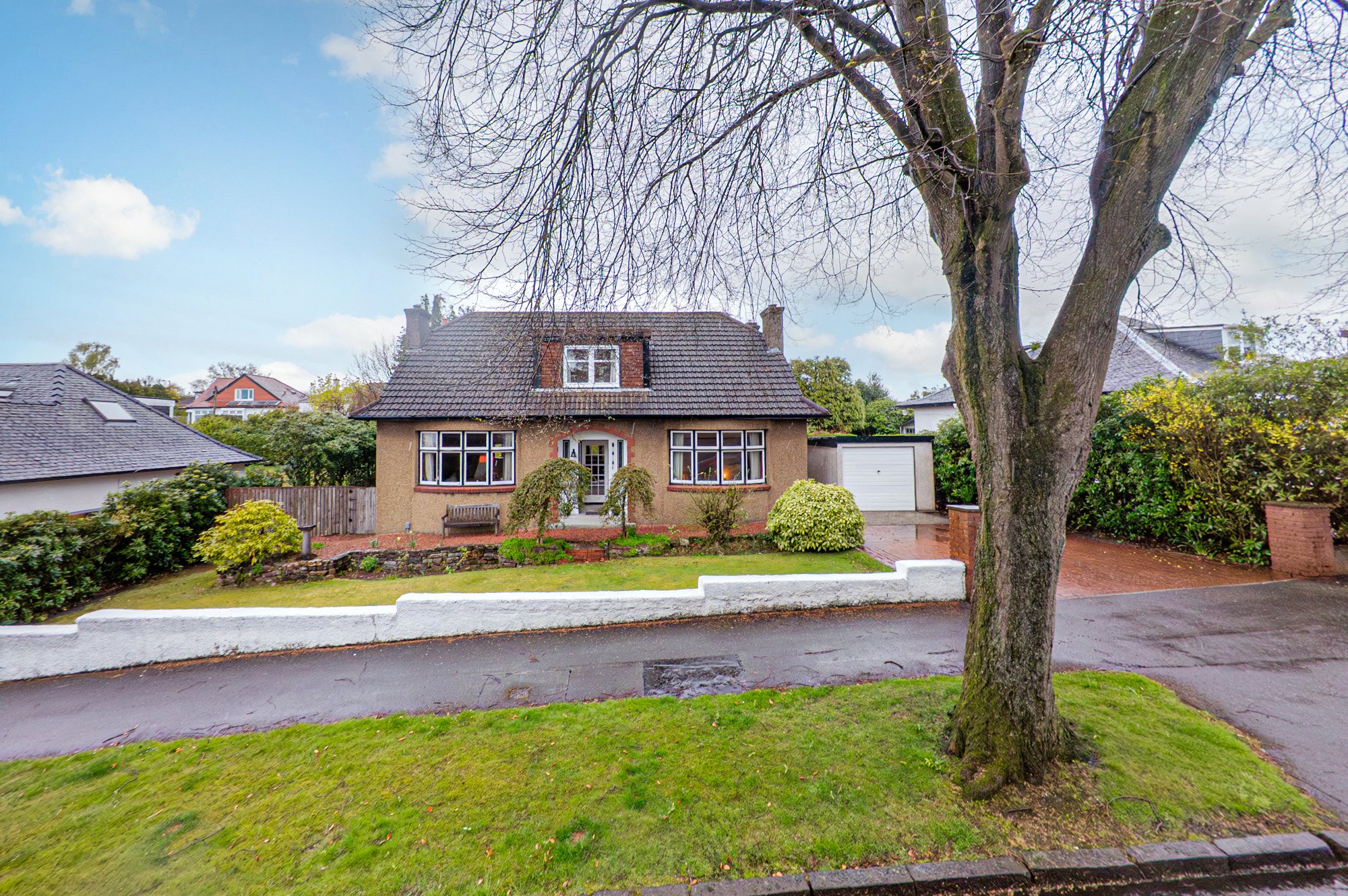 Sitting proud in the midst of Bearsden’s leafy and enduringly popular Lochend Drive, this immediately charming 1930’s home offers an abundance of flexible living space, with accommodation of seven principal apartments spread across a generous floor space that approaches 2,100 ft². The property features beautifully retained period details (inc. stunning wooden panelling and original doors, beautiful stained glass window to half landing), generous room sizes and tall ceiling heights throughout – a treat of a period home and one certain to offer appeal for those looking to make a long-term acquisition.