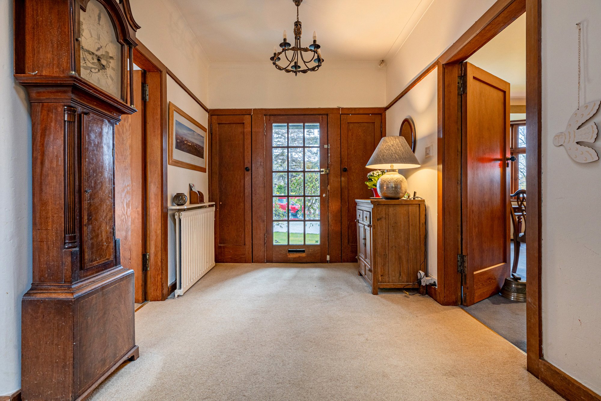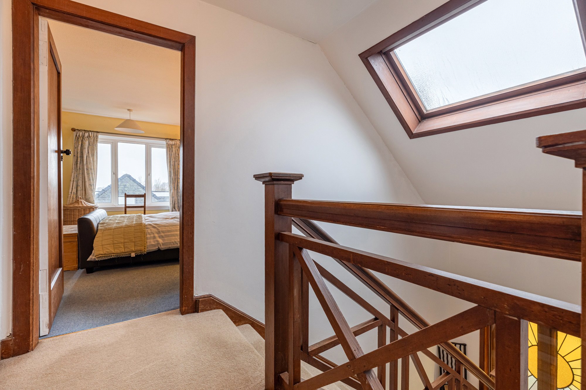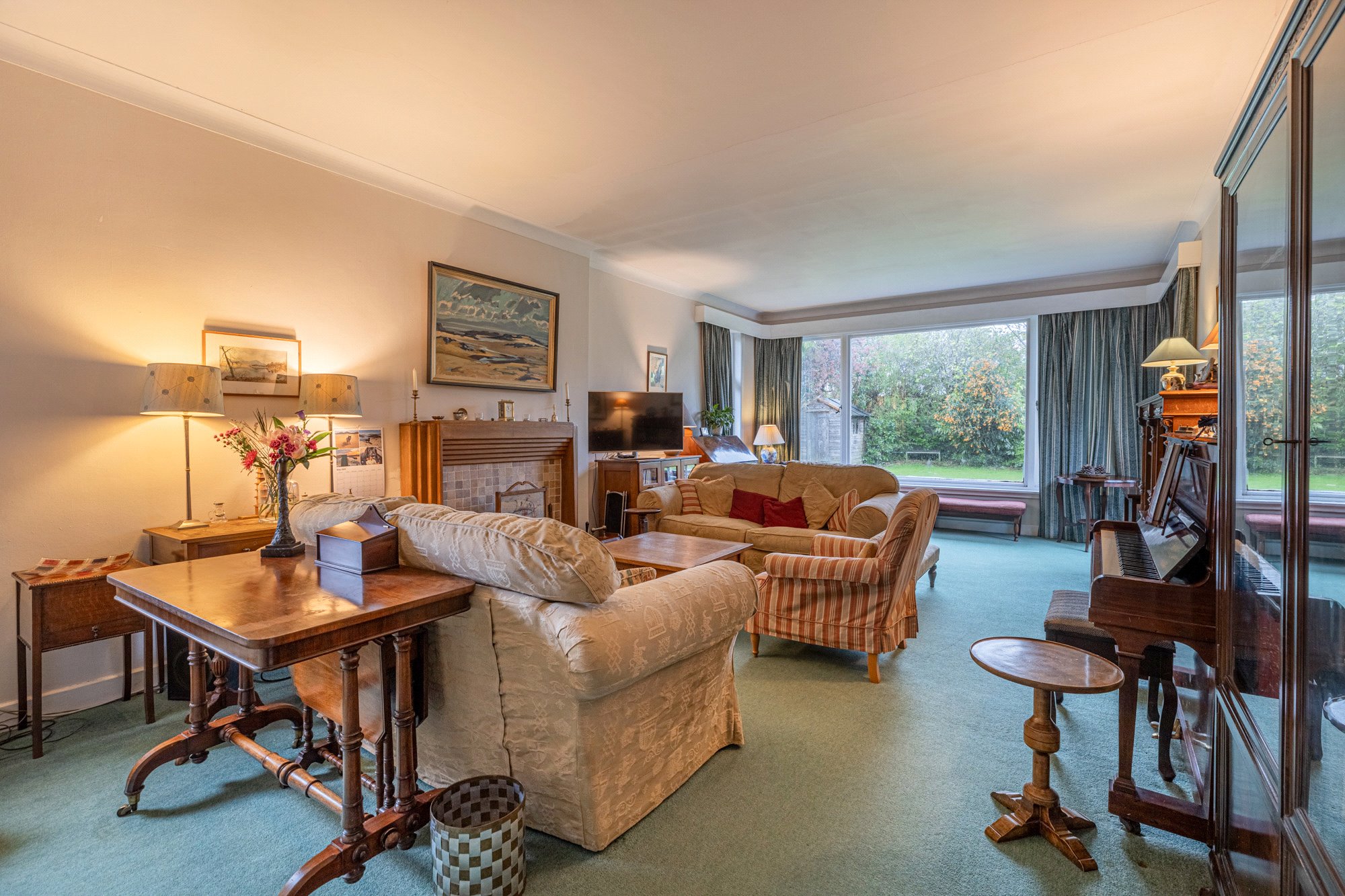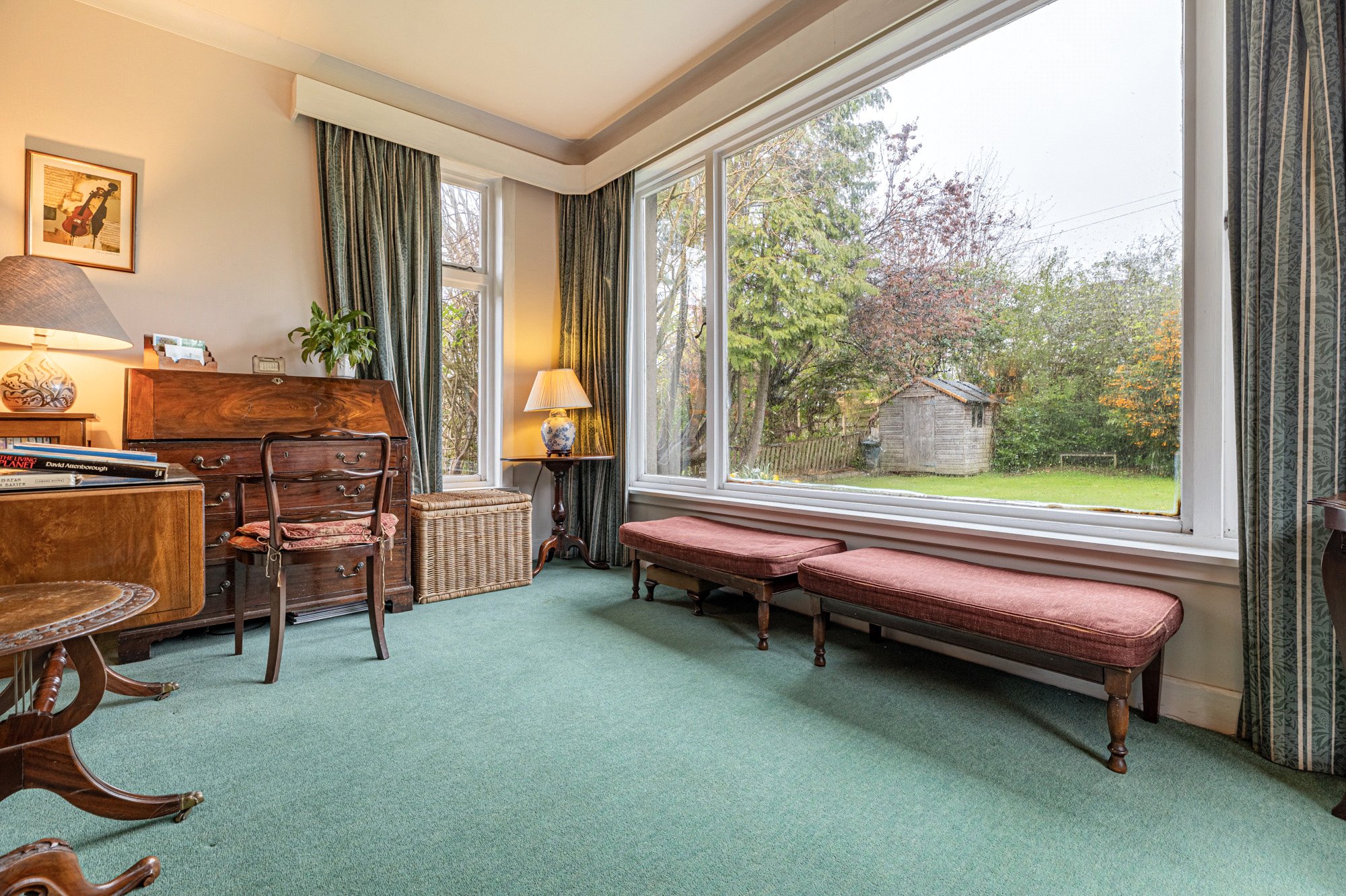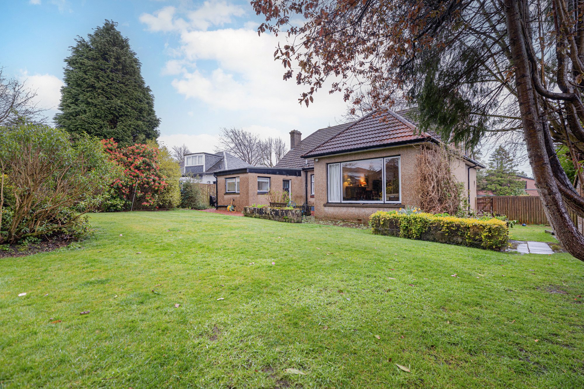 Sitting proud in the midst of Bearsden’s leafy and enduringly popular Lochend Drive, this immediately charming 1930’s home offers an abundance of flexible living space, with accommodation of seven principal apartments spread across a generous floor space that approaches 2,100 ft². The property features beautifully retained period details (inc. stunning wooden panelling and original doors, beautiful stained glass window to half landing), generous room sizes and tall ceiling heights throughout – a treat of a period home and one certain to offer appeal for those looking to make a long-term acquisition.