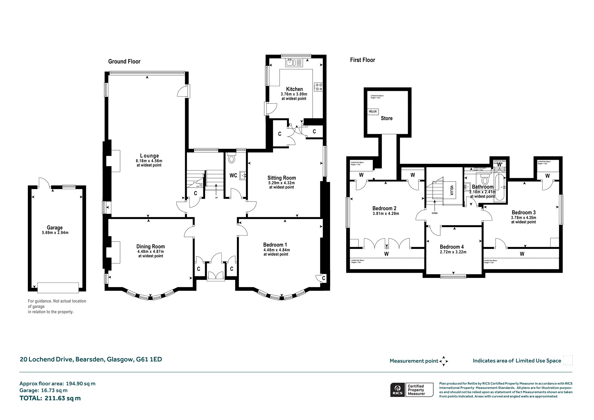 The house is circa a mile from Bearsden Cross and just over 1/4 mile from Bearsden railway station. Not far away is the expanse of Colquhoun Park (great area for kids). School catchment is Colquhoun Primary (placement requests for Bearsden Primary have been granted in the past) with secondary at Boclair Academy. Within Bearsden is St Nicolas’ Primary, Bearsden Early Years Centre, and the junior school for The High School of Glasgow.