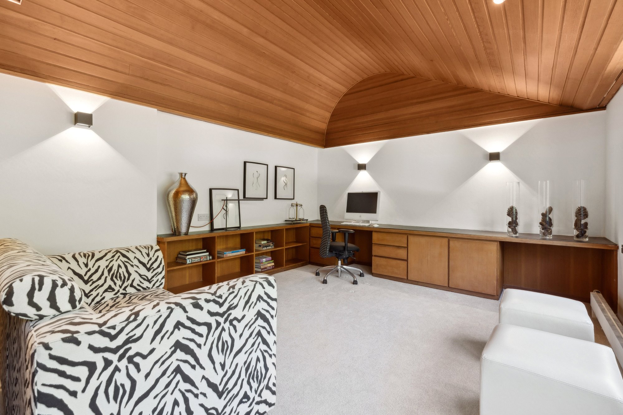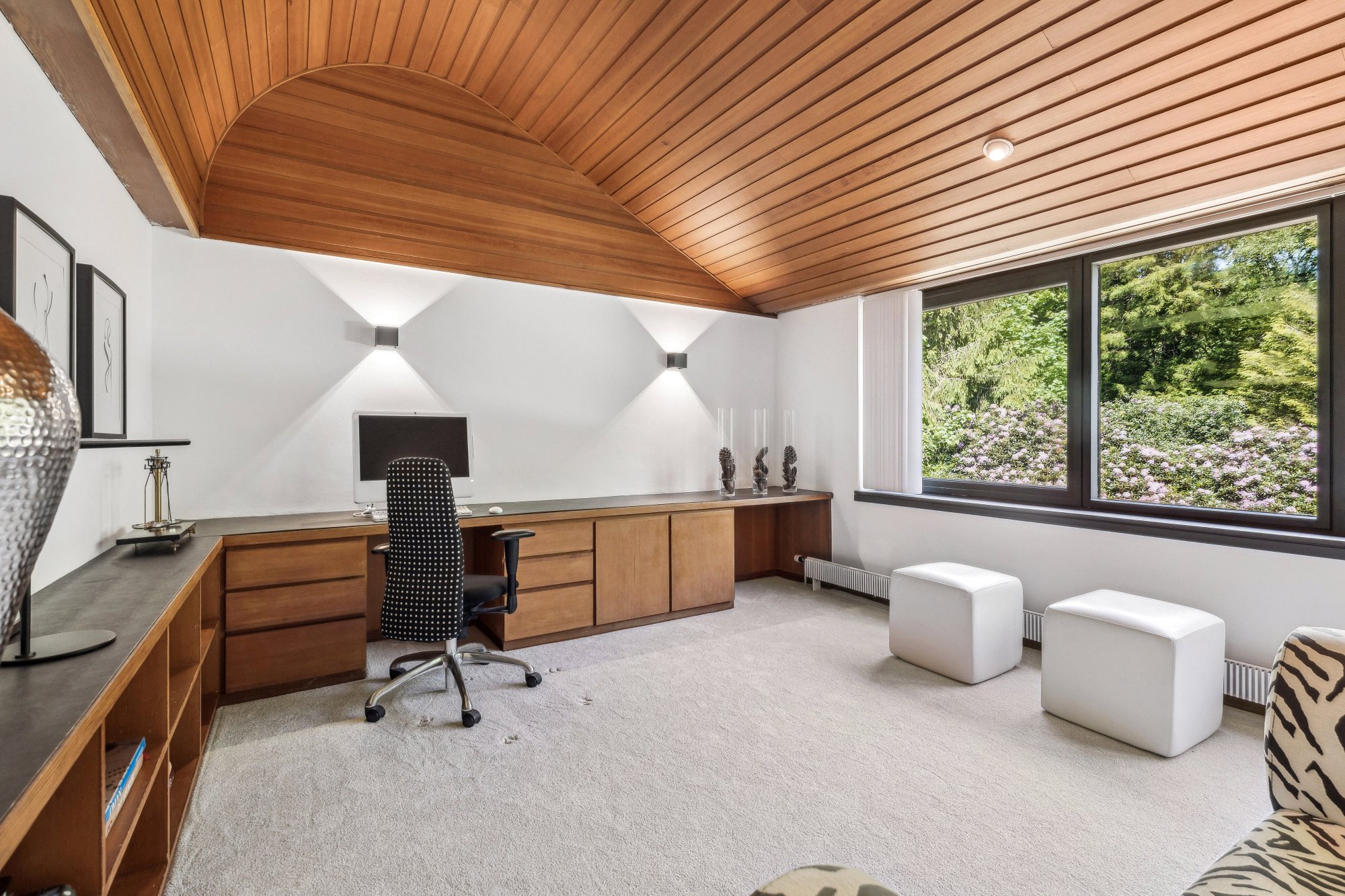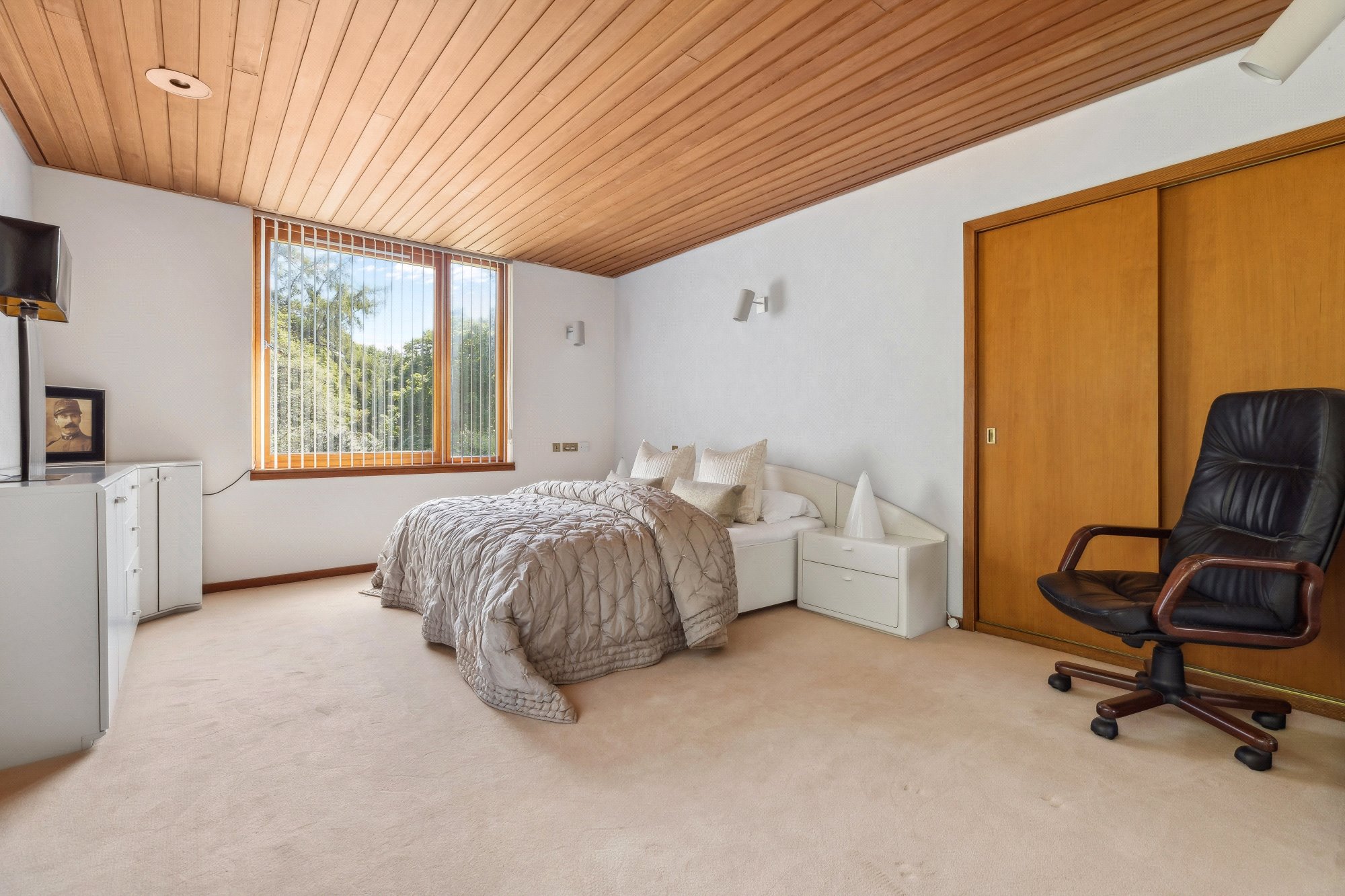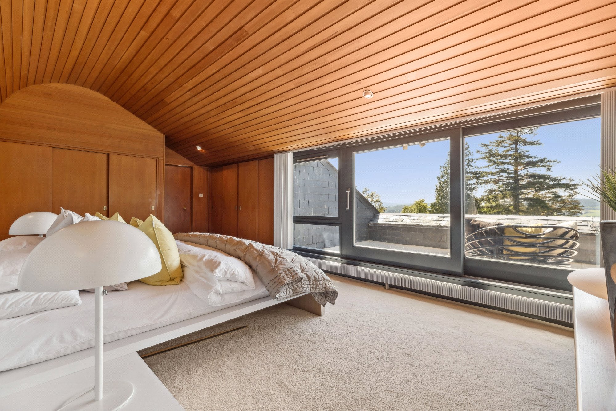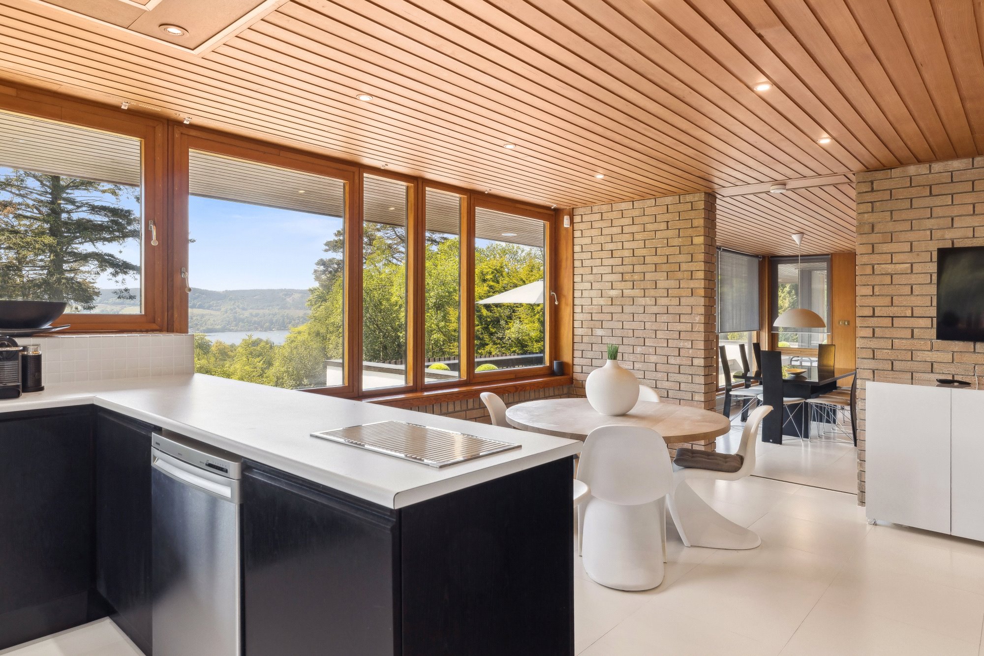 Nestled into the hillside above Rhu and surrounded by mature woodland, Tigh Geal is a remarkable 1970s residence that blends iconic architecture with timeless design. Translating to The White House in Gaelic, this bespoke family home offers a rare sense of privacy and tranquillity, with expansive views sweeping across the Gare Loch, Rhu Point and the Clyde estuary.