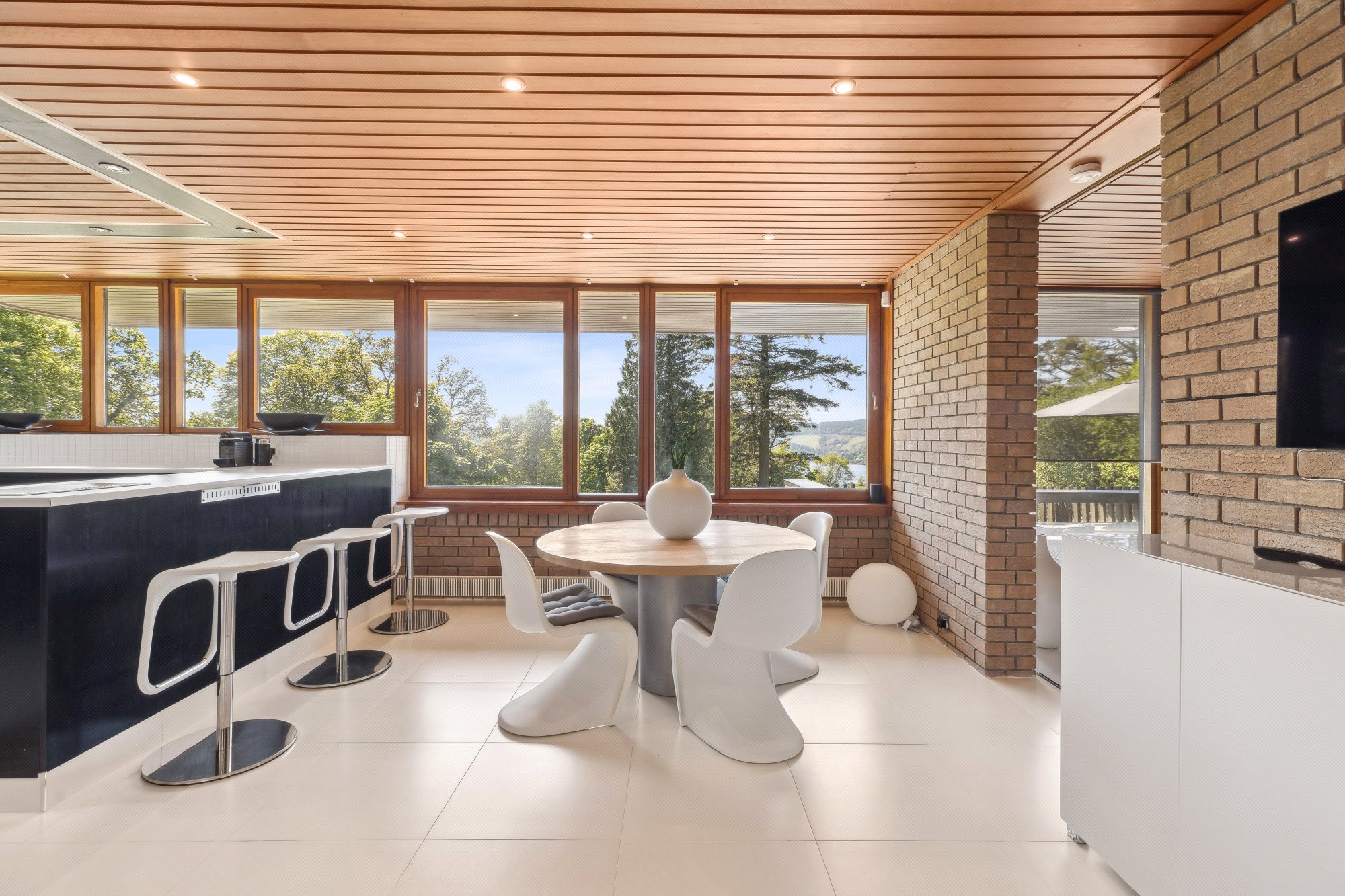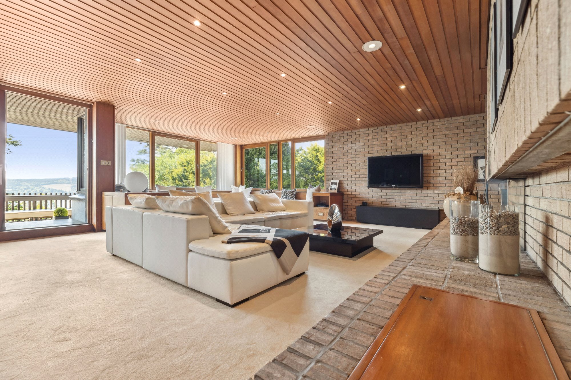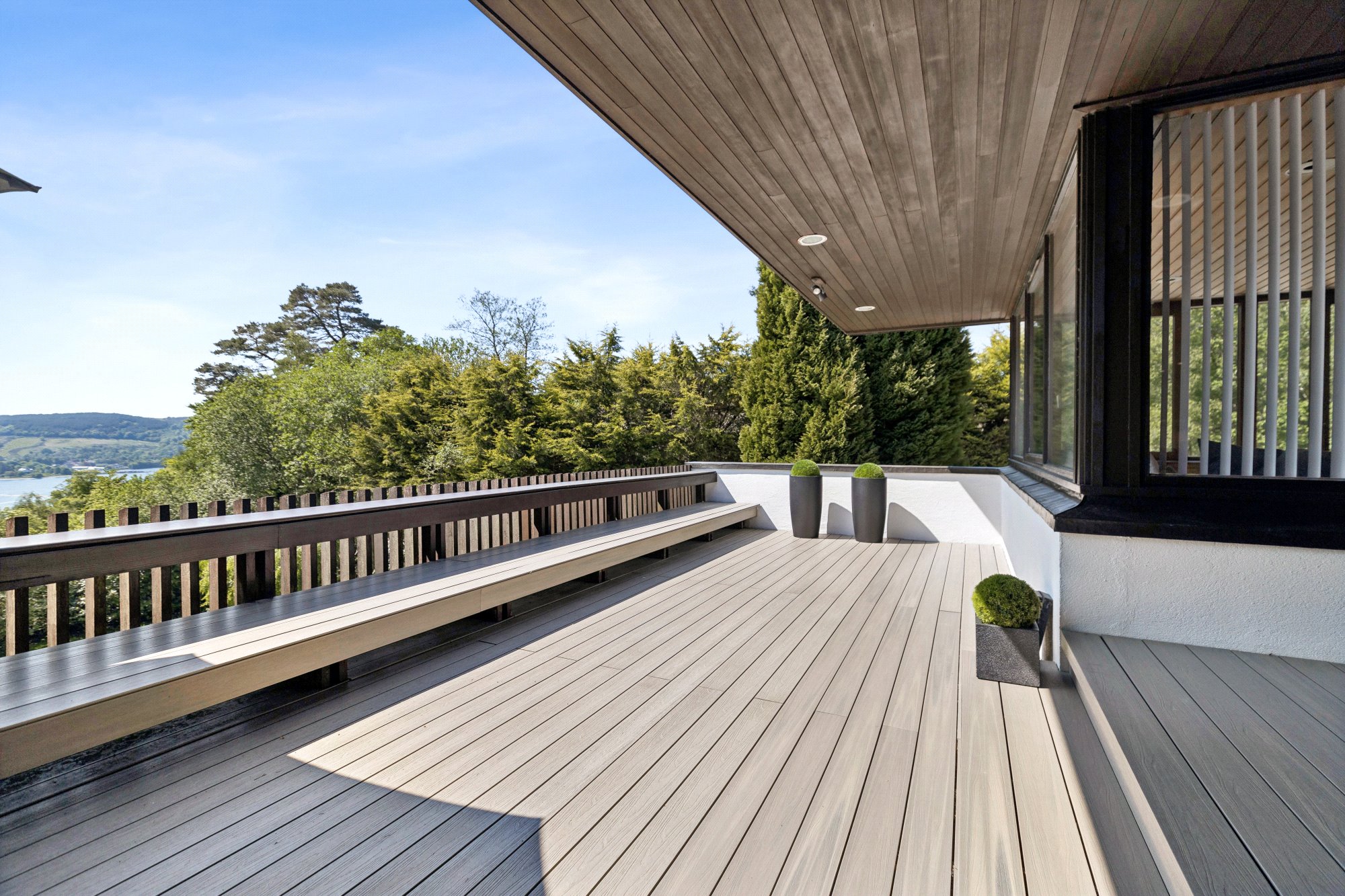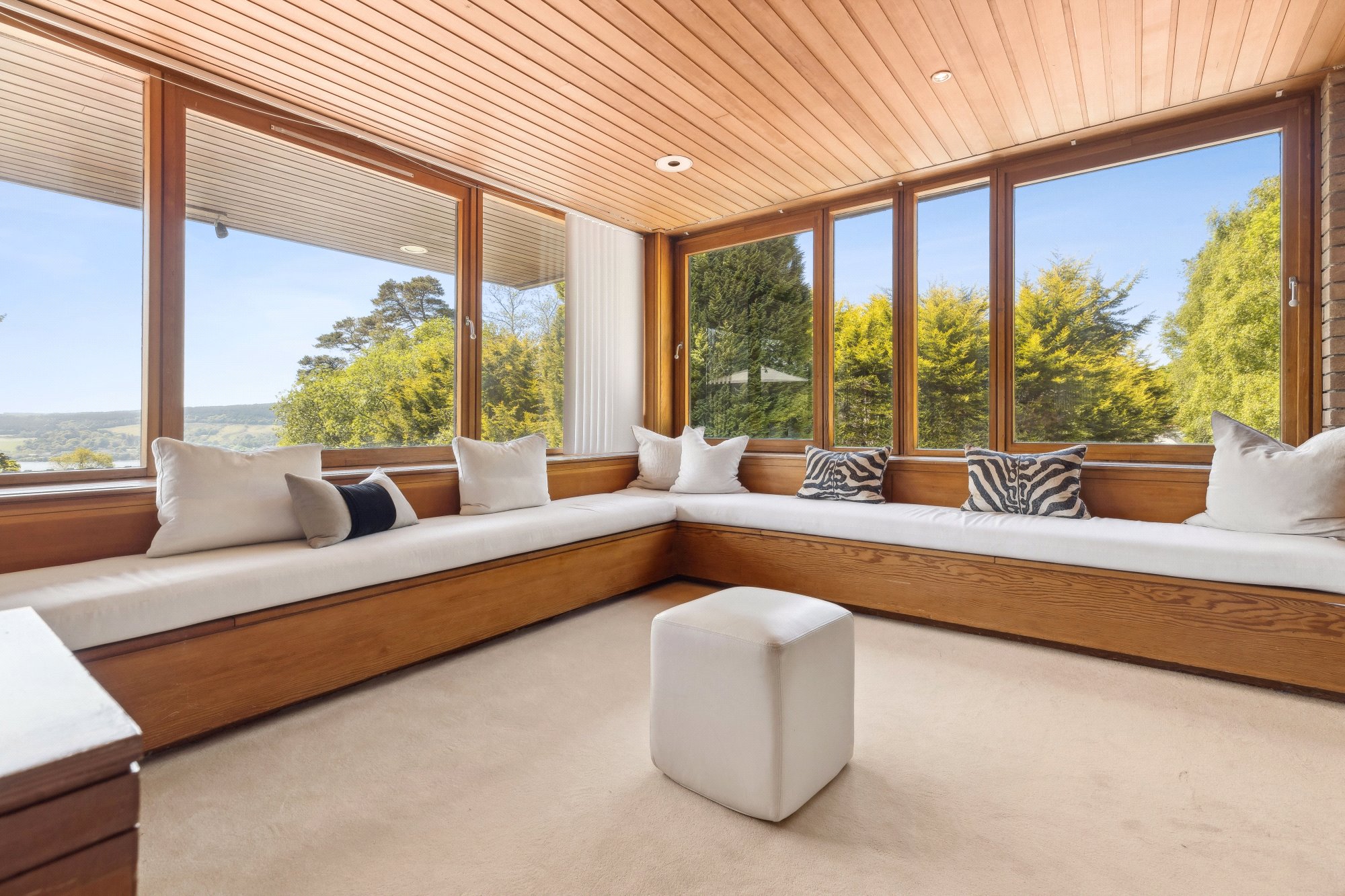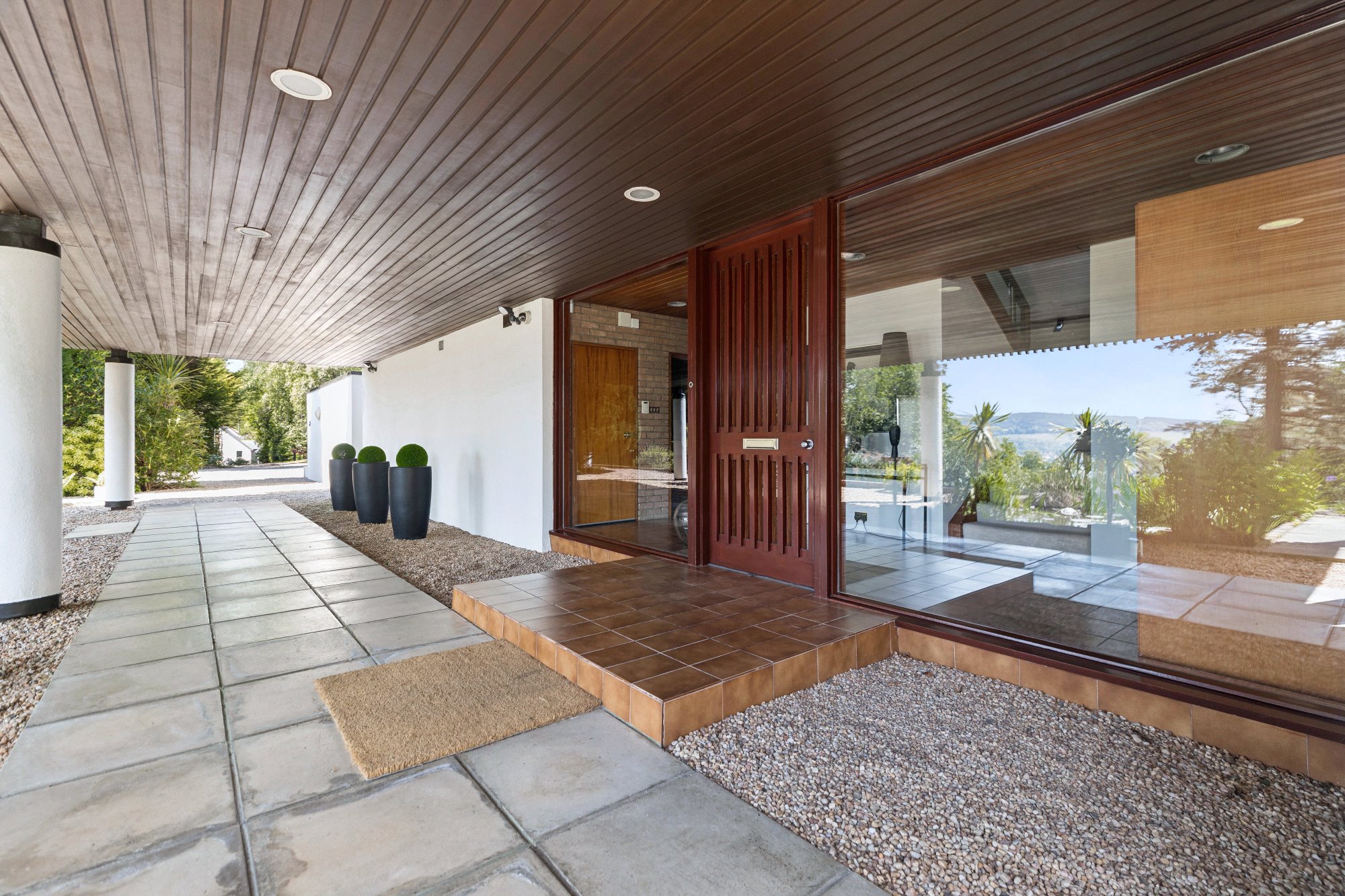 Built circa 1976 and owned by the same family since 1987, Tigh Geal has been meticulously maintained and sympathetically updated, preserving the mid-century soul of its design aesthetic while adding modern comfort. Full-height glazing, multiple balconies, and extensive open-plan interiors characterise this unique home — designed to bring the outside in.
