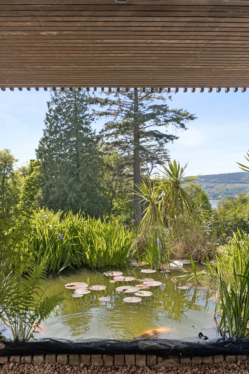 Ornamental fish pond adding charm and tranquility.