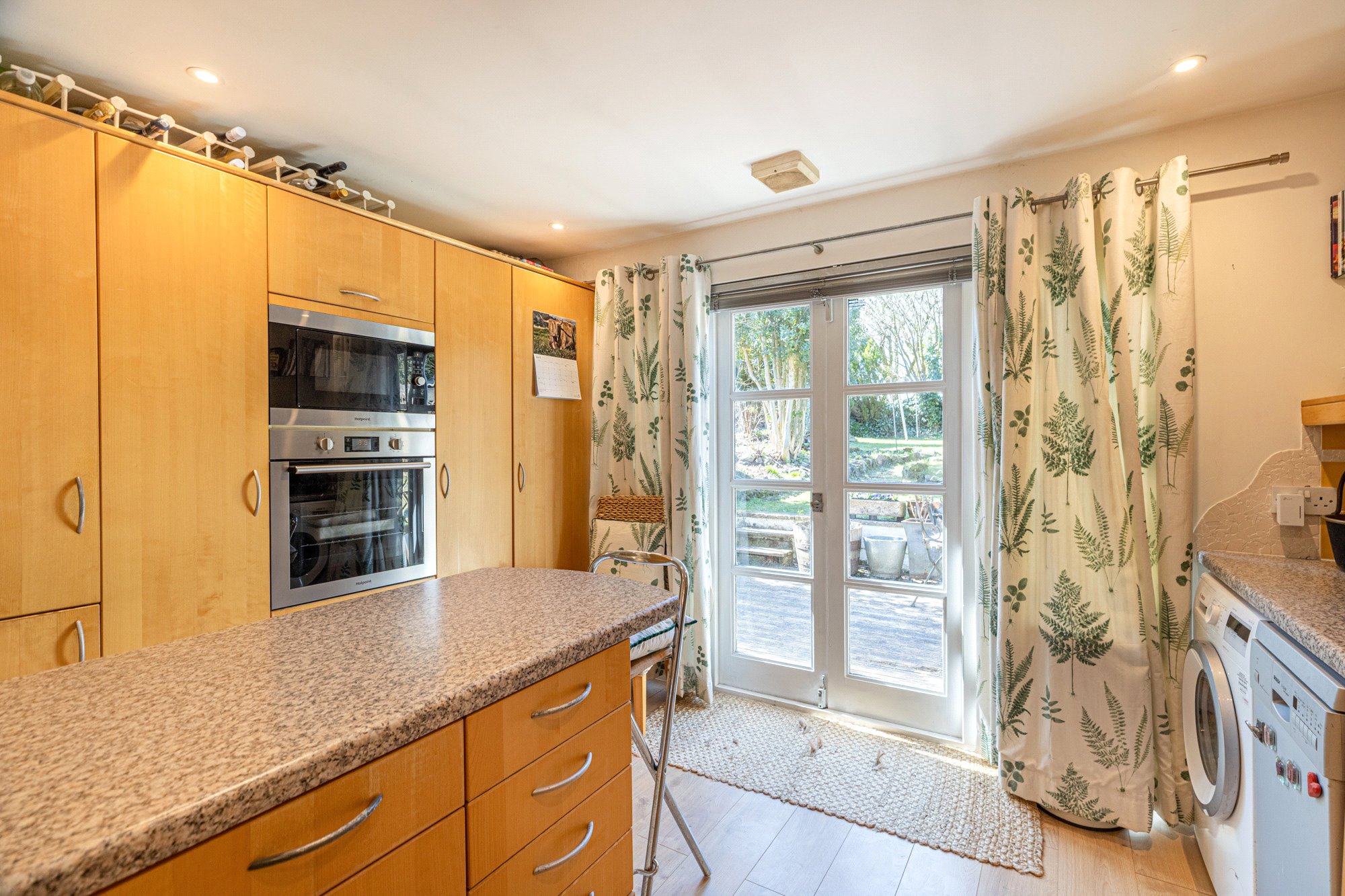 - Kitchen – range of integrated appliances including recently fitted microwave and oven by Hotpoint. 5 burner gas stove and extraction unit by Smeg, plenty wall/base mounted storage, breakfast bar area, door access to rear garden