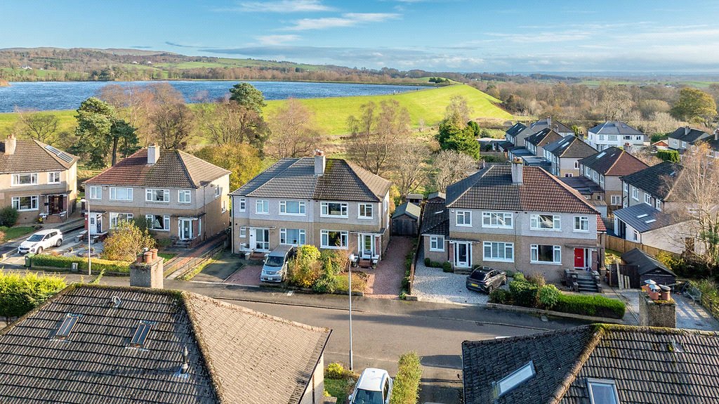 Situated amidst a peaceful, family friendly cul-de-sac to the north of Milngavie Village is No.36 Roselea Drive - a lovely example of the consistently popular semi-detached villas constructed by John Lawrence in the 1960s. The property enjoys a particularly tranquil/private position to the foot of the Craigmaddie Reservoir yet is placed under a mile from the amenity rich Village centre – a perfect marriage of peace, quiet and convenience.