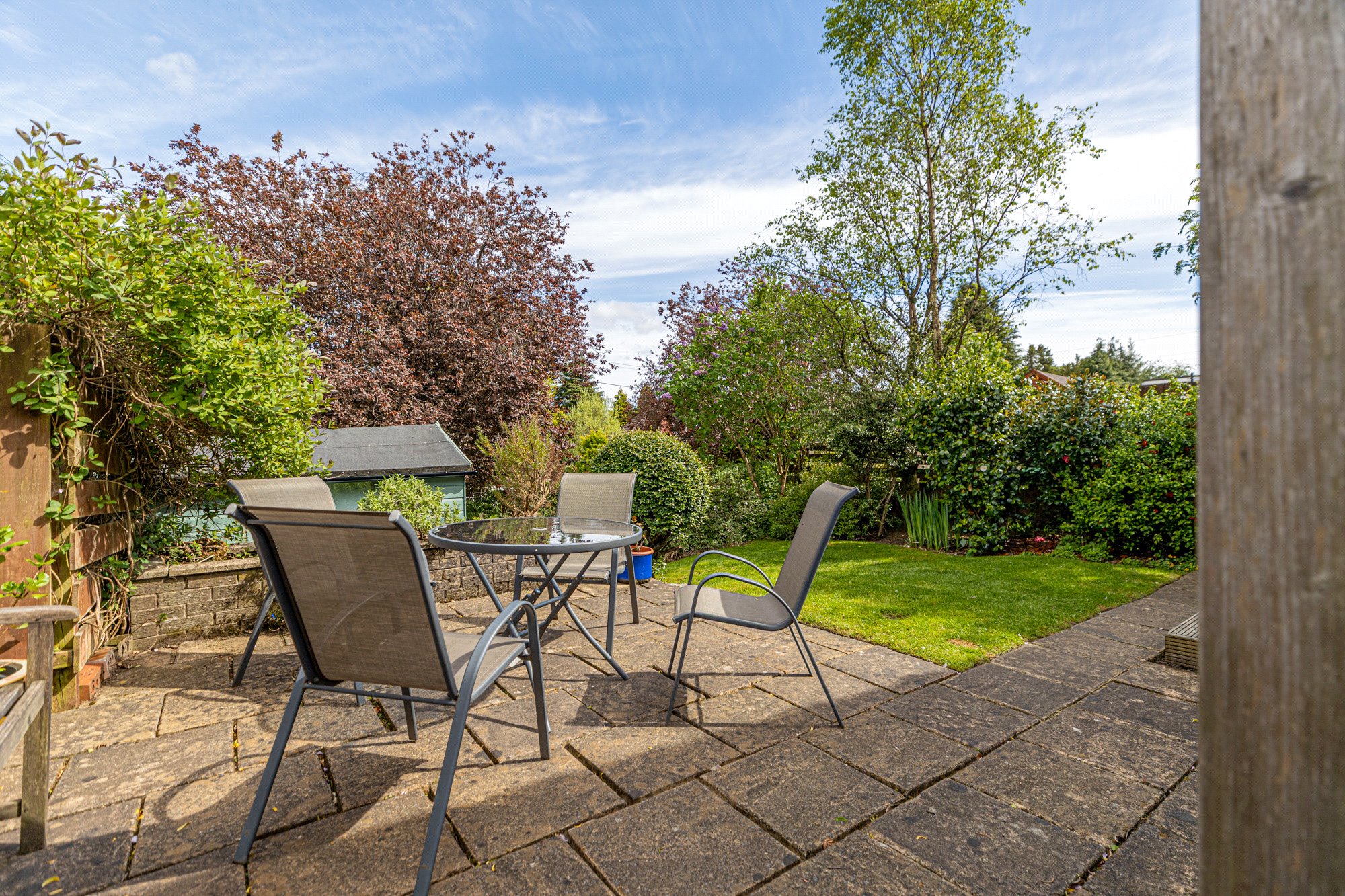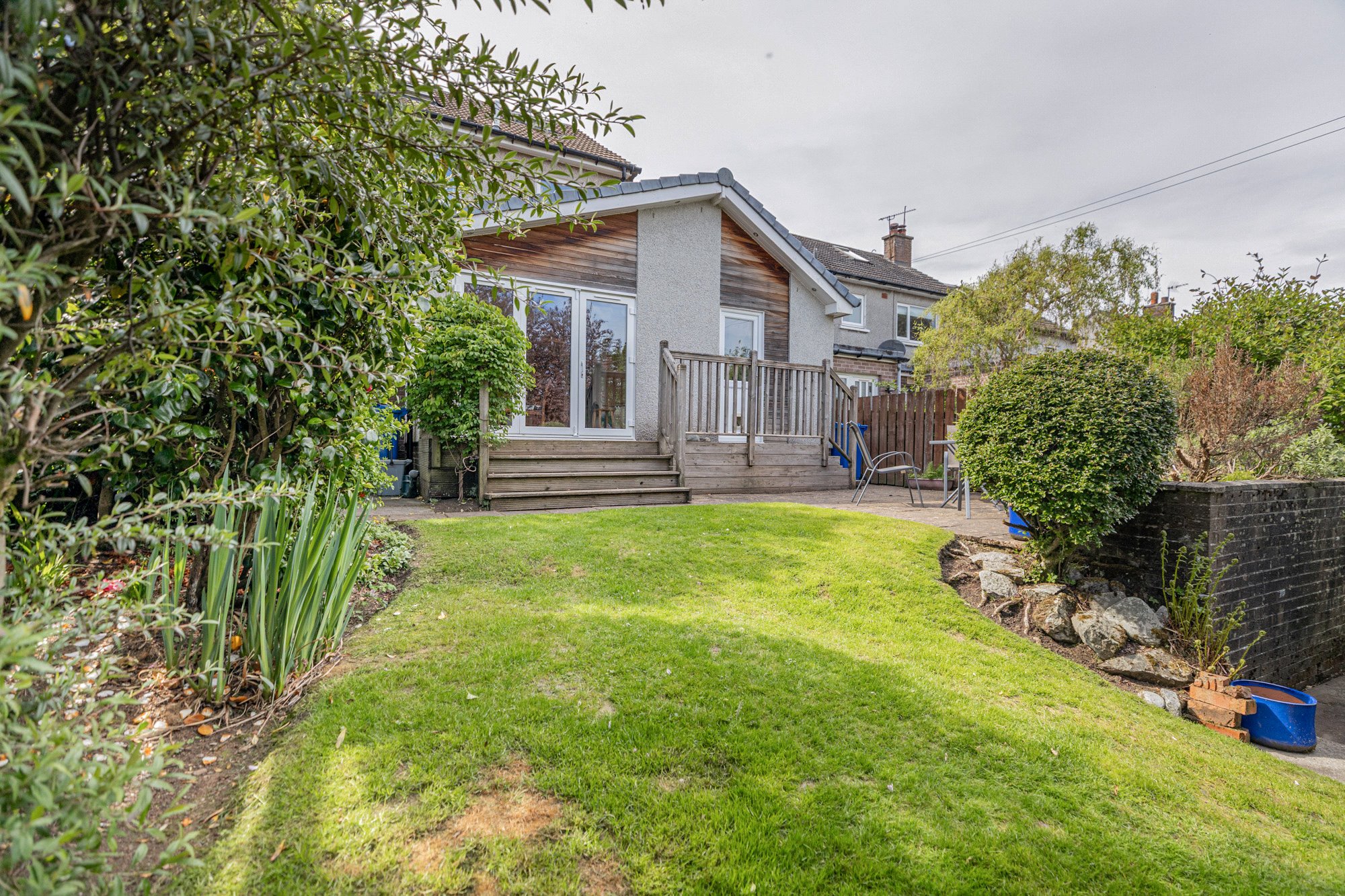 Externally, the property features well laid out garden space to front and rear, with the rear garden featuring areas of timber decking, patio and lawn – a lovely combination with space for all the family.