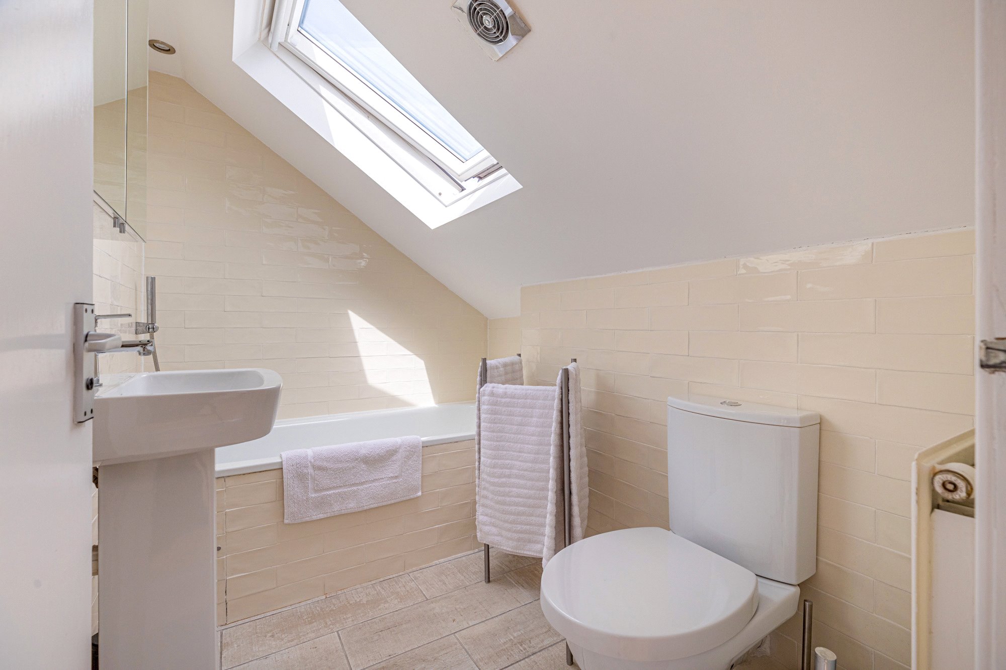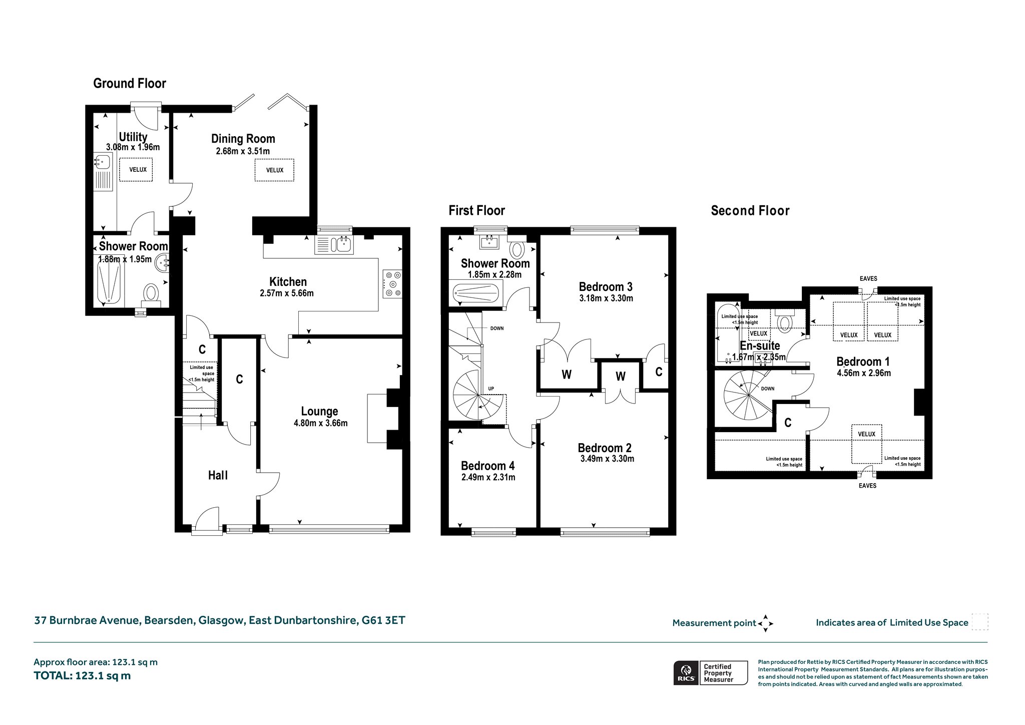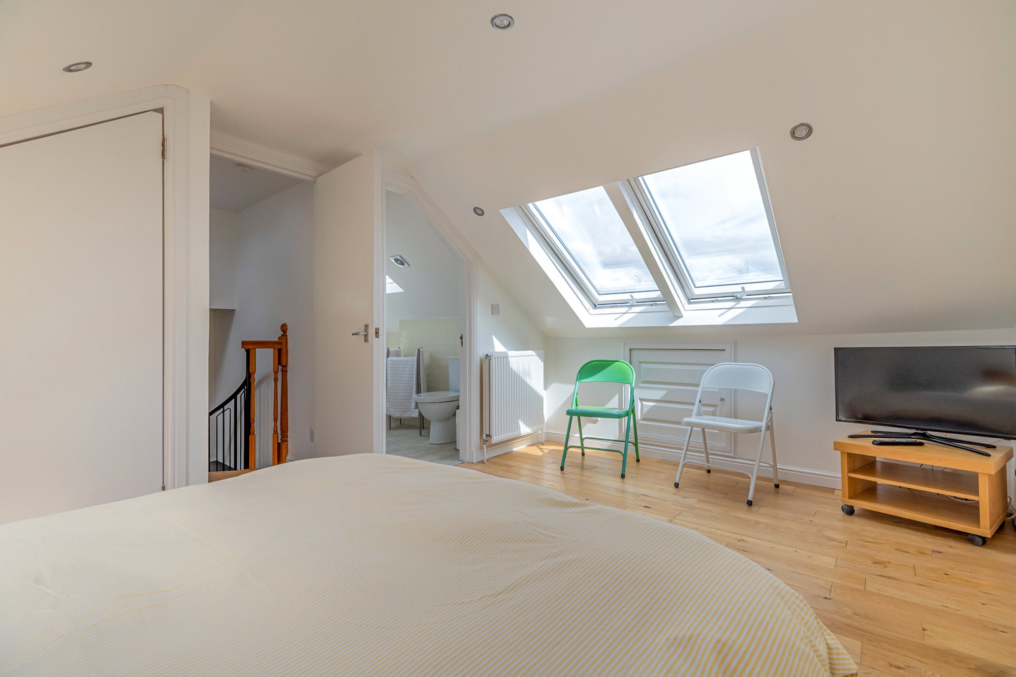 - Three double bedrooms, additional single room – Full bedroom suite to second floor with ensuite bathroom, amazing views across district/towards Campsie Fells from Velux windows