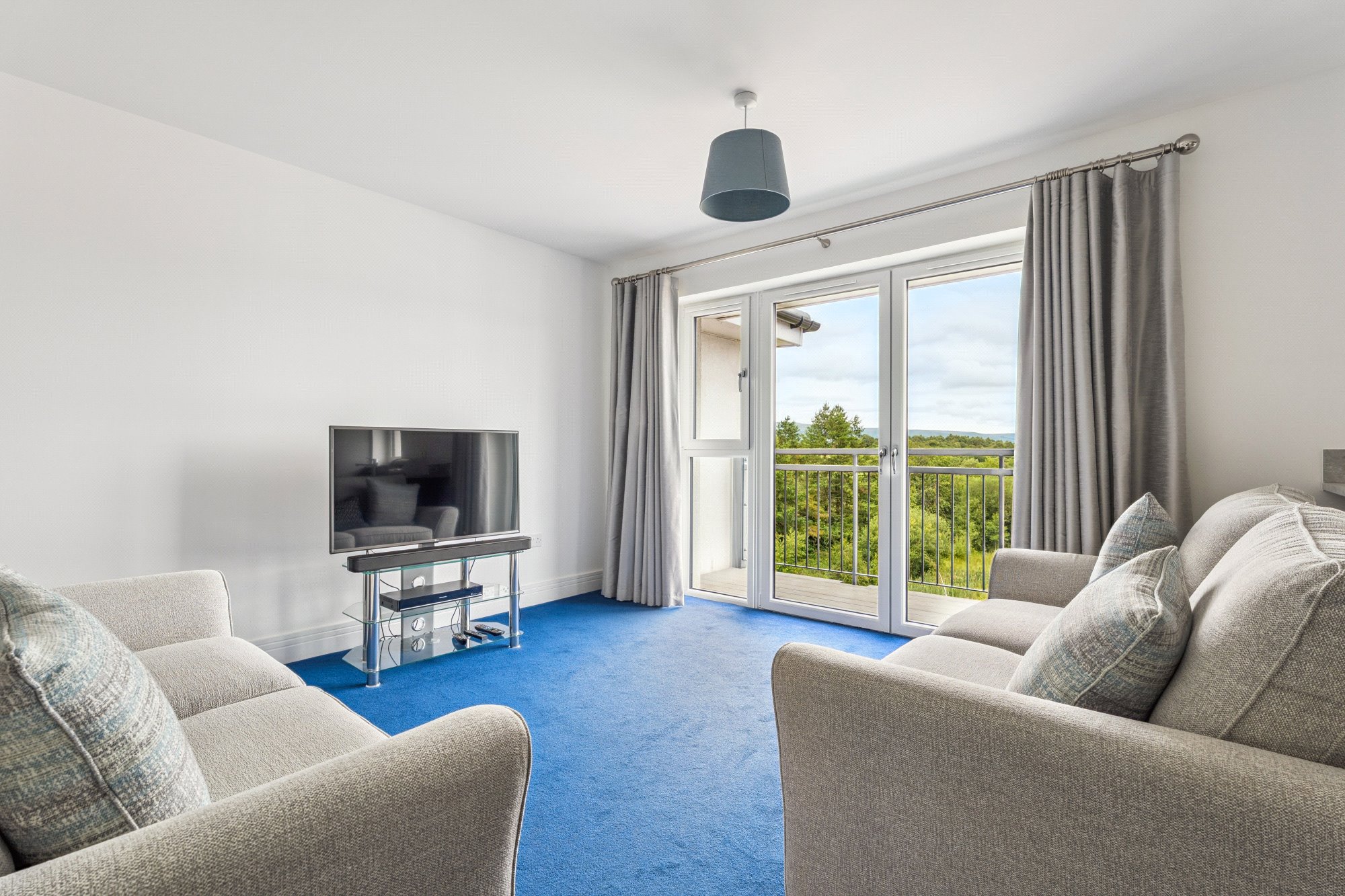 The lounge/dining room is an open-plan space to the kitchen which makes for a bright and spacious living area with windows and French doors facing eastwards and taking in the view. The kitchen is very modern in design with integrated appliances including - halogen hob, oven, cooker hood, dishwasher,70/30-split fridge-freezer. The balcony is a space one can sit out upon and has non-slip deck boards.