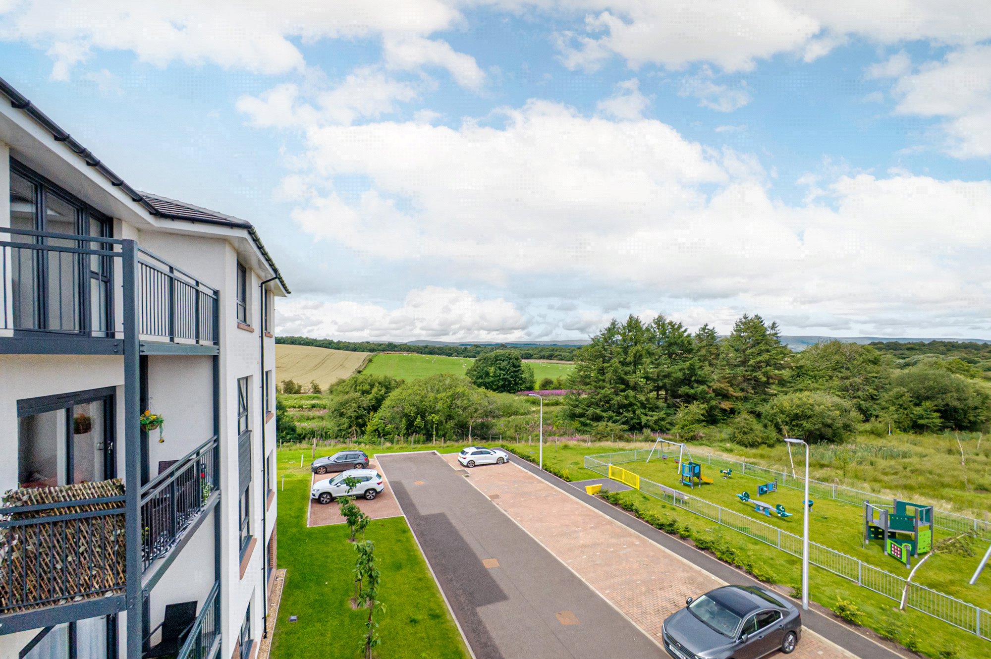 Built by Cala Homes, completed only in 2022, and forming part of their Jocelin Gardens Development on the southern bank of The Forth and Clyde canal, a top floor (3rd) Luxury flat, with lift, and with balcony, providing wonderful eastwards views beyond the canal side bank to the Campsie Fells hill range in the near horizon.