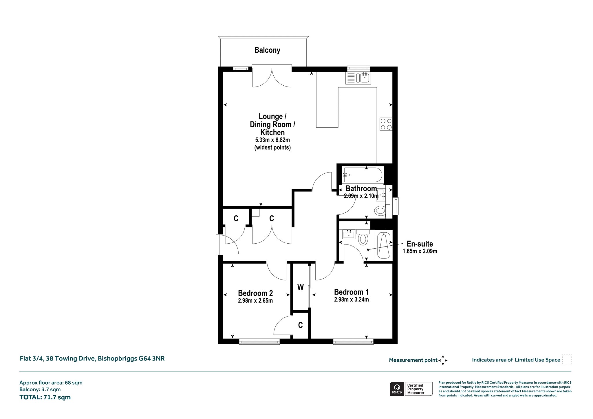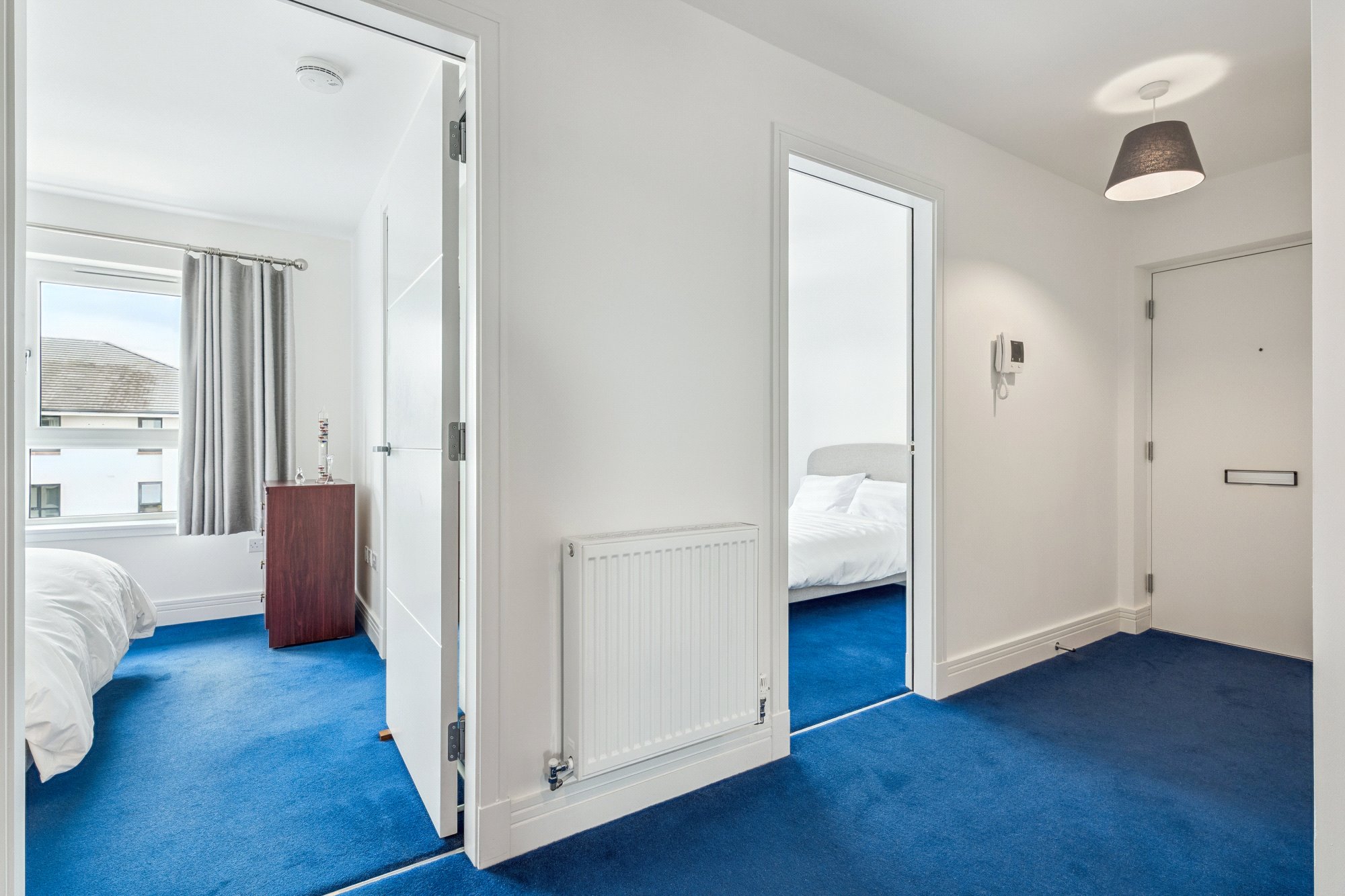 The development has a brilliant setting on the immediate southern bank of the Forth and Clyde canal. Despite this feeling of detachment, the flat is minutes’ walk from Bishopbriggs Leisuredrome sports centre and only one mile to the centre of the town, and the railway station. Here as you will find independent shops and restaurants and a large Morrisons. On nearby Kirkintilloch Road is a large Asda and beyond that, at the Strathkelvin Retail Park a Marks and Spencers. The suburbs of Bearsden and Milngavie are both only some 5 miles away with Glasgow City Centre approximately 8 miles distant.