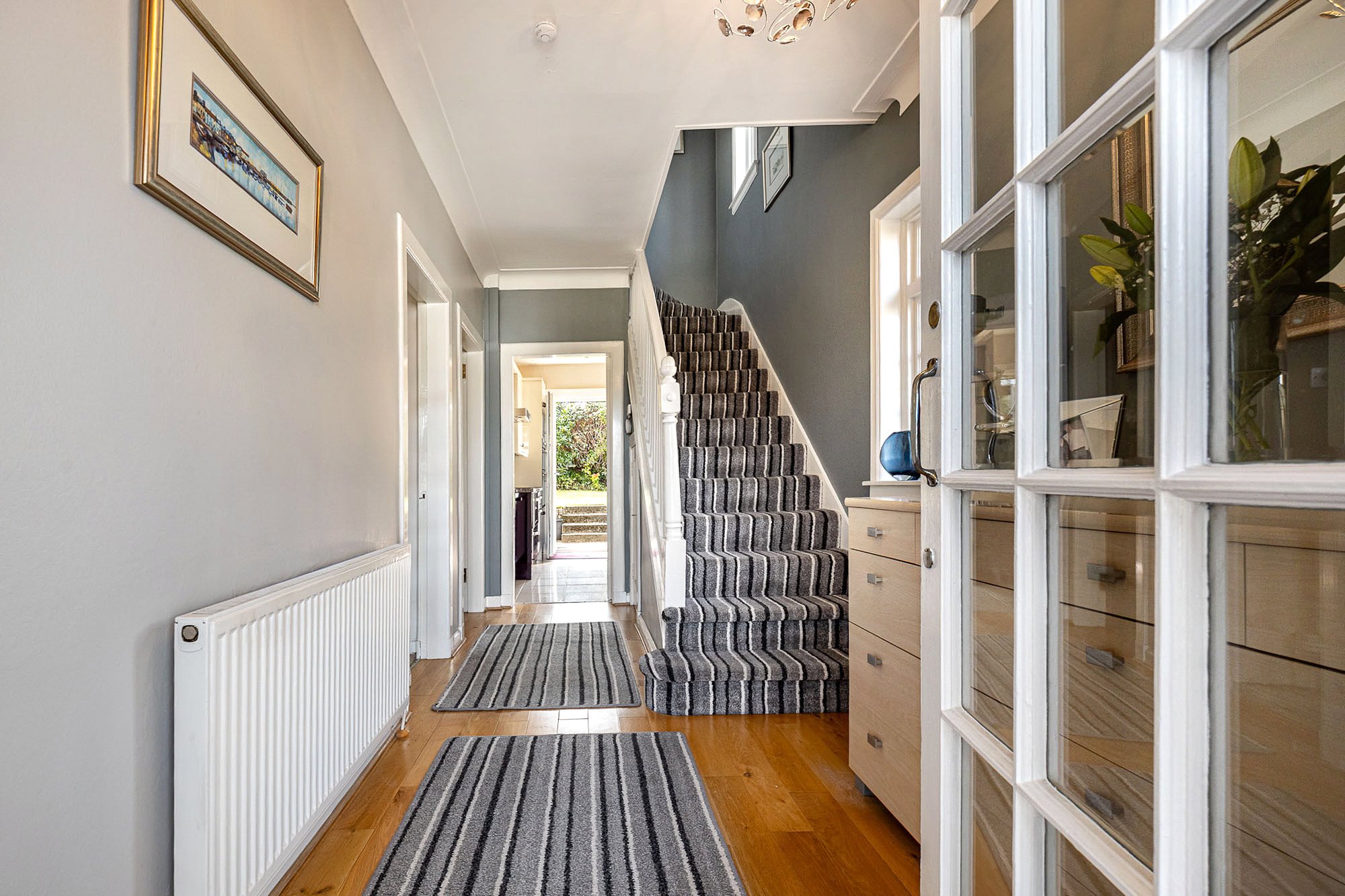 - Reception hallway (laid to oak flooring) with staircase and under stair storage