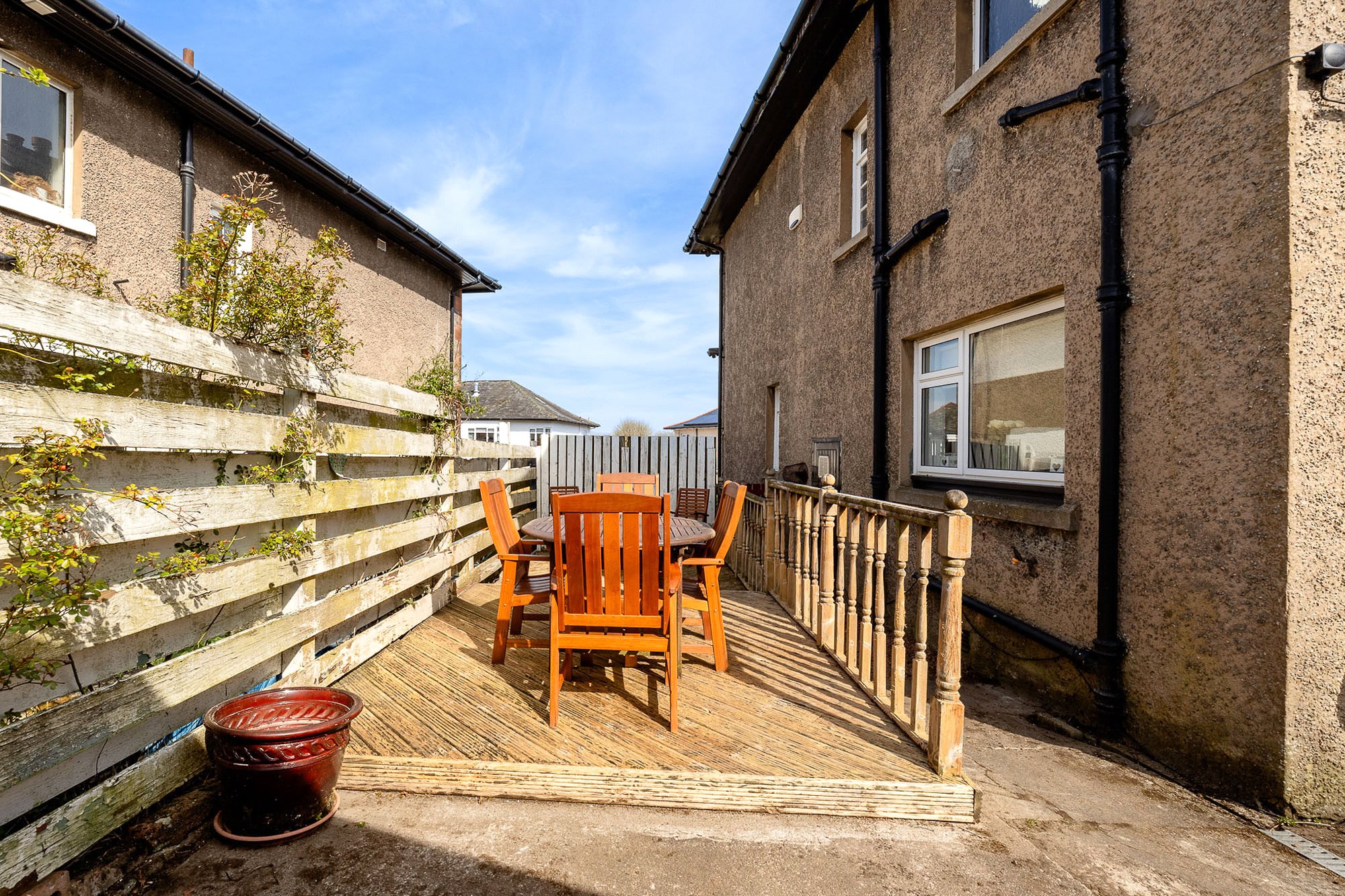 There is fantastic garden space to both front and rear, with the fully enclosed rear garden notable for its westerly orientation (afternoon/evening sun). The garage has been moved to create space for a lovely deck that acts as a bit of a sun trap and provides good space for outdoor furniture/entertaining. Off street parking for 2/3 cars.