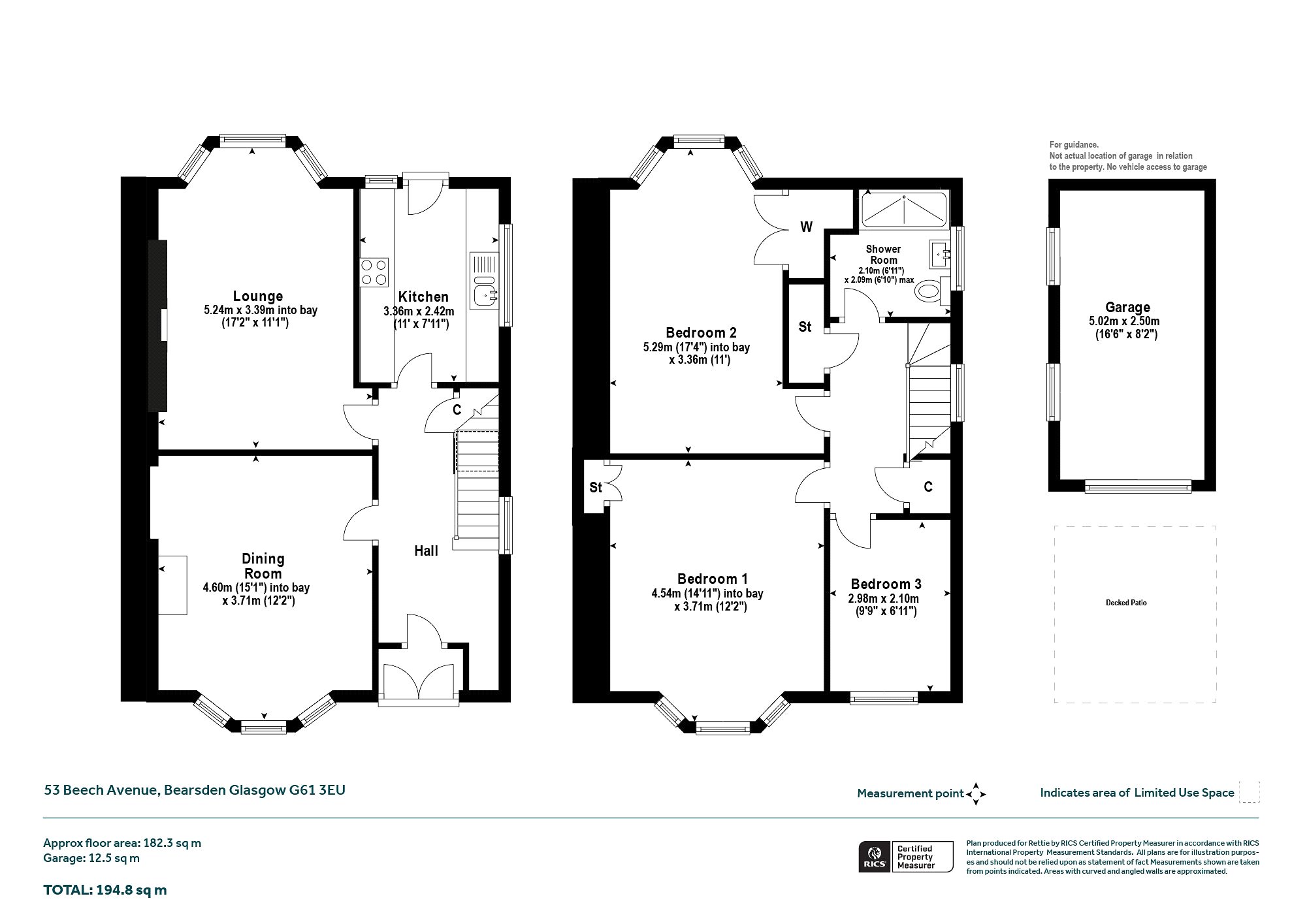 - Off street driveway parking and detached garage