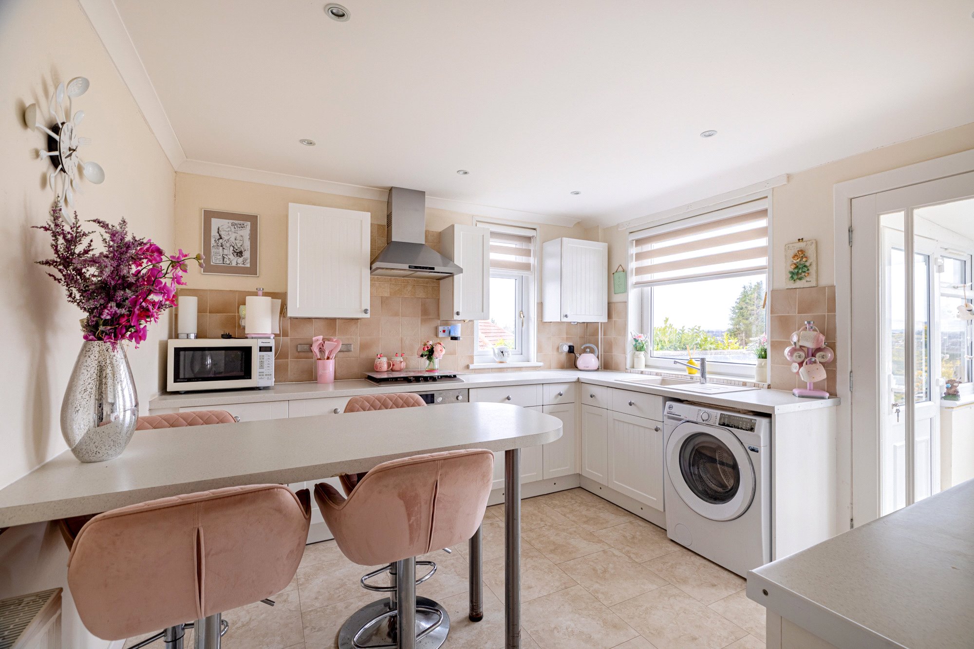 Constructed post war by John Lawrence and enjoying a highly appealing in Barloch’s tucked away Tower Place, this three bedroomed semi-detached bungalow is sharply presented/well finished throughout and will offering a very appealing living arrangement for couples (downsizing/professional) and smaller families. In 2014, our client obtained a building warrant from the local authority to implement fixed stair access and two dormer window projections to the former attic space, with the result being a fabulous principal bedroom (with w.c off) that takes full advantage of those Westerly views. As is inherently the case with this style of property, the accommodation can be used as needed (currently set up as 3 bedroom/1 public + dining kitchen). A great example of its kind, with early first-hand inspection advised.