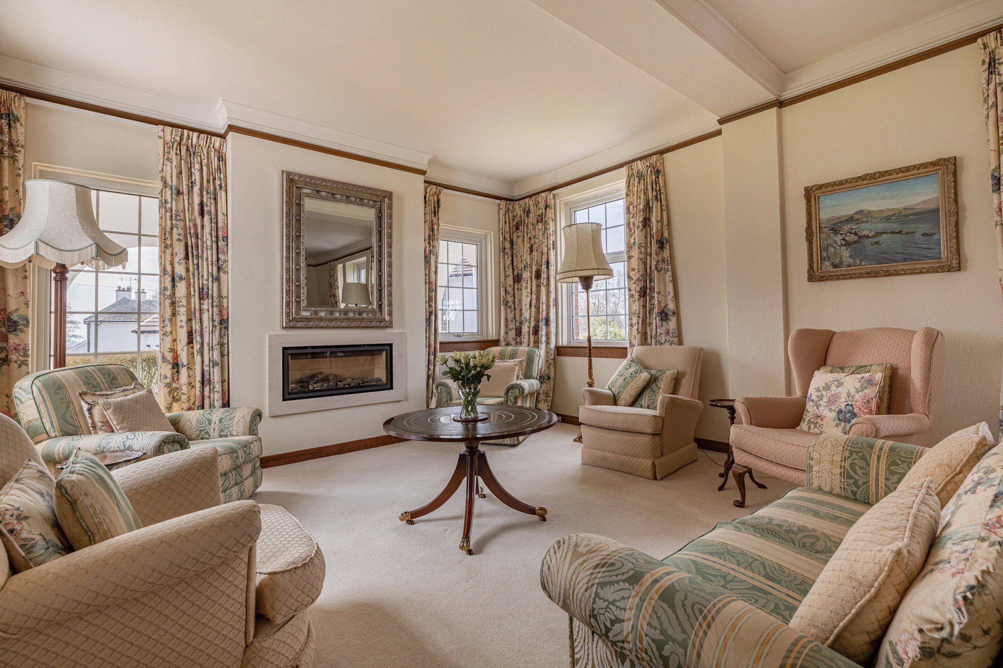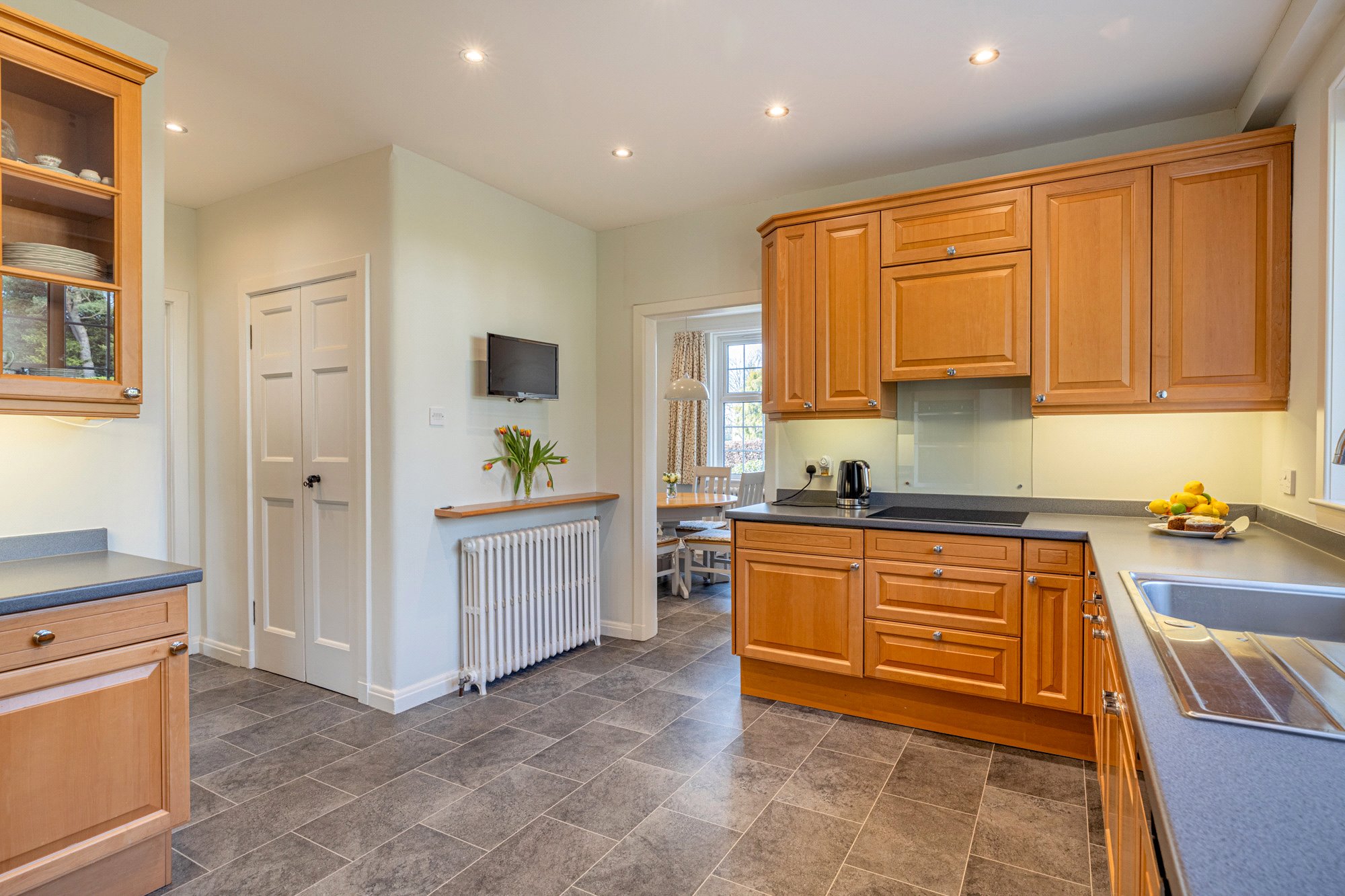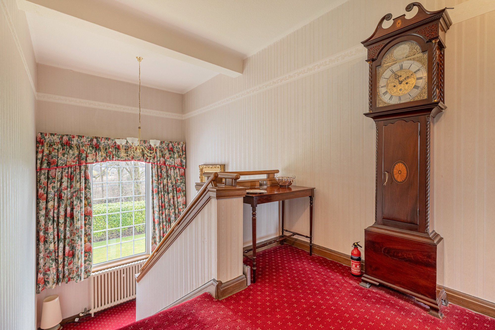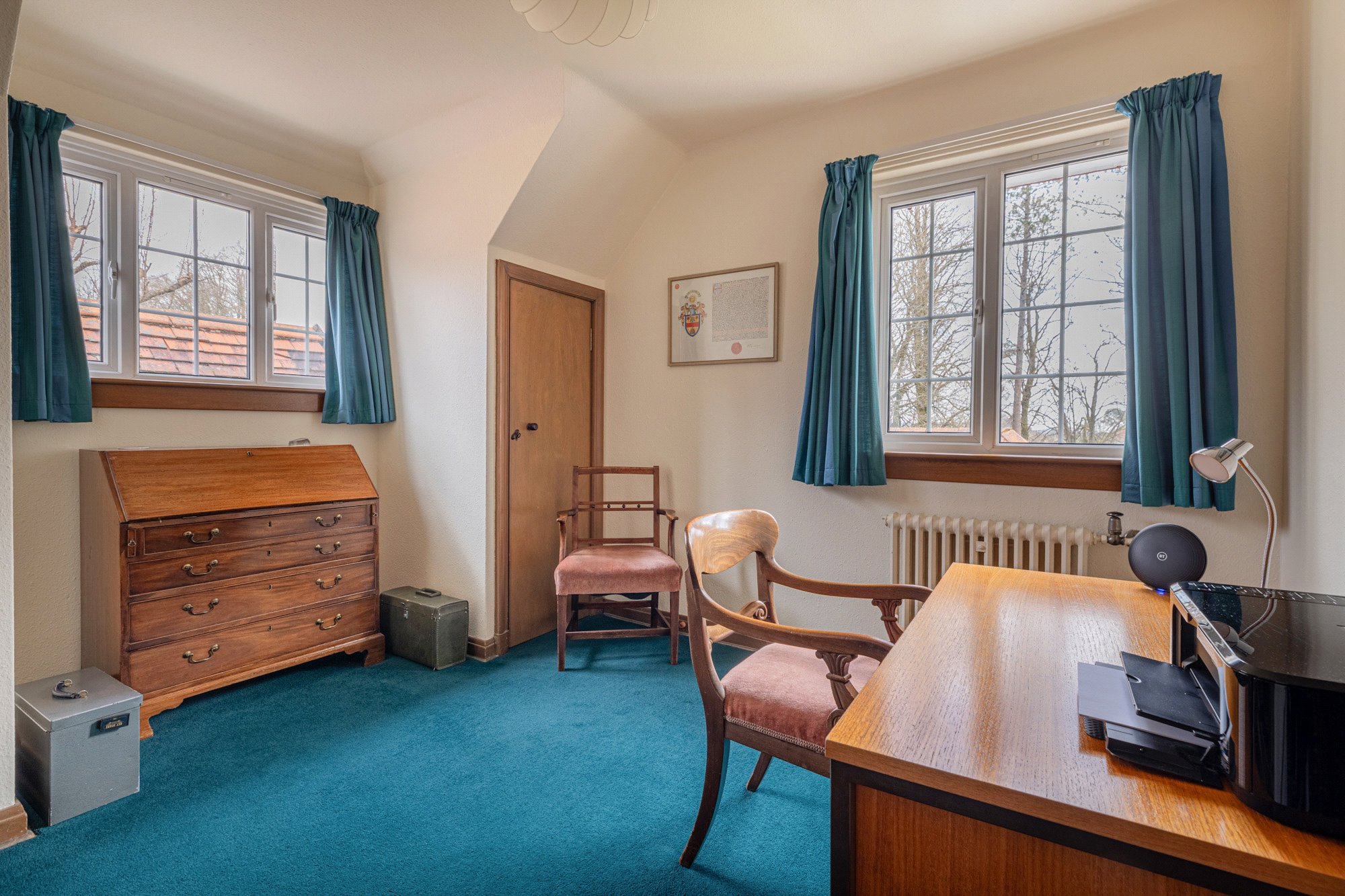 The Poggenpoll kitchen, by Cameron Interiors, and all sanitaryware were renewed in 2016, all completed to a very high standard. In the 1990s the whole house was rewired, and Everest were commissioned to install the double-glazed windows - the quality such that they still look remarkably current. Older fireplaces were replaced (by George McAlpine & Sons of Glasgow) with more contemporary living flame “driftwood” gas fires (glass fronted, cassette style) framed in limestone, by Gazco (remote controlled). The mains gas central heating system has a Worcester Greenstar 40 CDi Classic regular boiler (2014) that is under a maintenance contract with British Gas. The security system is linked to a monitored control centre. Required heat and smoke detectors are in place.