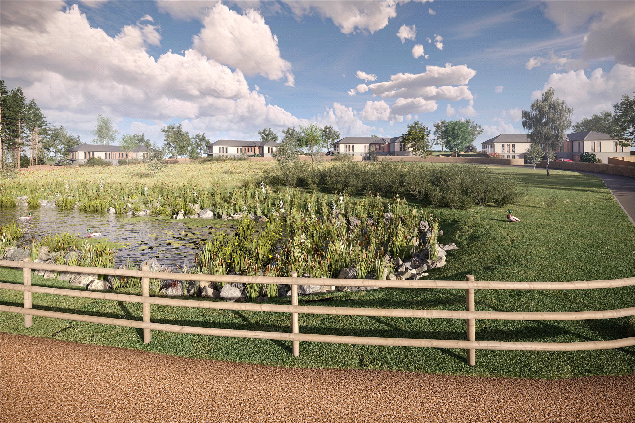 Each property is set upon an acre plot and, all benefit for delightful rural vistas, some dramatically eastwards to the slopes of The Campsie Fells, summit of Dumgoyne and Ben Lomond. The properties are set around a central garden, with pond, with a sweeping approach looping around. It makes for a rather wonderful location.