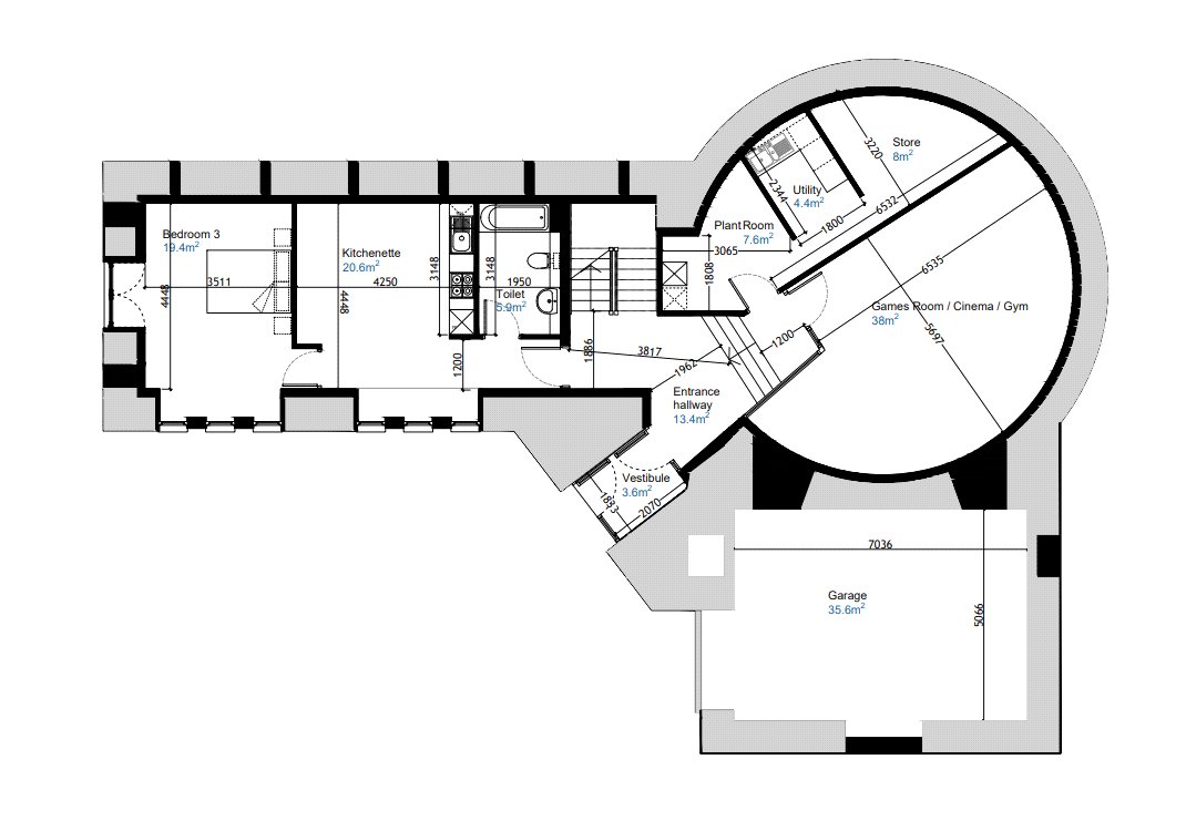 Whilst big and presenting an impressive two-storey front façade each house is designed quite unobtrusively into the landscape, the rear elevations to the main views being single storey. Interior lay-outs are very imaginative with a large circular central core that provides a wonderful open-plan lounge/dining room./kitchen, with nearly a full glazed wall, on the main level)and two sizeable activity rooms (gym, games room) on the lower, entrance, level.