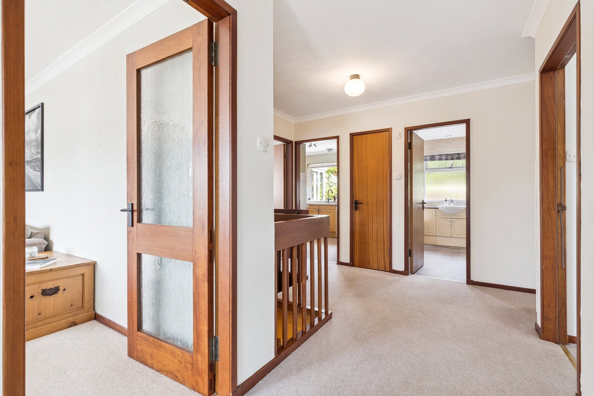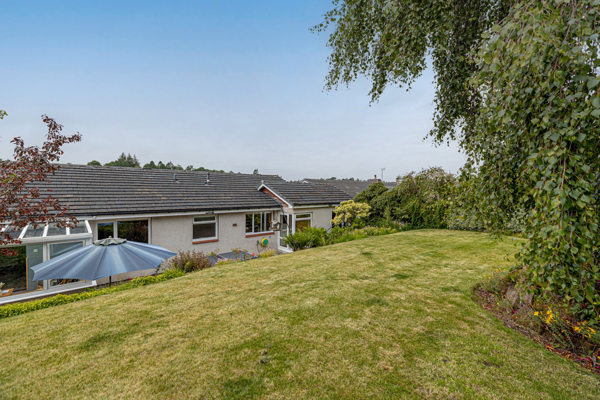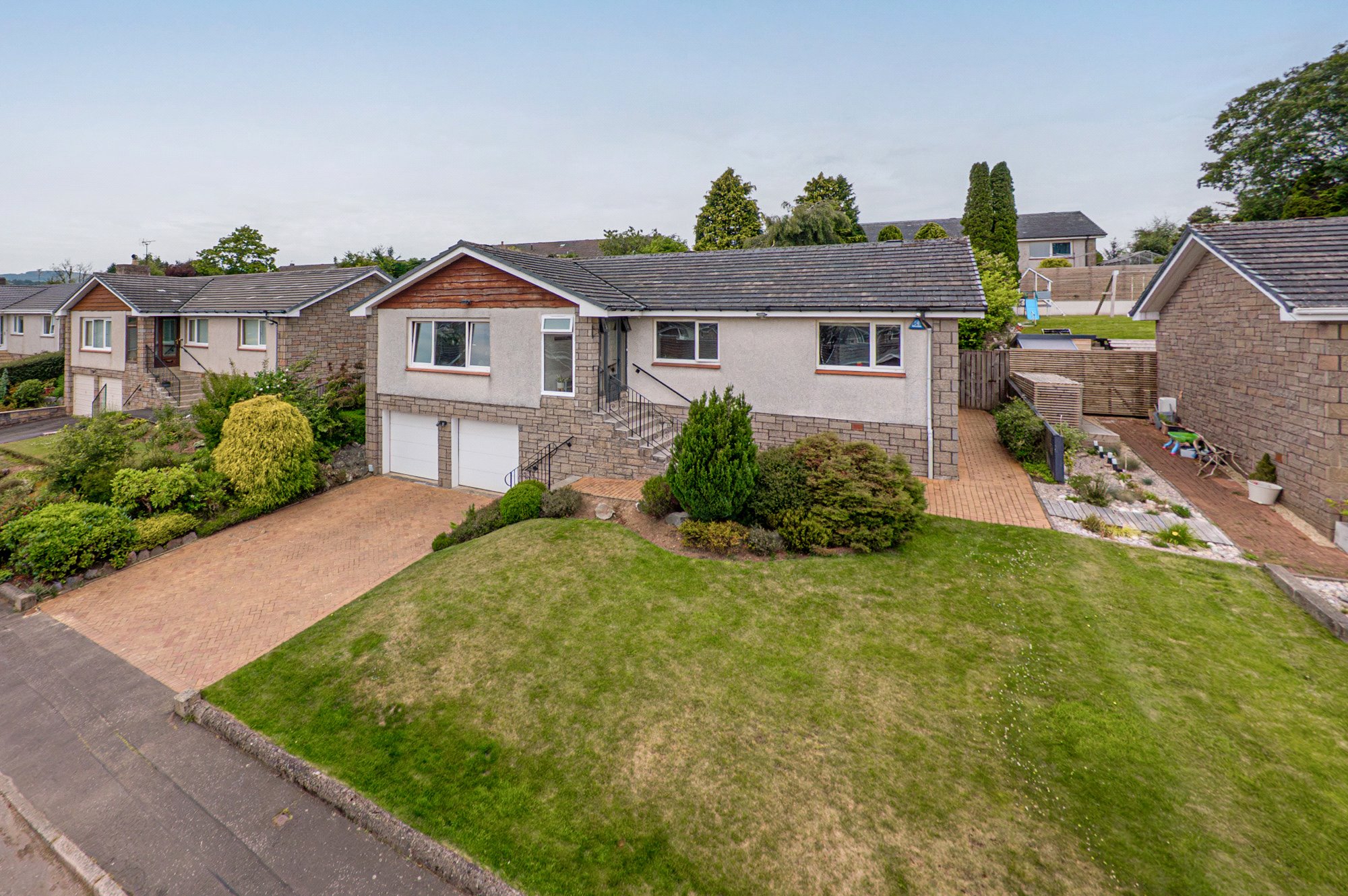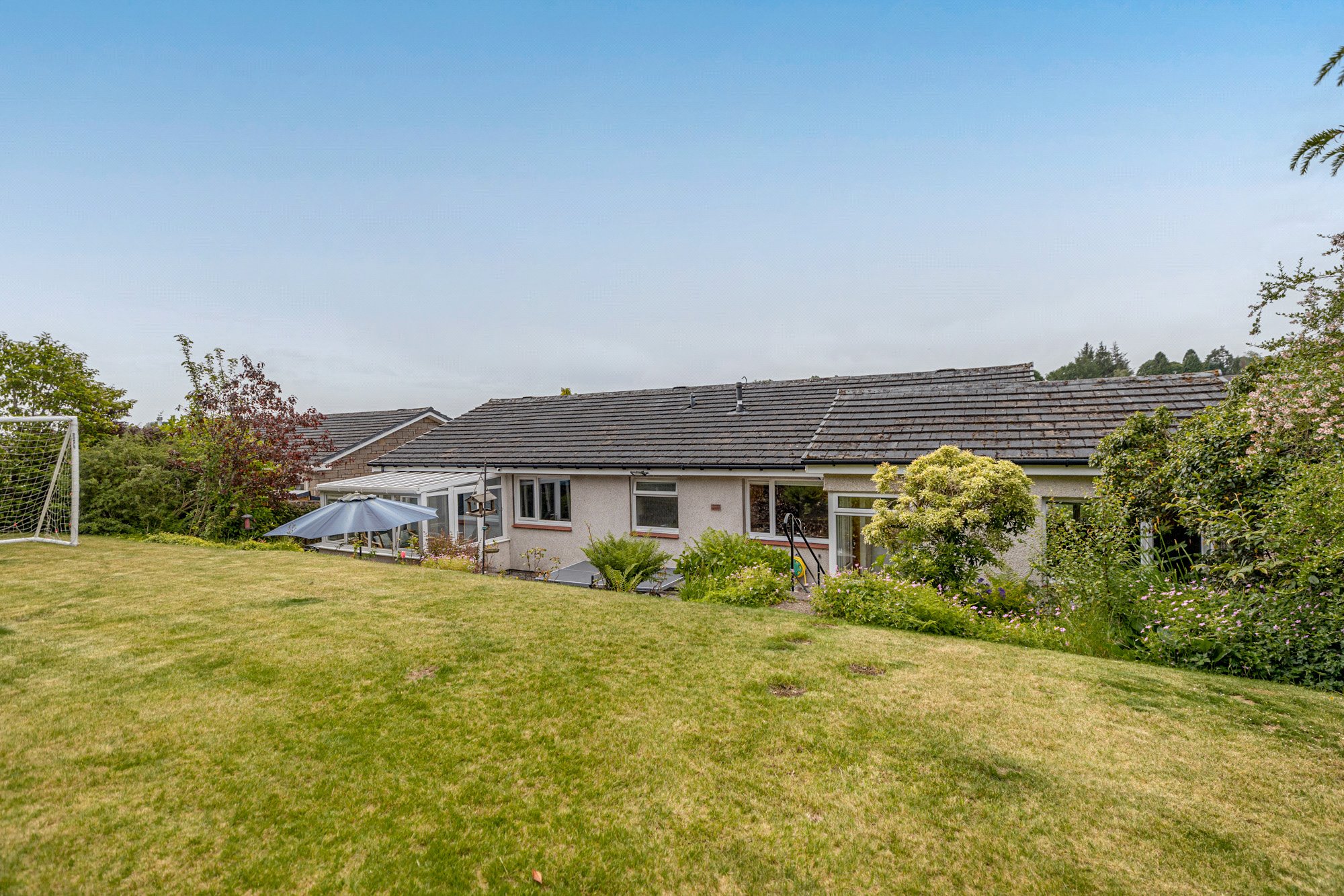 Constructed in the 1970’s in a Canadian ‘Ranch’ style by W.S Gordon and occupying a lovely spot amidst a quiet, family friendly address in Bearsden’s consistently popular Mosshead district, No.9 Mar Drive is a well-appointed home that offers a flexibly eight apartment layout (4/5 beds). The property occupies a commanding elevated position, with lovely aspects to the front and an exceptionally private, well stocked/arranged garden to the rear that affords a very appealing outlook across the estate, towards a treelined hilltop and the woodland that surrounds the local beauty spot of Kilmardinny Loch. A lovely home in one of Bearsden’s most coveted districts.